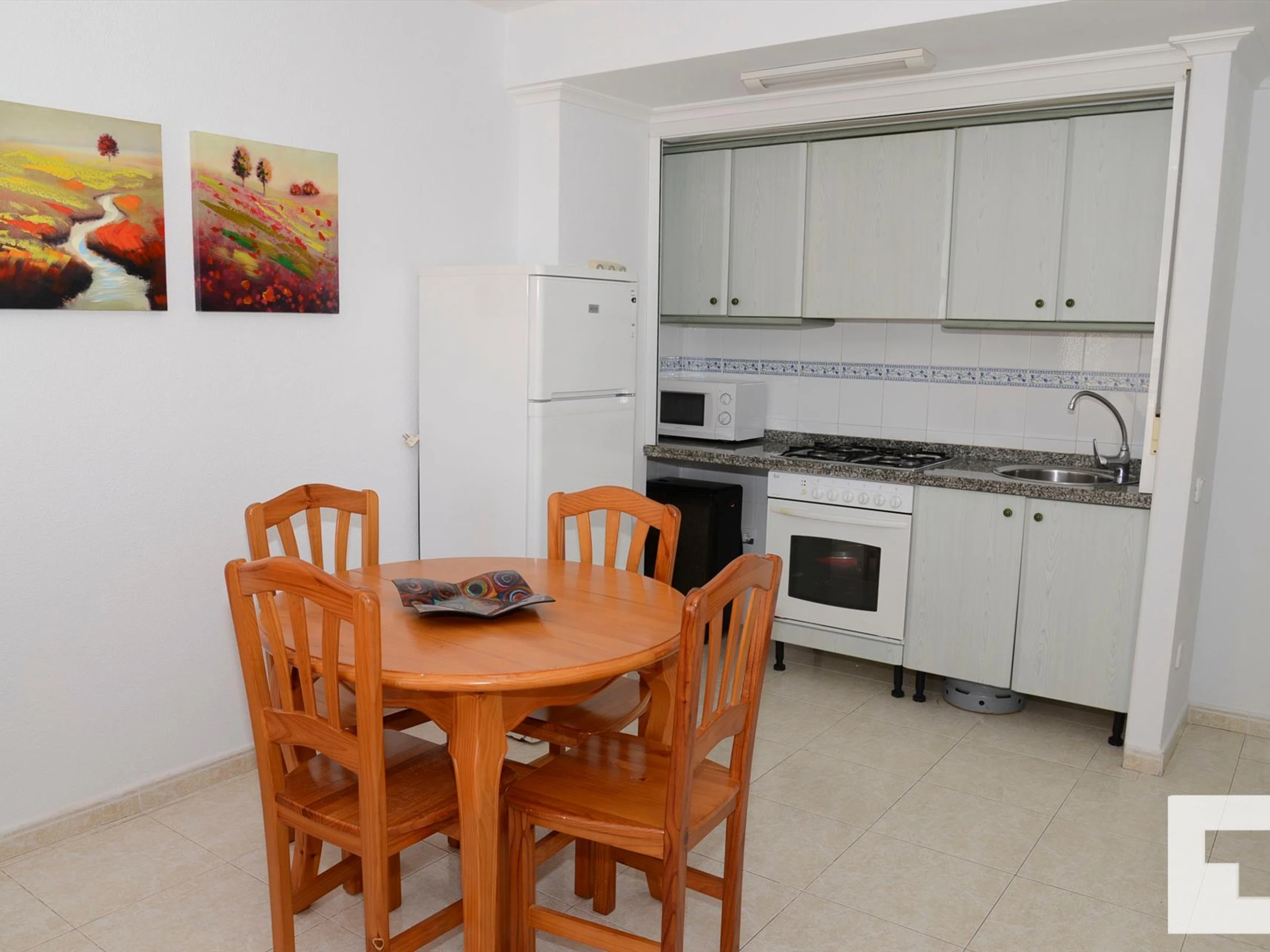 🍳 Cocina abierta al salón, equipada con placa vitrocerámica, horno,