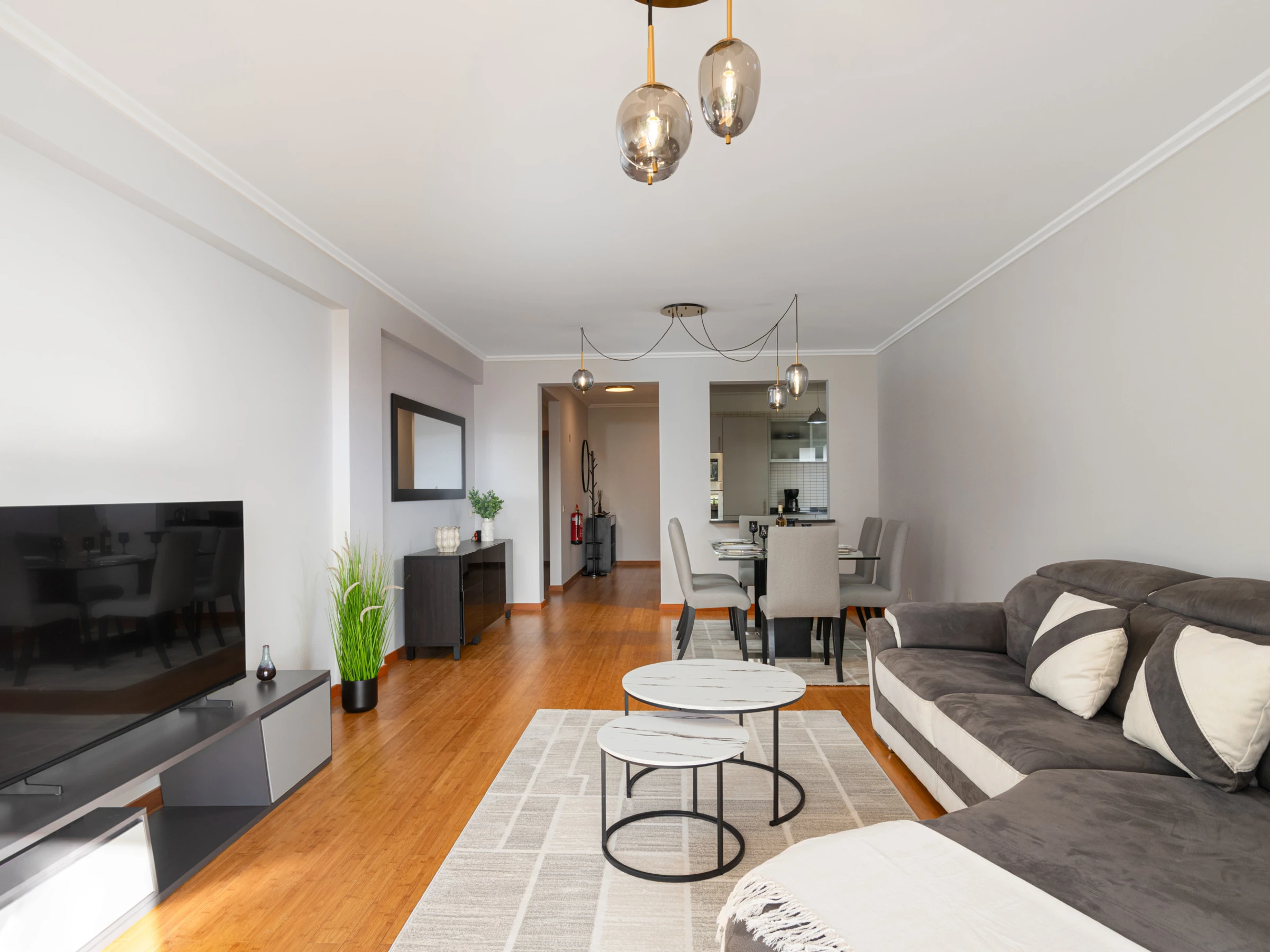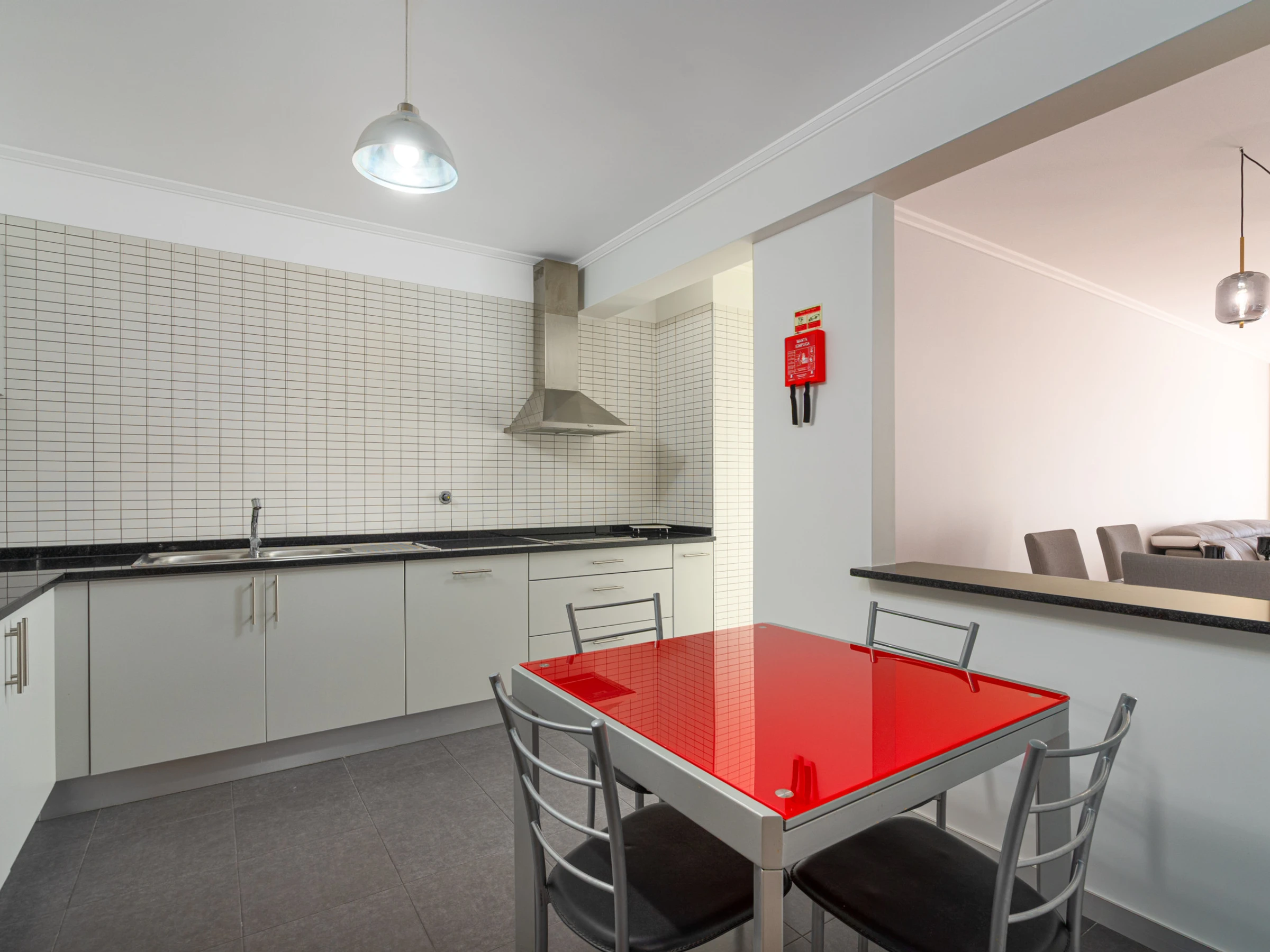 Al entrar, somos recibidos por un hall que conduce a una amplia sala de estar en concepto de open space, donde la zona de comidas se integra armoniosamente, creando el ambiente ideal para momentos de convivencia, cenas relajadas o simples instantes de descanso. La cocina, totalmente equipada, permite preparar sus comidas con toda la comodidad, sin renunciar al confort y a la practicidad.
