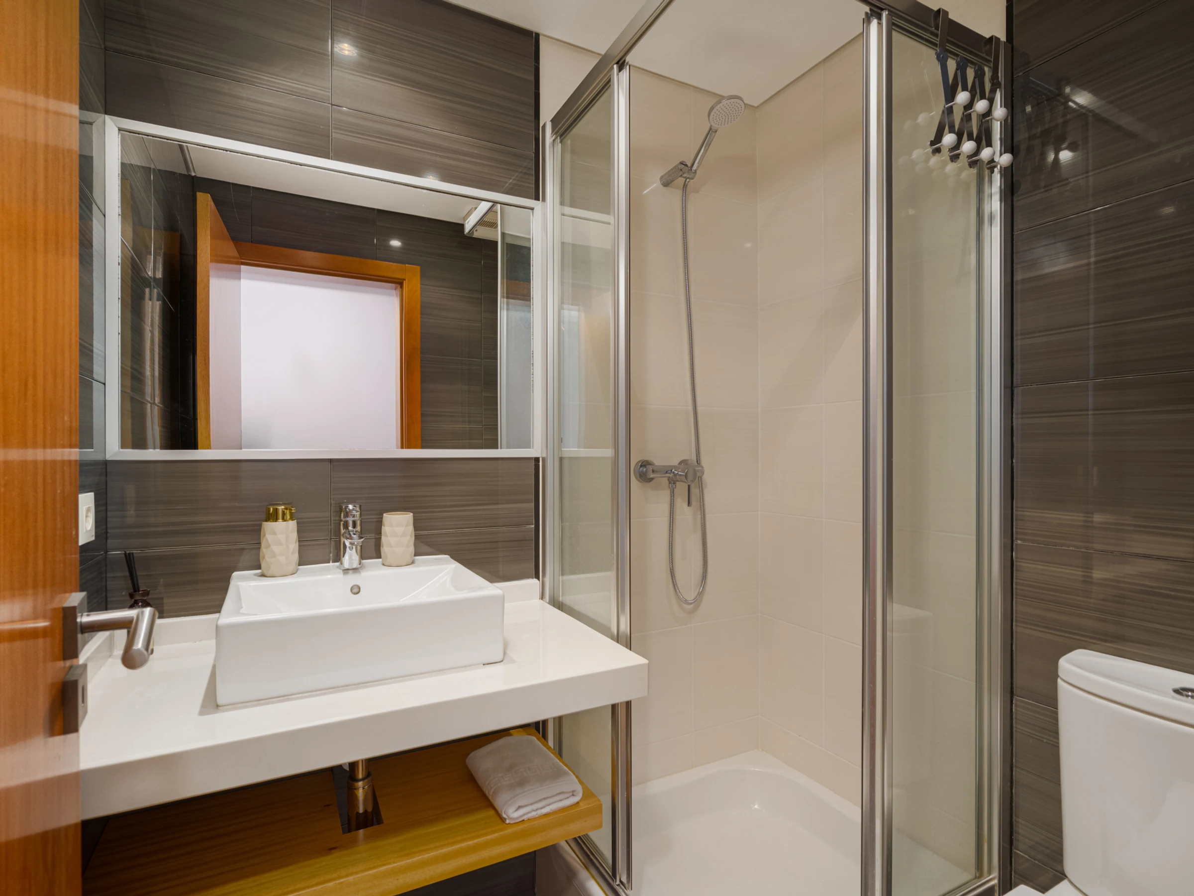 Para mayor comodidad, el apartamento cuenta además con un segundo cuarto de baño equipado con ducha, especialmente conveniente para grupos de amigos o familias.