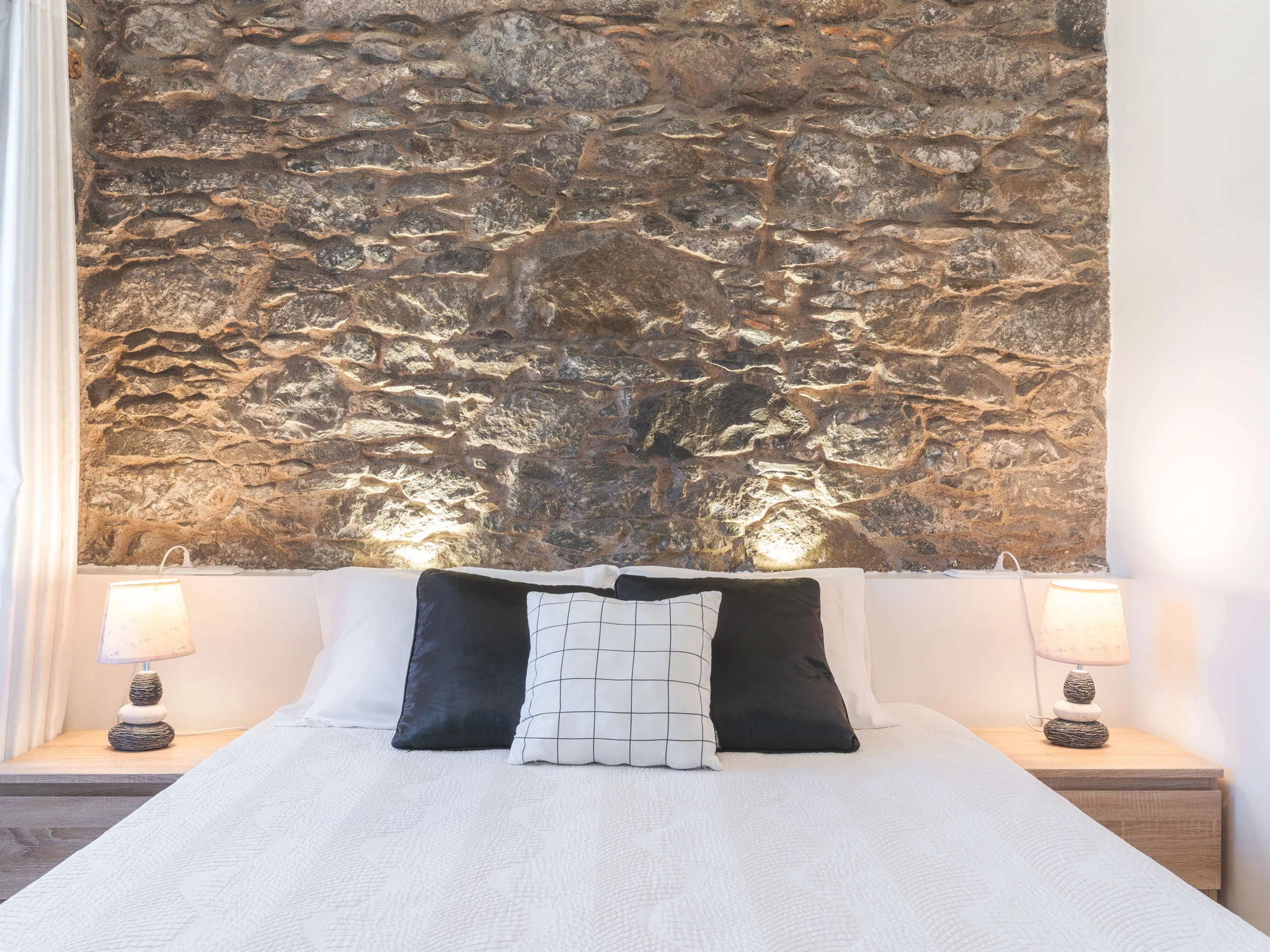 La casa cuenta con dos dormitorios, cada uno con una cama de matrimonio, garantizando un descanso nocturno reparador. El baño está equipado con una ducha, y todos los juegos de cama y toallas de baño están incluidos para su estancia. La cocina está completamente equipada con electrodomésticos esenciales, incluyendo un frigorífico, congelador, horno, microondas, placa de cocina, cubiertos, platos y todo lo necesario para preparar comidas en casa.