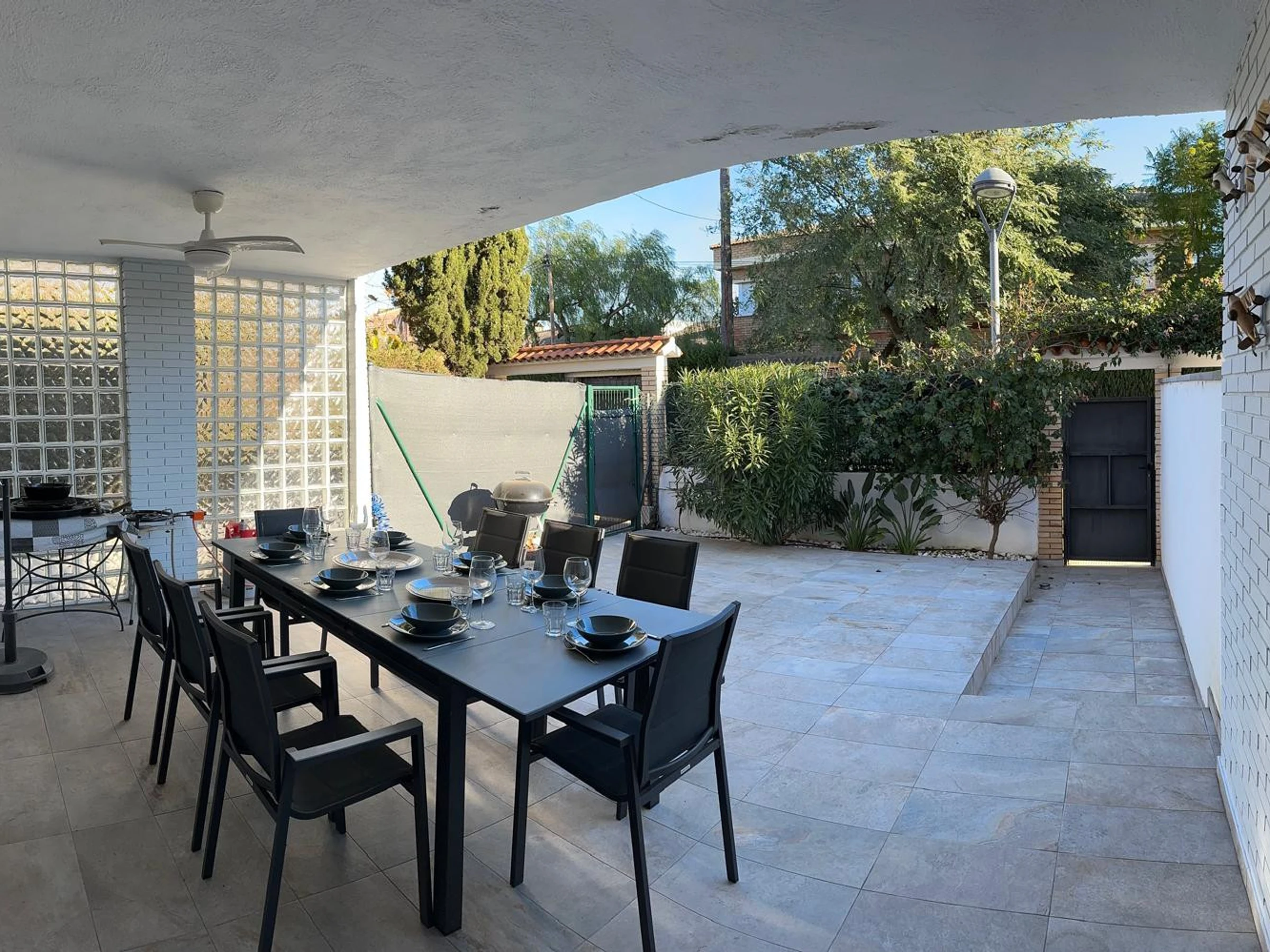 El alojamiento cuenta con un encantador jardín con zona de barbacoa, una acogedora terraza y todas las comodidades necesarias para una estancia confortable, incluyendo aire acondicionado, televisión y conexión a internet opcional (con un suplemento). La cocina independiente está totalmente equipada con electrodomésticos modernos, incluyendo nevera, microondas, horno, lavadora y lavavajillas, además de utensilios de cocina, cafetera y tostadora para una experiencia culinaria completa. ¡Reserva ahora y disfruta de unas confortables vacaciones en Cambrils!