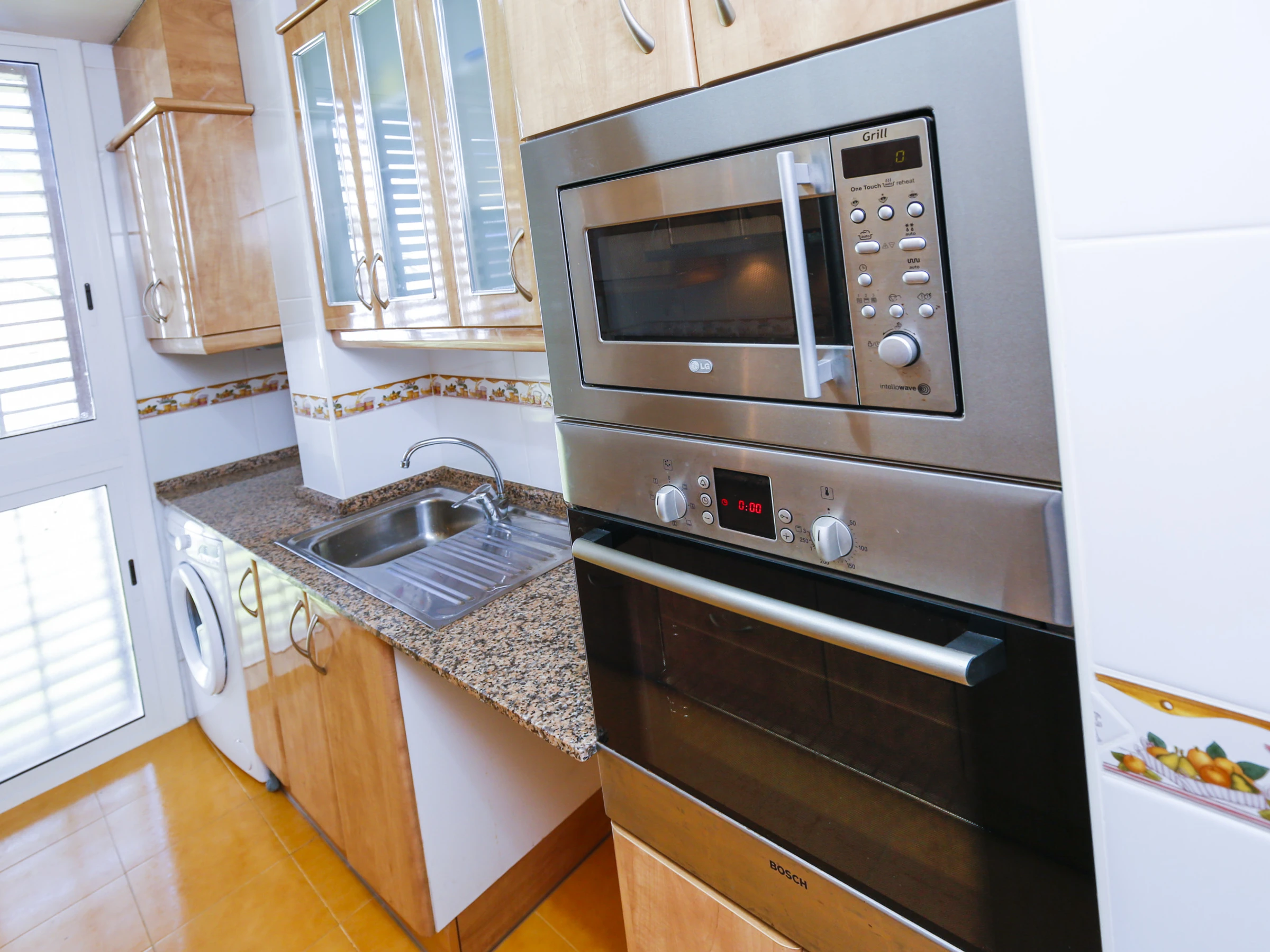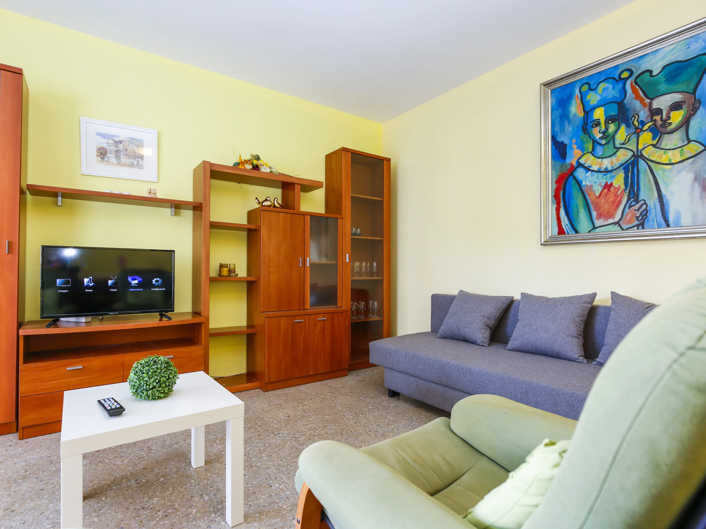 El apartamento cuenta con 3 amplias habitaciones dobles, dos de ellas con cama de matrimonio y la tercera con 2 camas individuales, lo que te permitirá alojar hasta 8 personas cómodas. El salón es luminoso y acogedor, con un sofá-cama adicional para huéspedes adicionales. Para mayor comodidad, el apartamento dispone de un baño con ducha y una cocina totalmente equipada, donde podrás preparar tus comidas favoritas.
