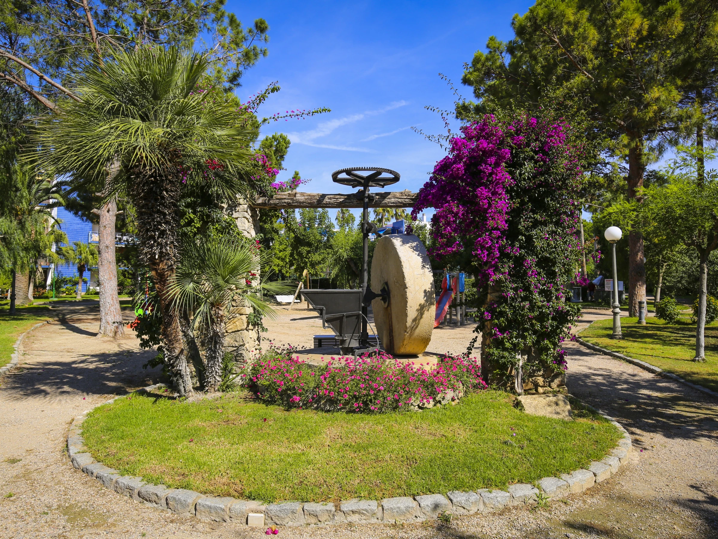 Desde la amplia terraza del apartamento podrás disfrutar de hermosas vistas al jardín, un lugar perfecto para relajarte y desconectar durante tus vacaciones.
