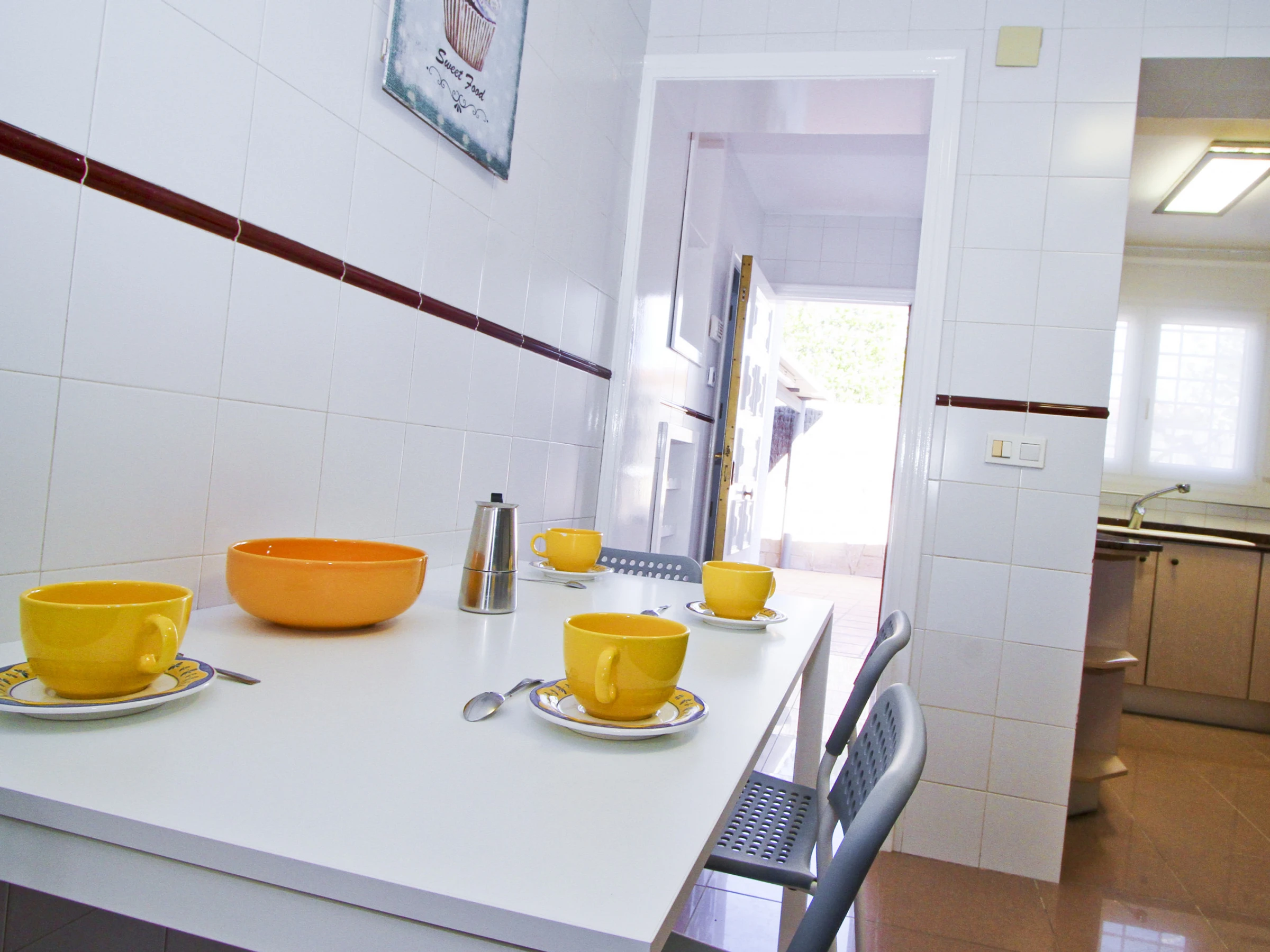 Distribuida en varias alturas, la villa consta de un gran salón comedor con vistas a la piscina. Desde aquí, unas escaleras te llevan a un dormitorio tipo suite con armarios empotrados y baño con ducha. La cocina es amplia y está completamente equipada con menaje y electrodomésticos, incluyendo lavavajillas. Desde la cocina, se accede al comedor exterior con barbacoa.