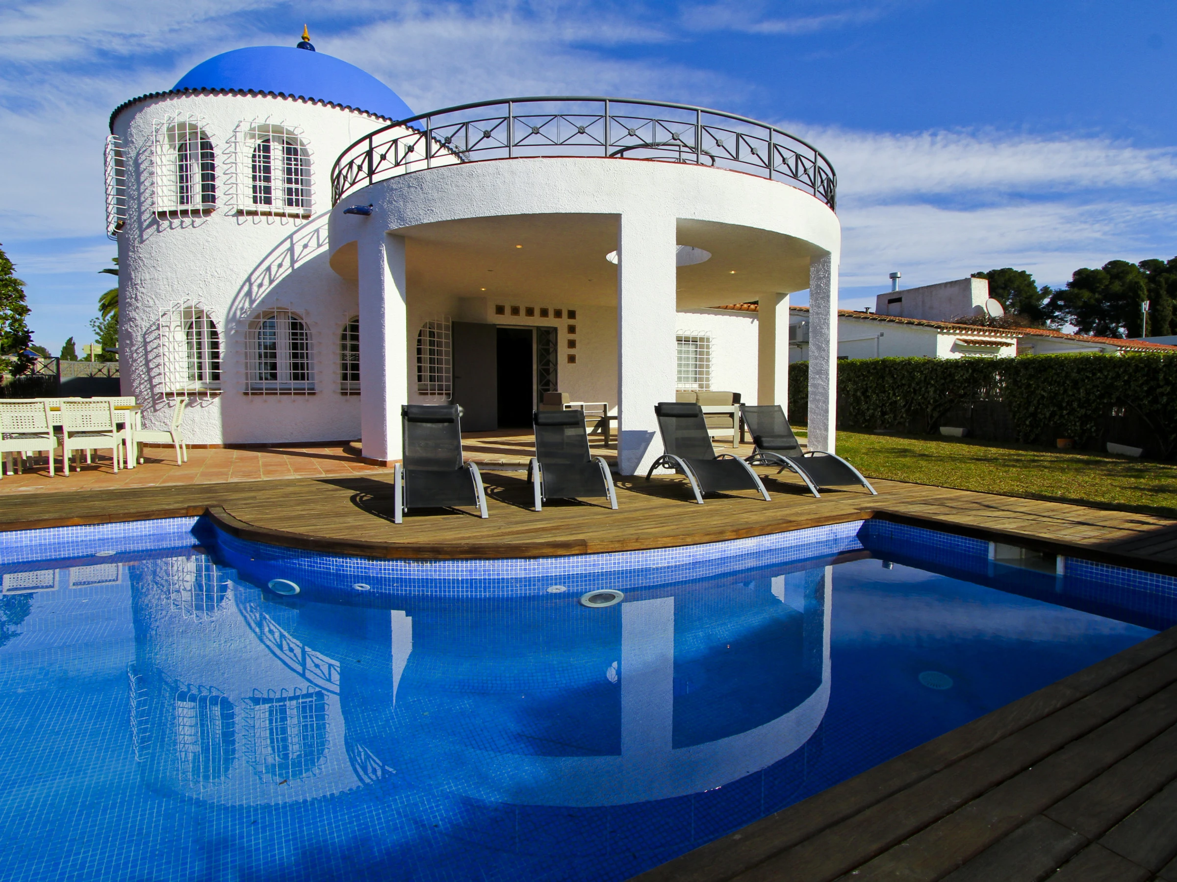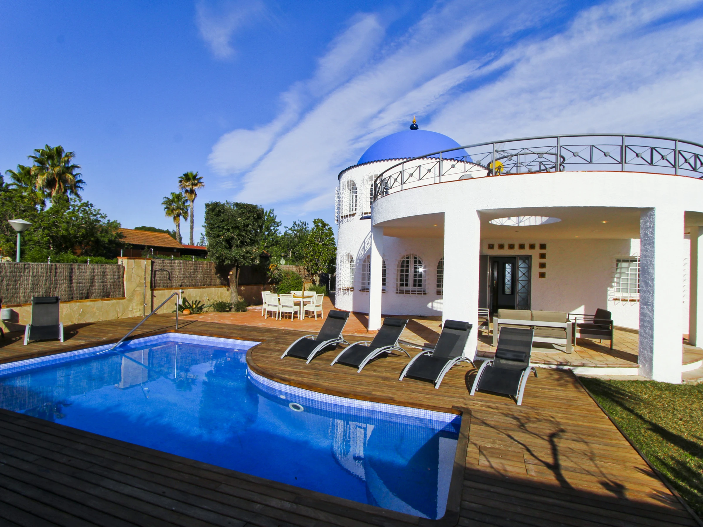 La Villa Santorini es un lugar fantástico para disfrutar de unas maravillosas vacaciones en familia. Situada en la Urbanización El Dorado de Cambrils, una zona privilegiada cerca de la playa ya tan solo 3 km del centro de Cambrils.