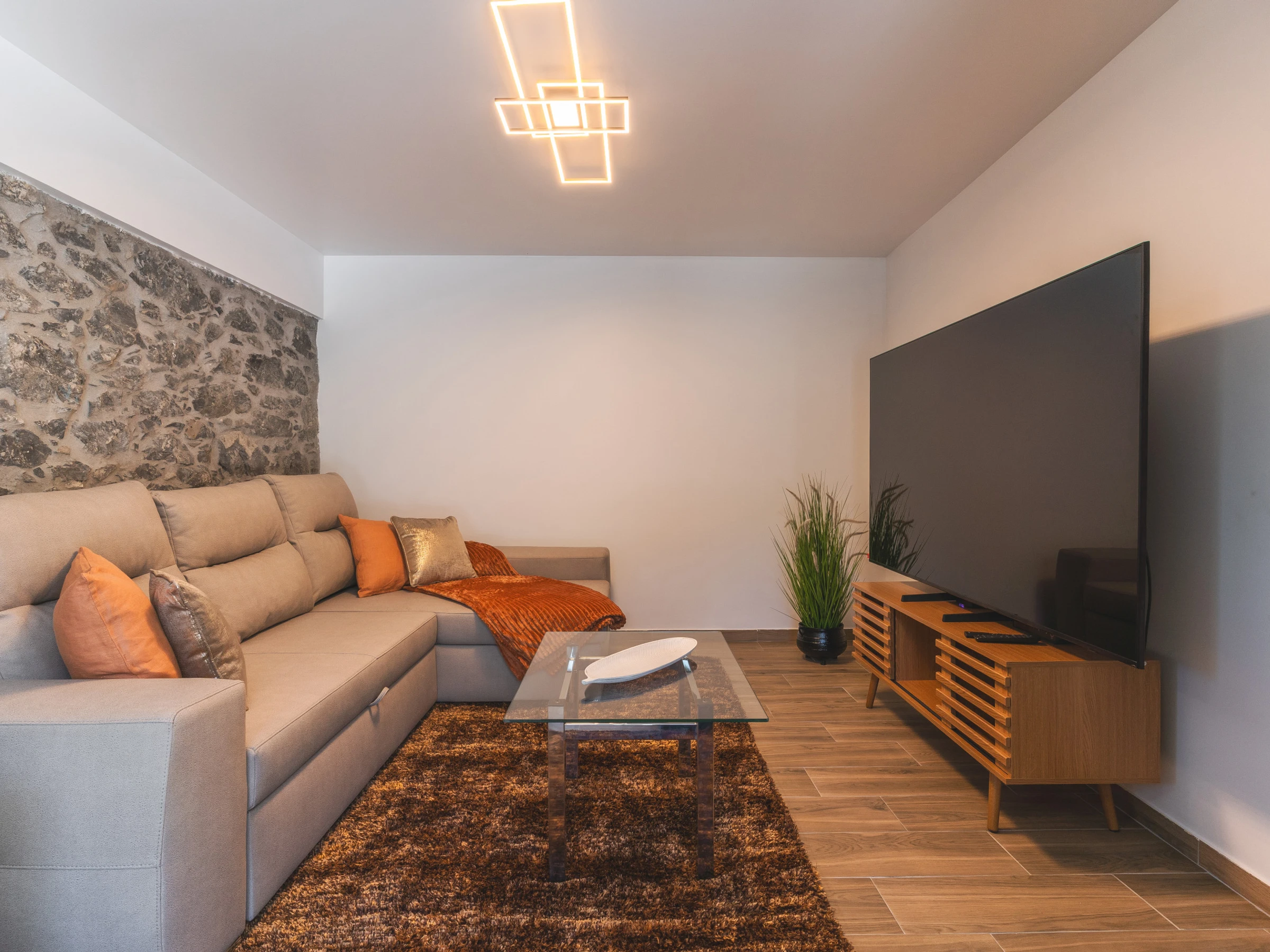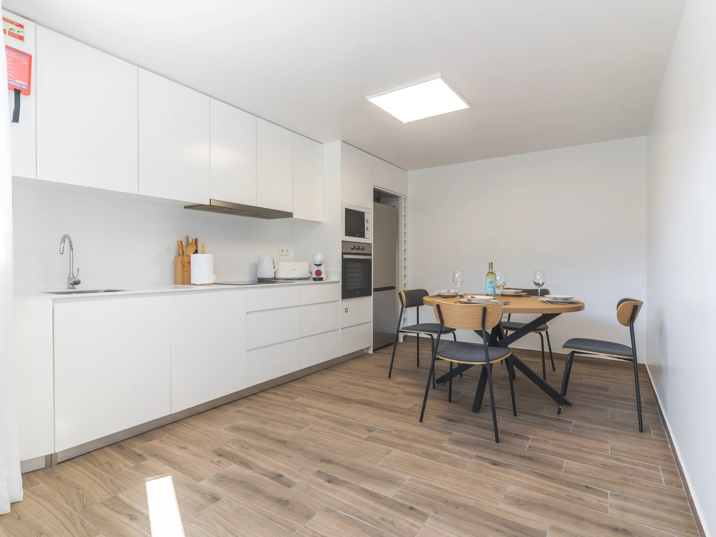La cocina está equipada con frigorífico, congelador, horno, microondas, placa, cubiertos, platos y otros utensilios esenciales, lo que permite preparar sus propias comidas. En el salón, una Smart TV con box ofrece entretenimiento, y una lavadora está disponible para estancias más largas.