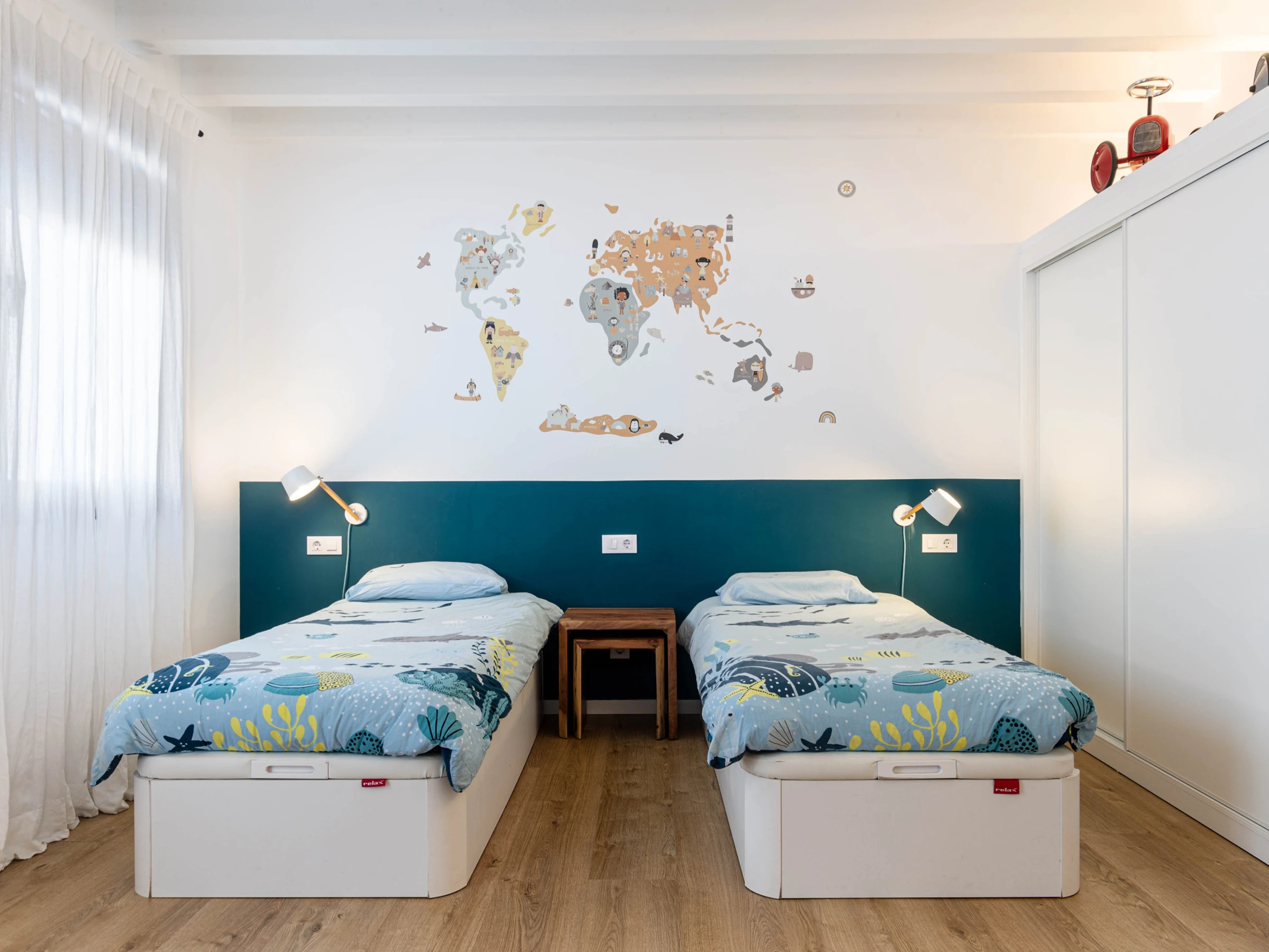 En el interior, encontrará una luminosa y espaciosa cocina totalmente equipada con horno, encimera de inducción, microondas, utensilios de cocina, hervidor de agua, cafetera de filtro y Nespresso, garantizando que sus necesidades culinarias estén cubiertas durante su estancia. La zona de comedor abierta al salón ofrece un ambiente acogedor para disfrutar de las comidas en familia, mientras que el cómodo sofá y la televisión de pantalla plana con Smart TV le invitan a relajarse y disfrutar de una noche de cine en familia. Además, el WiFi de alta velocidad está disponible para aquellos que necesiten trabajar o mantenerse conectados durante su estancia. La villa cuenta con aire acondicionado centralizado en la planta baja y un equipo de aire acondicionado por dormitorio, garantizando un ambiente fresco y confortable en todo momento. En la planta baja, encontrará un dormitorio con cama doble y otro con dos camas individuales, ambos con acceso a la terraza, así como un baño en-suite con ducha en el dormitorio principal y otro baño independiente con bañera.