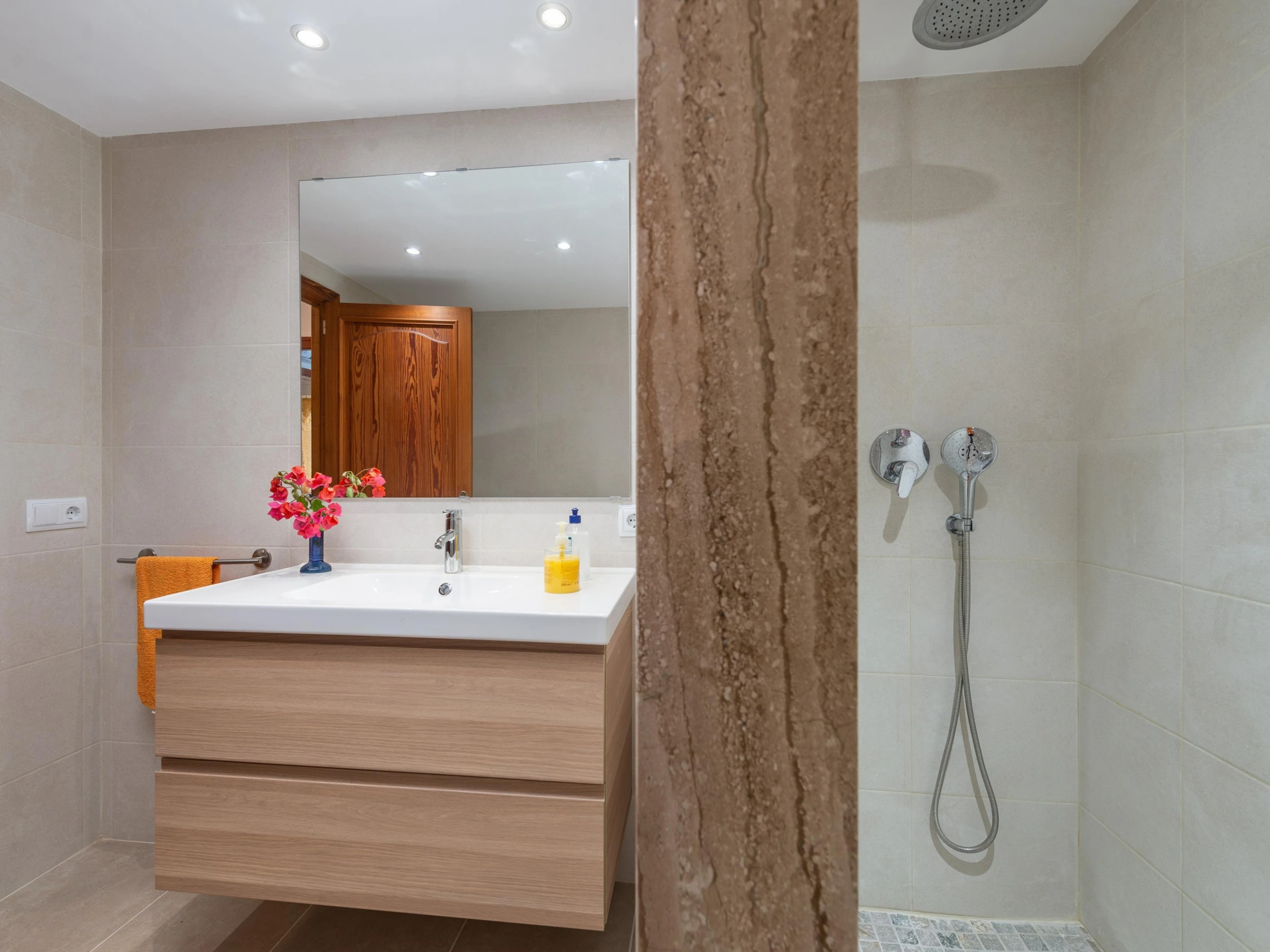En la casa encuentran una gran sala de estar con TV-SAT y Smart TV. La cocina-comedor es muy amplia y ofrece cocina de inducción. En esta planta principal hay un dormitorio con cama doble y dos baños con ducha. En la primera planta encontrarán tres dormitorios, uno con dos camas individuales y dos con cama doble, uno de ellos con baño en-suite con bañera. Otro baño con ducha completa esta planta. Los dormitorios tienen armario y TV-SAT. Hay 1 cuna y 1 trona. La lavandería ofrece lavadora, secadora, plancha y tabla de planchar. Hay aire acondicionado y radiadores en toda la casa.