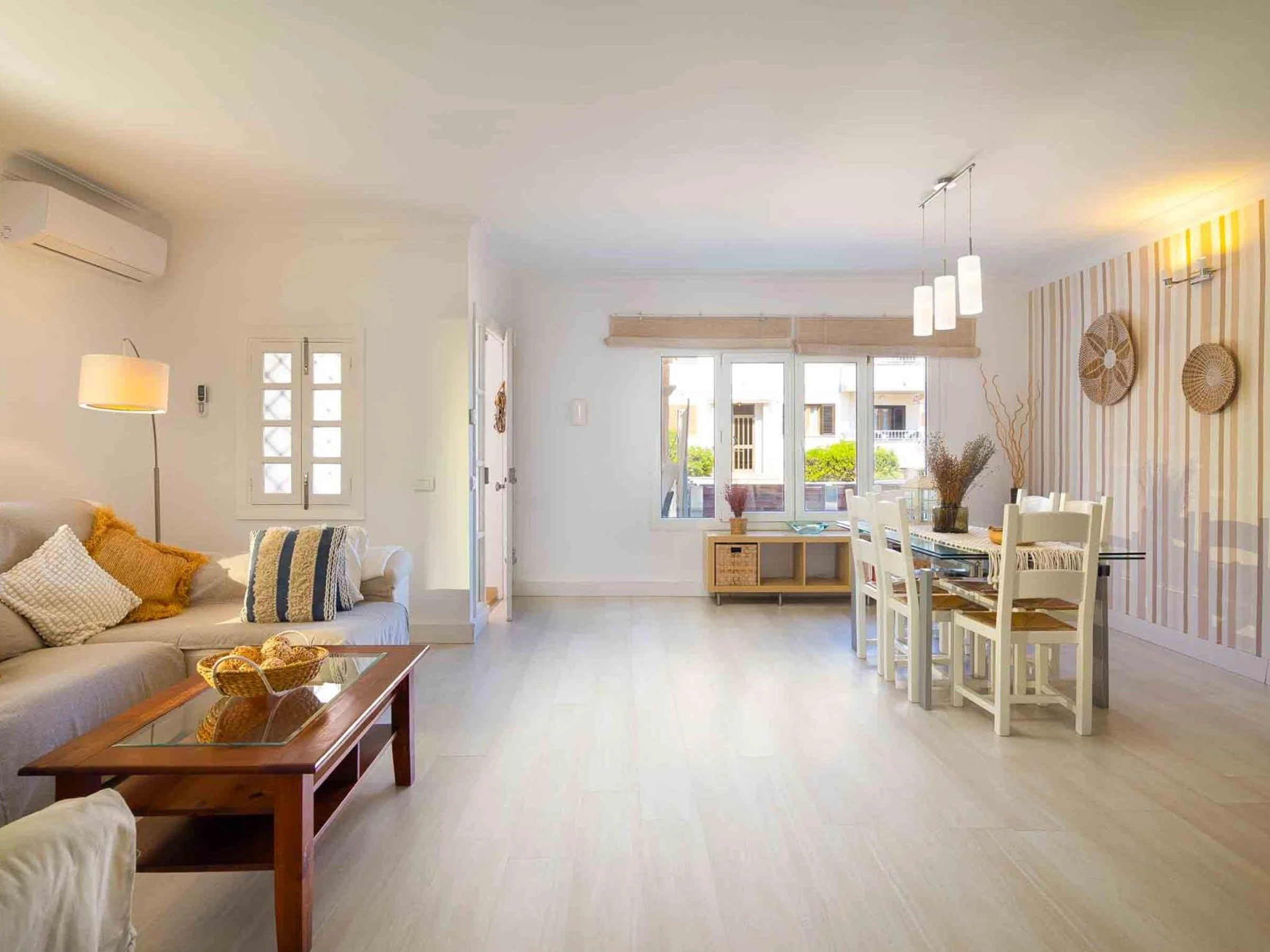 Con una superficie de 125 m², esta luminosa vivienda ofrece espacio para hasta 6 personas y se distribuye en 3 dormitorios (2 con cama doble y 1 con dos camas individuales), 2 baños completos con ducha, un salón amplio con sofá y chimenea, y una cocina totalmente equipada.