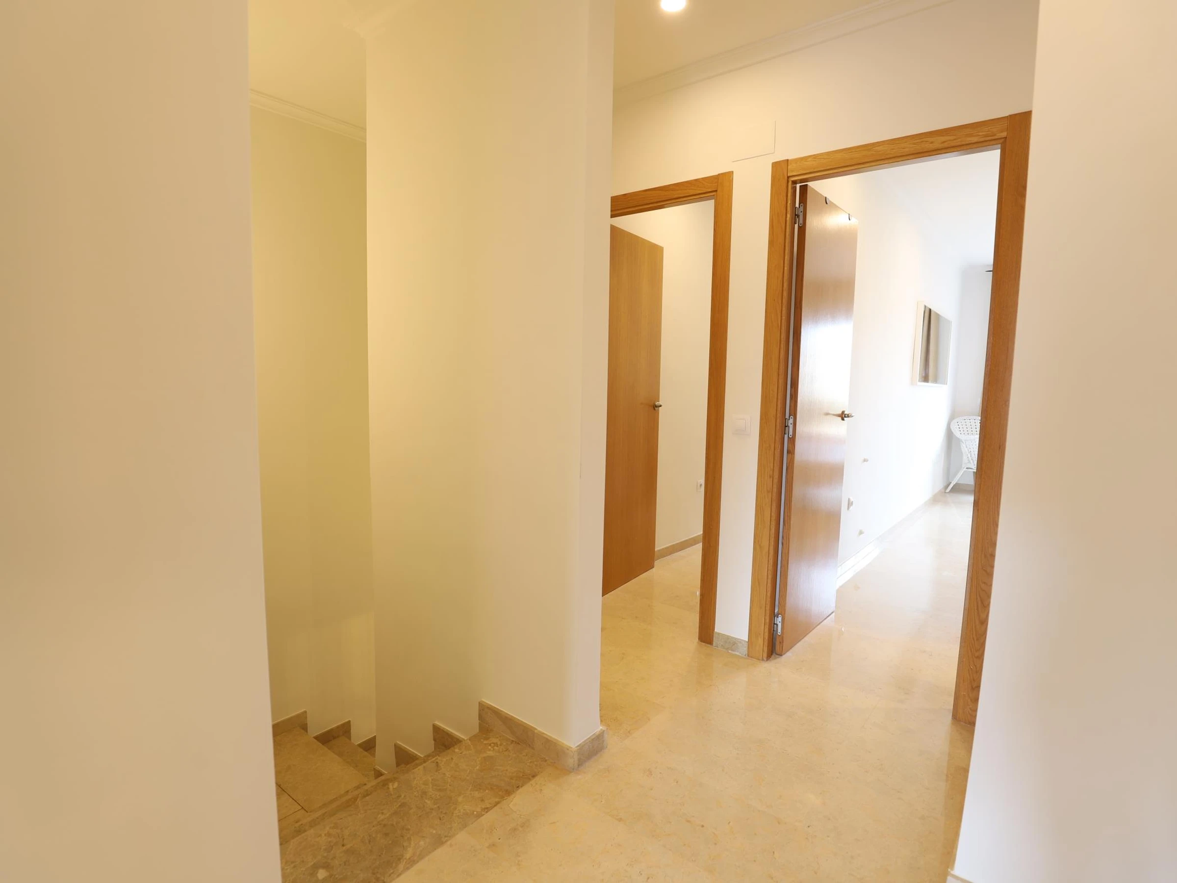 En el piso de arriba, subiendo desde el salón, tenemos 4 estupendas habitaciones, todas con armarios empotrados y salida a las dos magnificas terrazas privadas de las que dispone la casa en esta planta. La habitación principal dispone de cama kingsize y un baño completo con bañera y bidet en suite. Dos habitaciones disponen de dos parejas de camas individuales y una tercera de una litera también de dos camas individuales. Otro baño completo con una gran ducha con mampara completa el primer piso.
