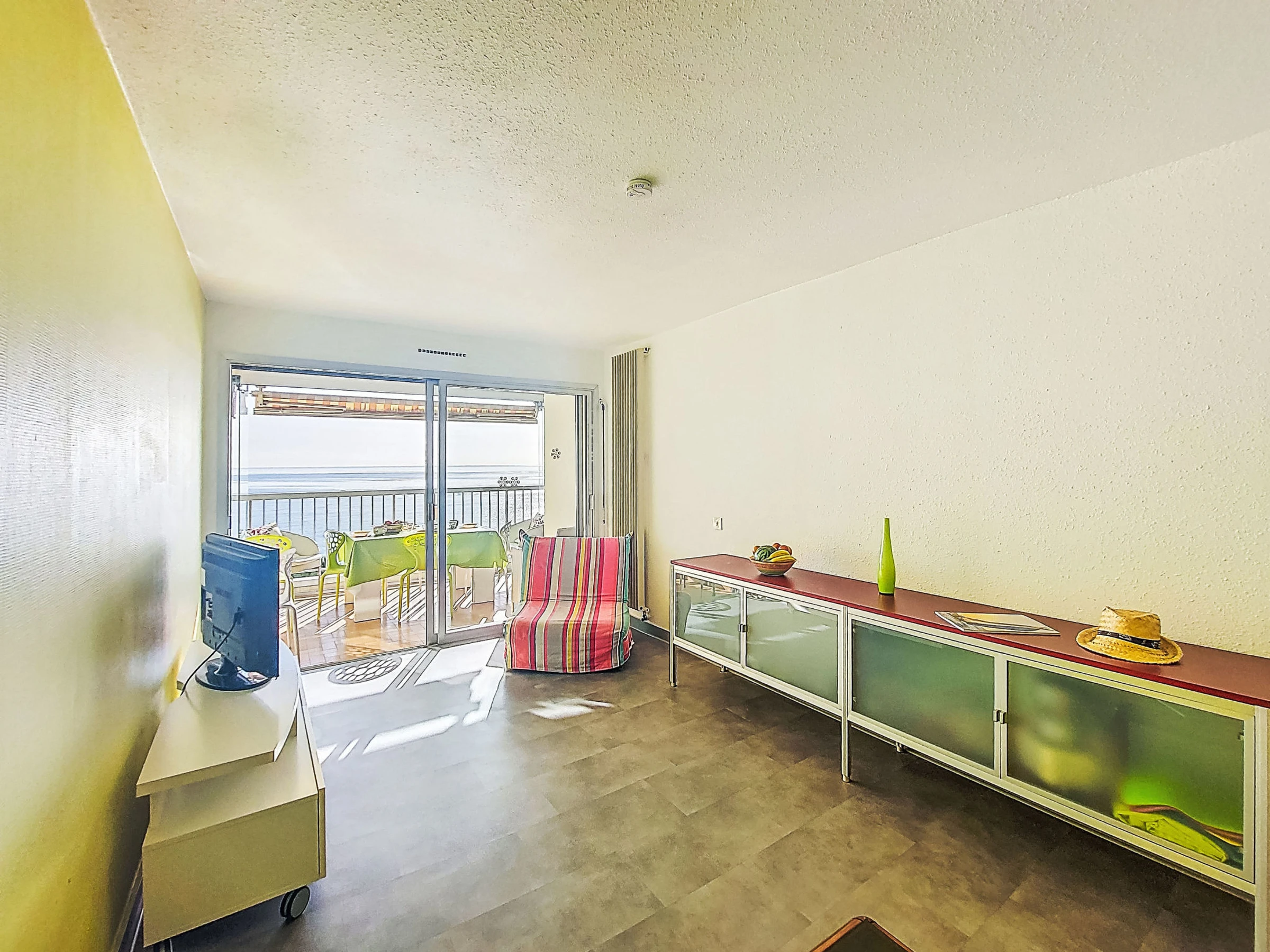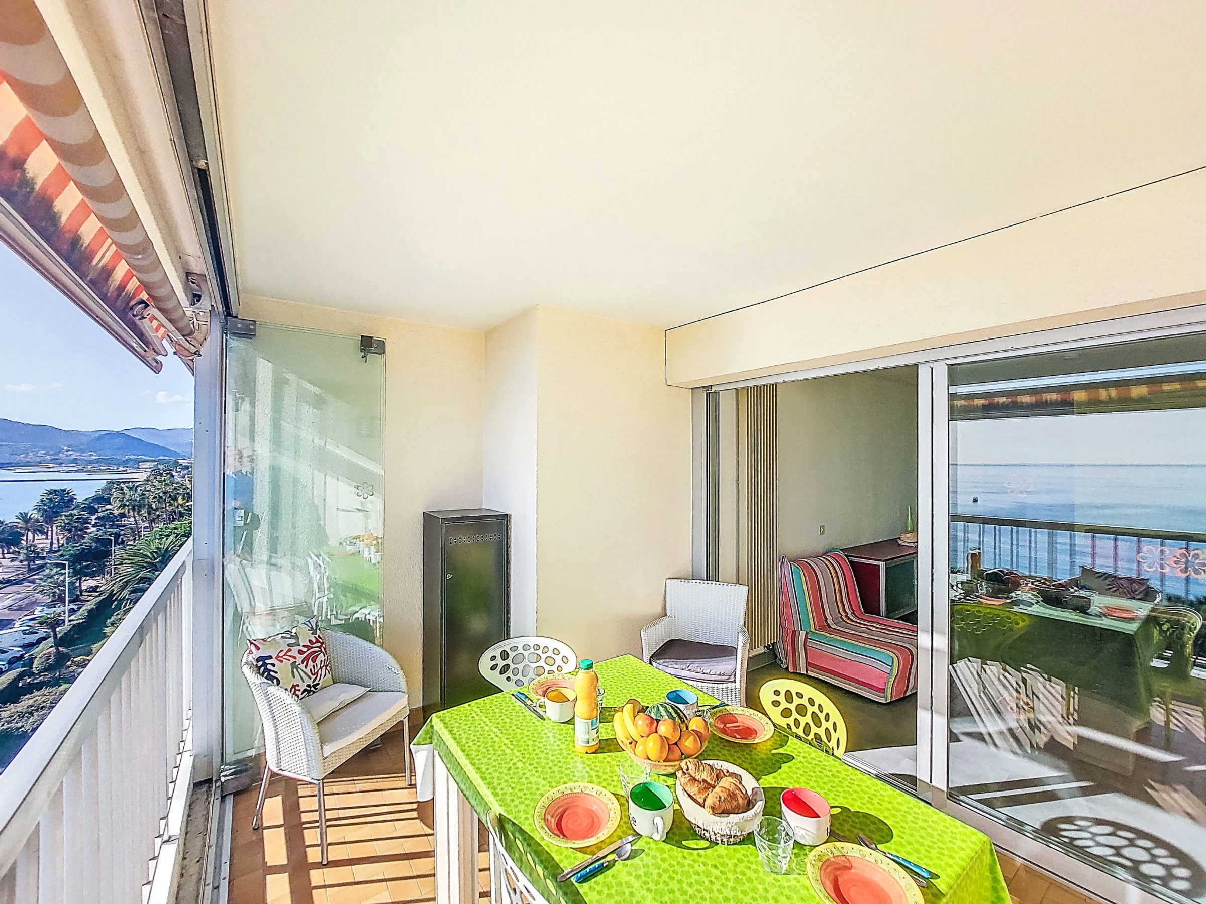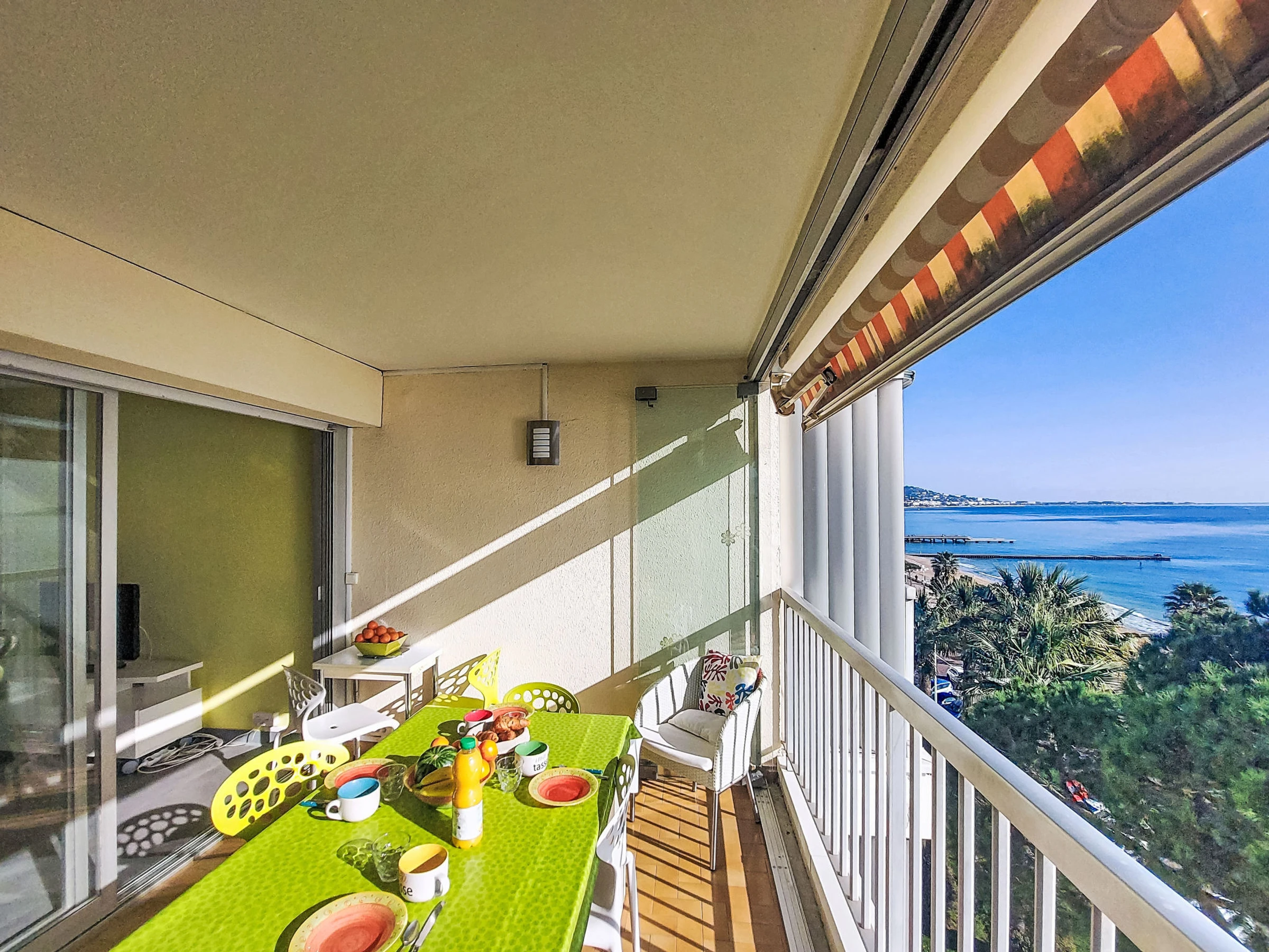 "Cannes Midi", apartamento de 2 estancias 50 m2 en el 6° piso, orientación sureste. Luminoso, con mobiliario bonito: salón-comedor con 1 sofá-cama doble (140 cm, 190 cm de longitud), mesa de comedor y TV. Salida al balcón. 1 dorm. con 2 camas (90 cm, 190 cm de longitud). Cocina abierta (horno, 3 Placas de inducción, tostadora, hervidor de agua eléctrico, microondas, congelador). Salida al balcón cubierto. Baño, WC separado. Calefacción de gas. Balcón 9 m2. Muebles de balcón, porche. Vista panorámica espléndida al mar. El alojamiento dispone de: lavadora. Internet (Wifi, gratis). Garaje (1 coche), altura 180 cm, ancho 200 cm. A tener en cuenta: apartamento para no fumadores. Detector de humo. Oferta de un particular según el art. 155, IV del CGI.