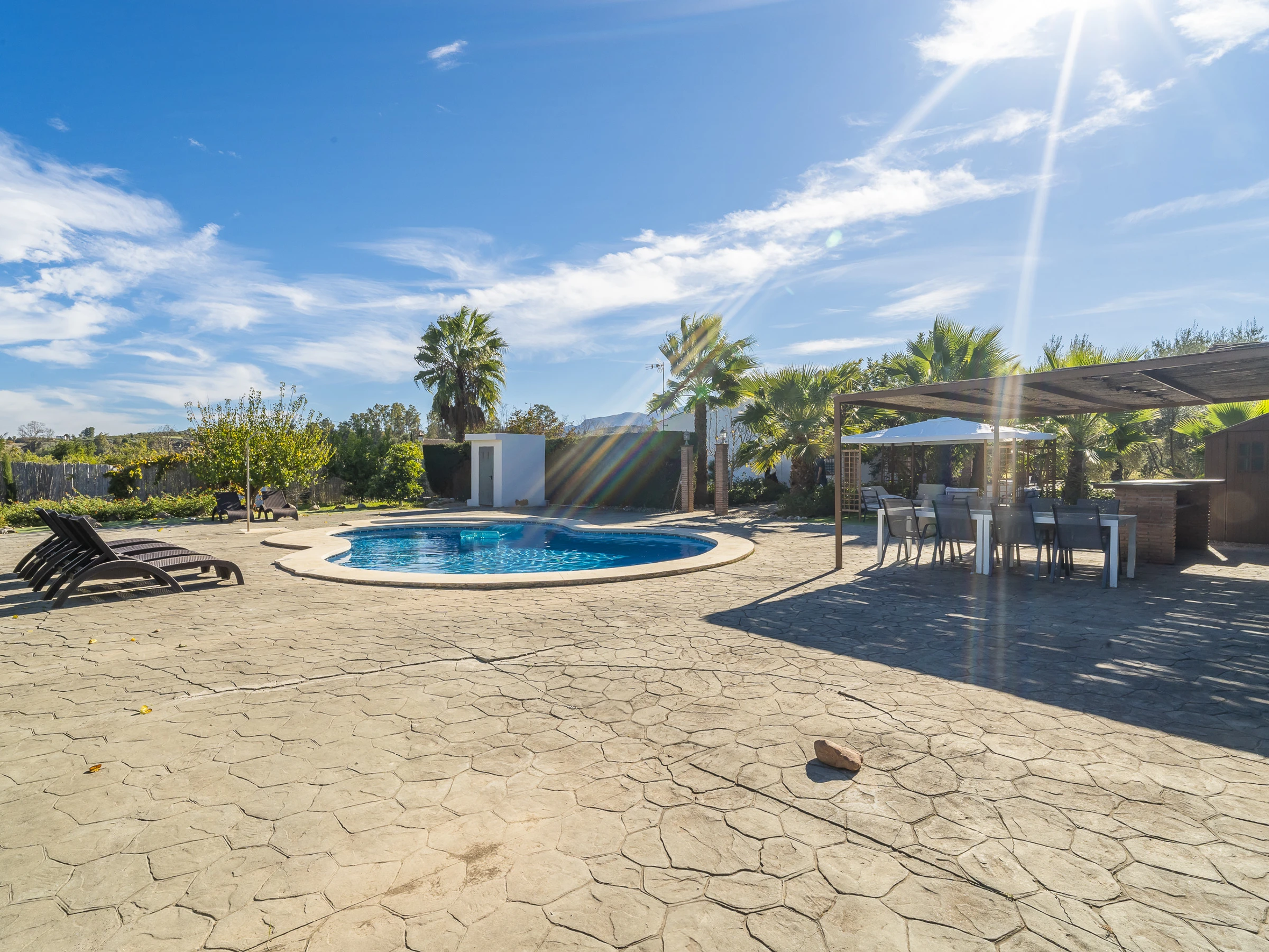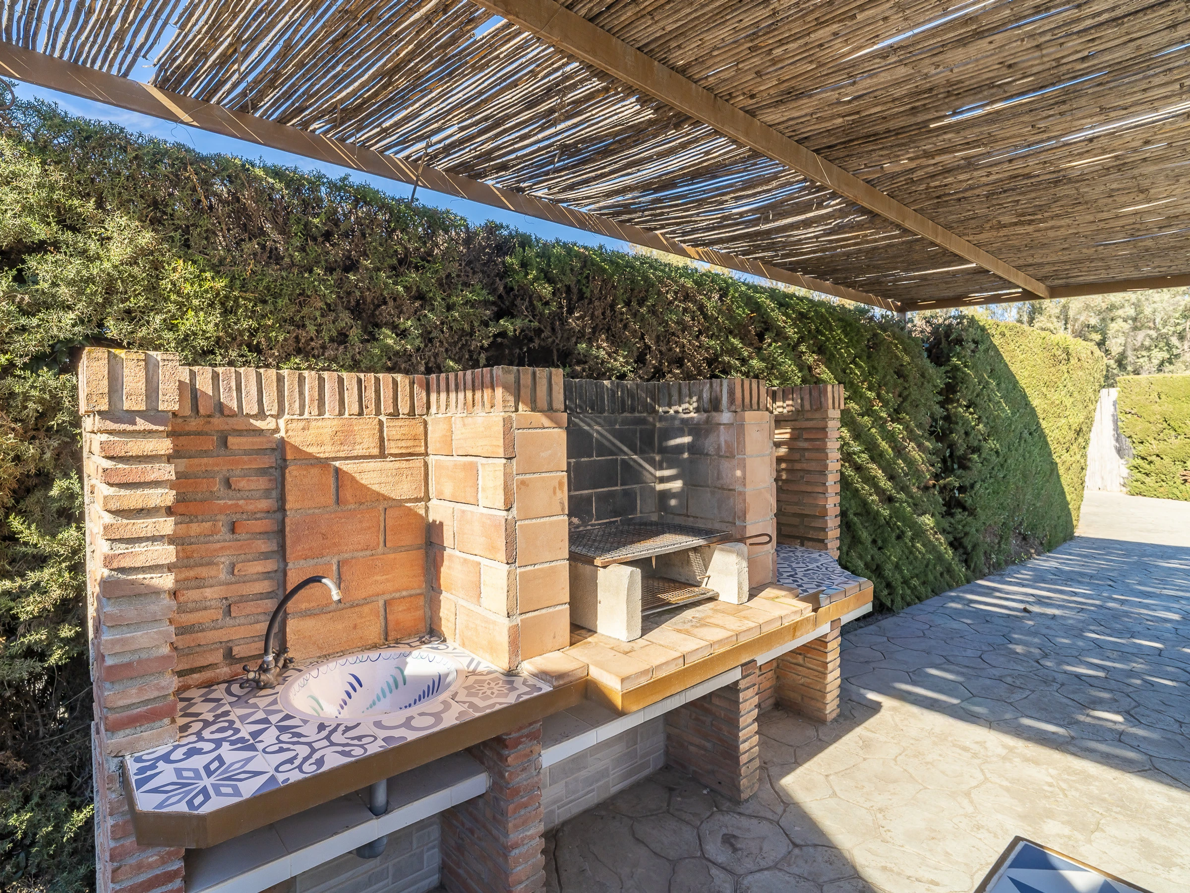 La vivienda ofrece amplias estancias, vistas abiertas a la montaña y un gran jardín privado donde relajarse al aire libre. Cuenta con una terraza de 100 m², piscina privada rodeada de zonas verdes, barbacoa totalmente equipada y espacios exteriores pensados para desconectar y compartir momentos en grupo.