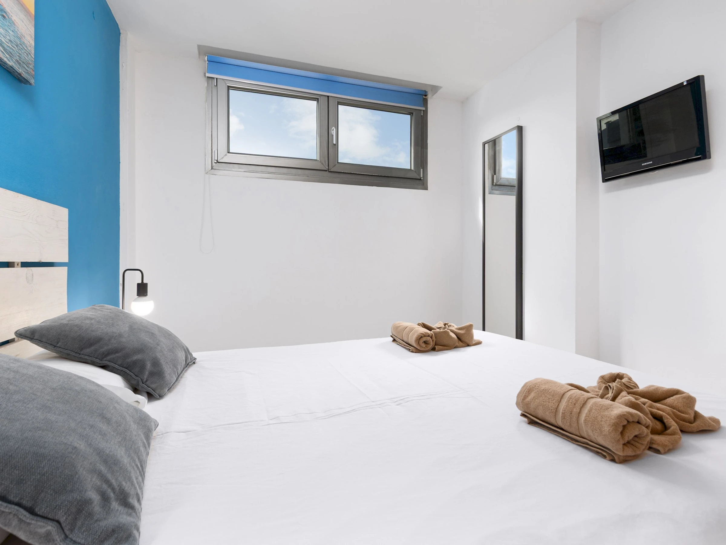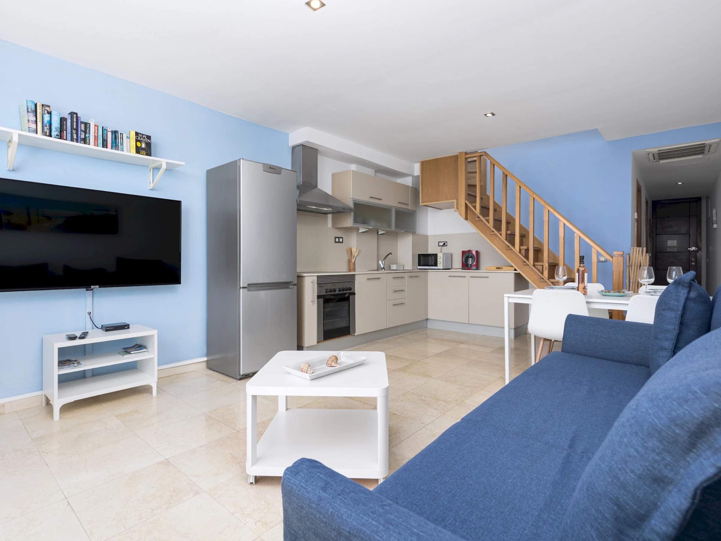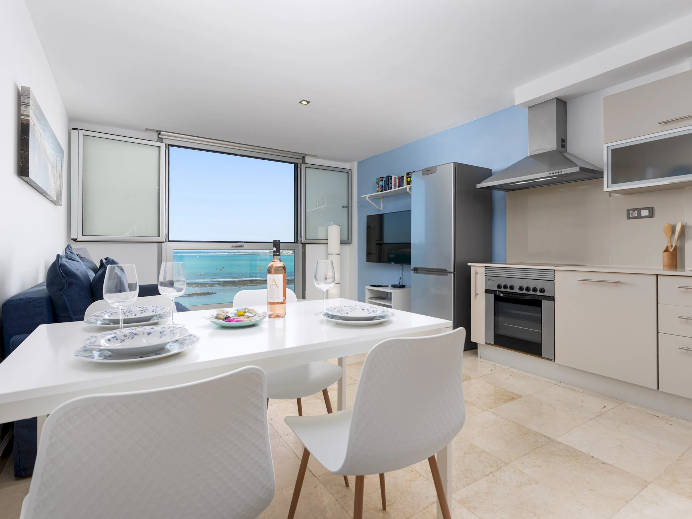Con capacidad para tres personas, es ideal para parejas o pequeños grupos que buscan relajarse junto al mar. Dispone de un dormitorio con cama doble, un baño completo y un luminoso salón con sofá cama y amplios ventanales desde los que podrás contemplar el horizonte azul. La cocina, integrada al salón, está totalmente equipada con placa vitrocerámica, horno, microondas, lavavajillas, lavadora, hervidor, exprimidor, tostadora, plancha y tabla de planchar. También cuenta con dos televisores, conexión a internet de fibra óptica y ventilador para los días más cálidos, garantizando una estancia cómoda en cualquier época del año.