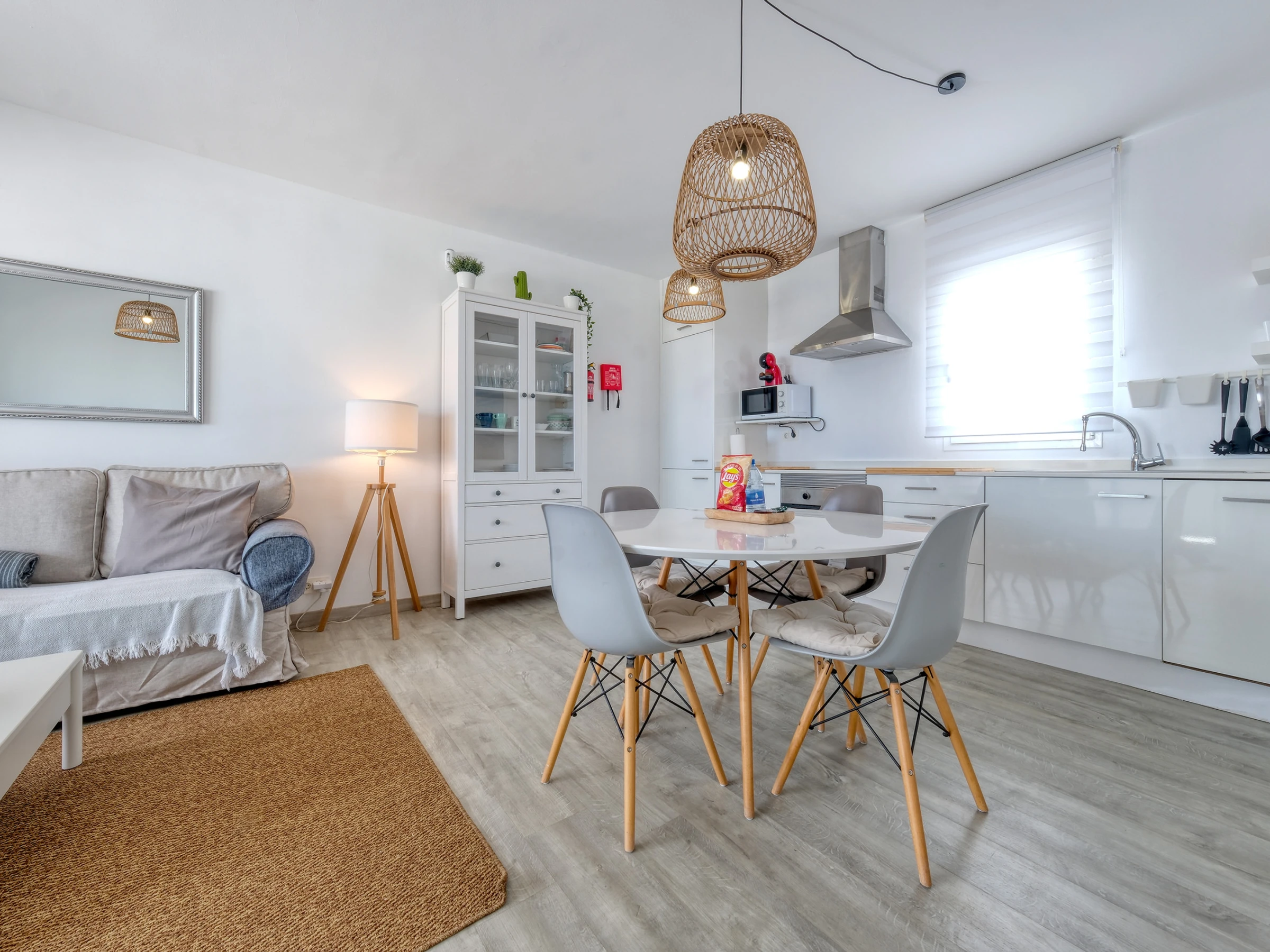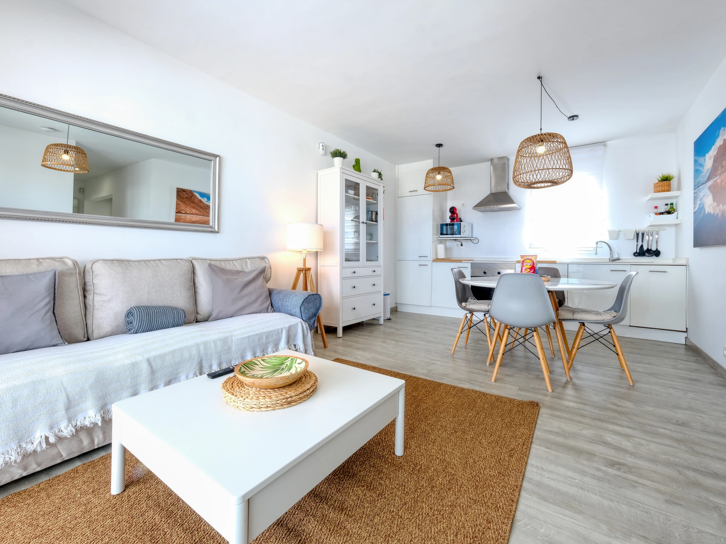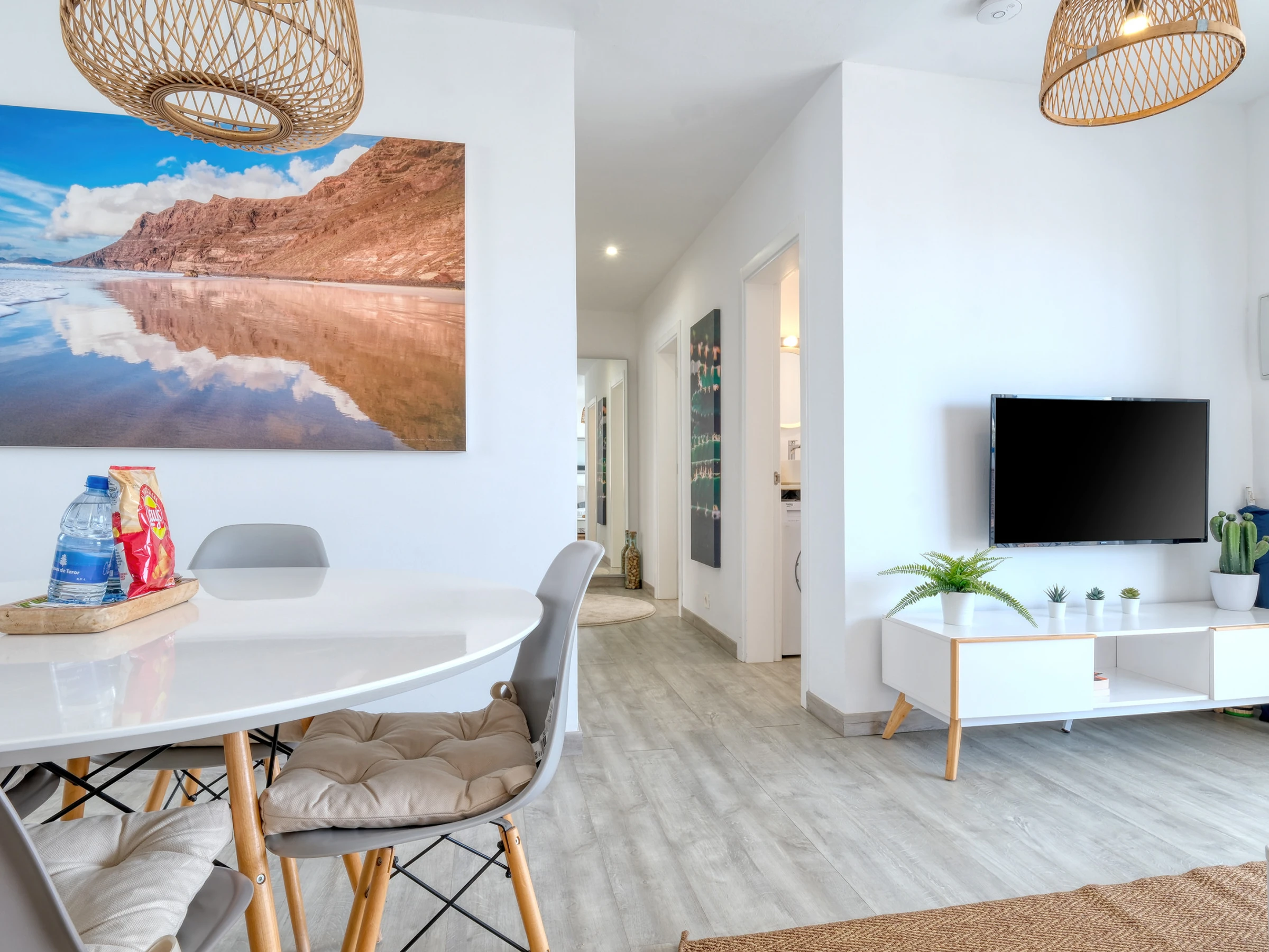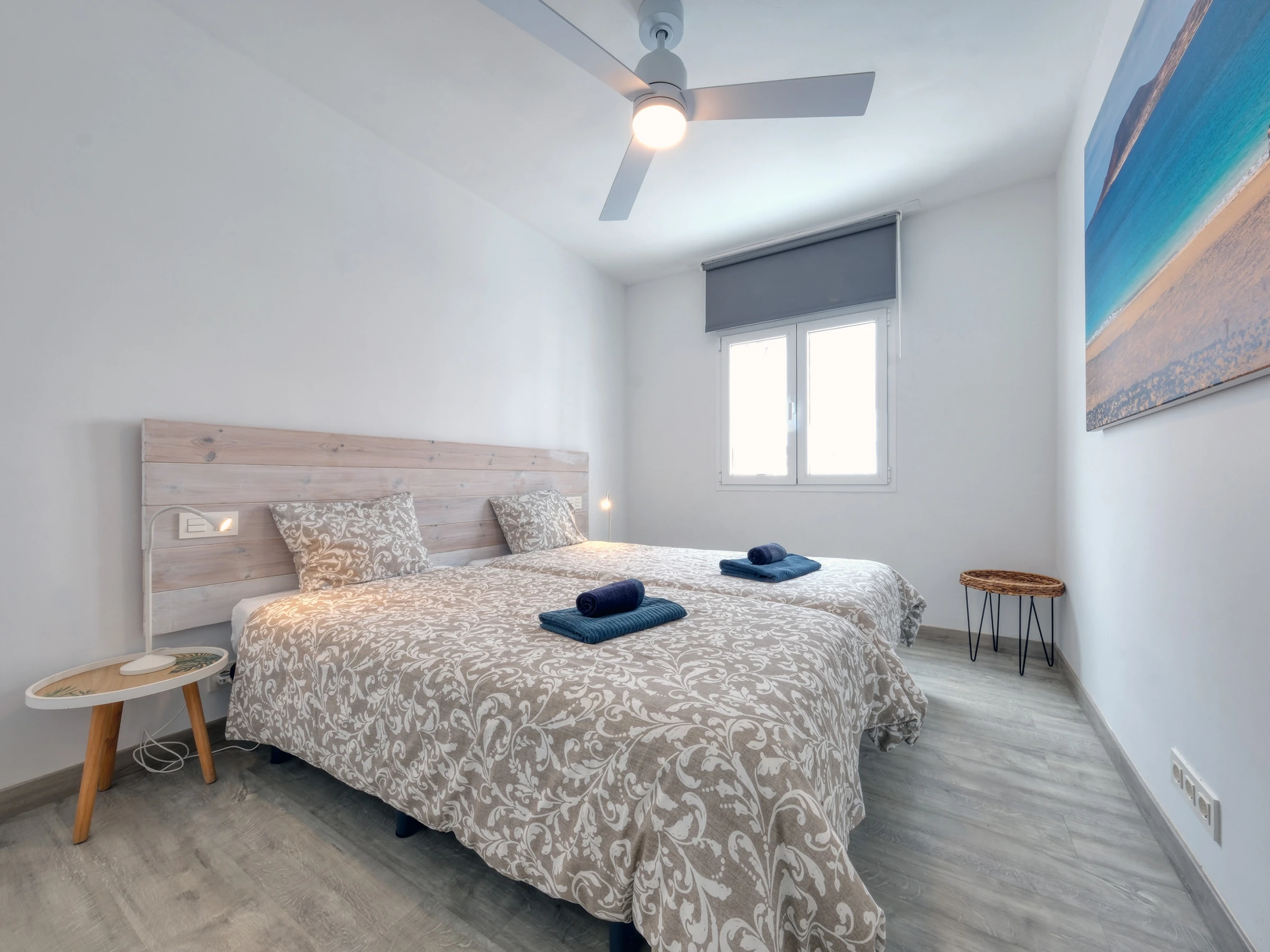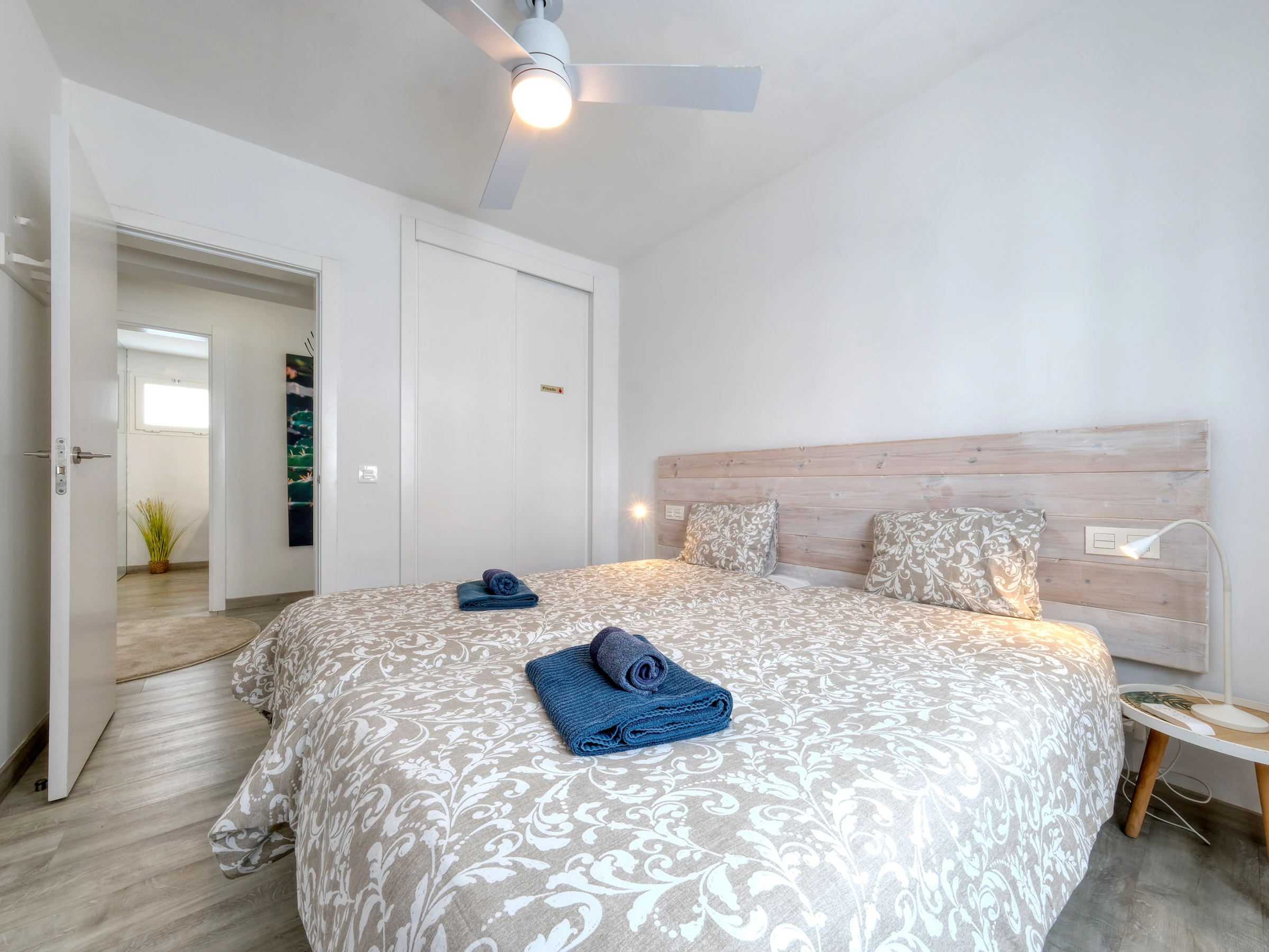 Este elegante y moderno alojamiento, decorado con gusto y diseñado para ofrecer el máximo confort, tiene capacidad para 4 personas. La vivienda ofrece dos cómodas habitaciones: una con cama de matrimonio y otra con dos camas individuales, ambas con armarios y una agradable terraza equipada con sillón y mesa, perfecta para relajarse y disfrutar del clima privilegiado de la isla.