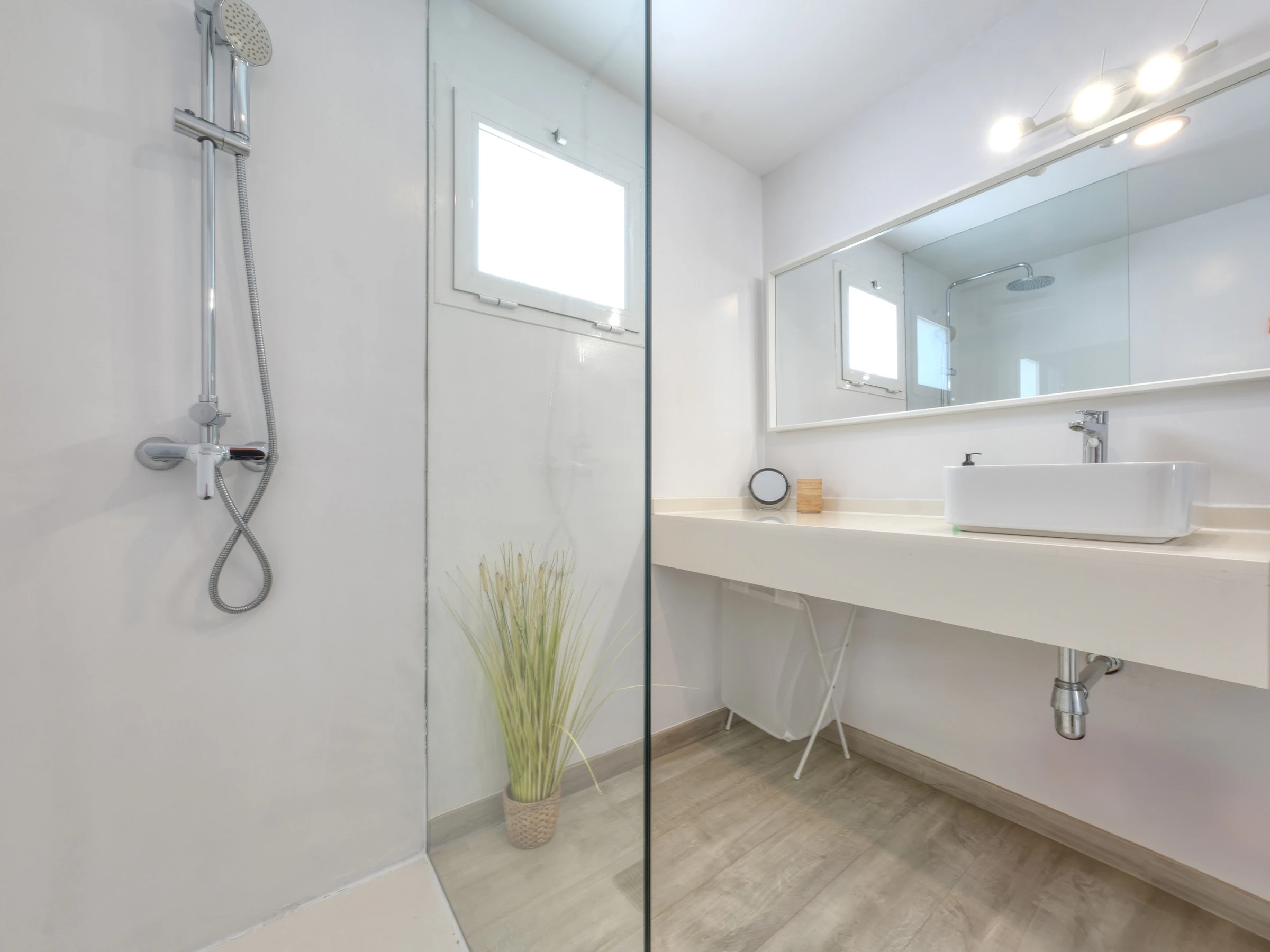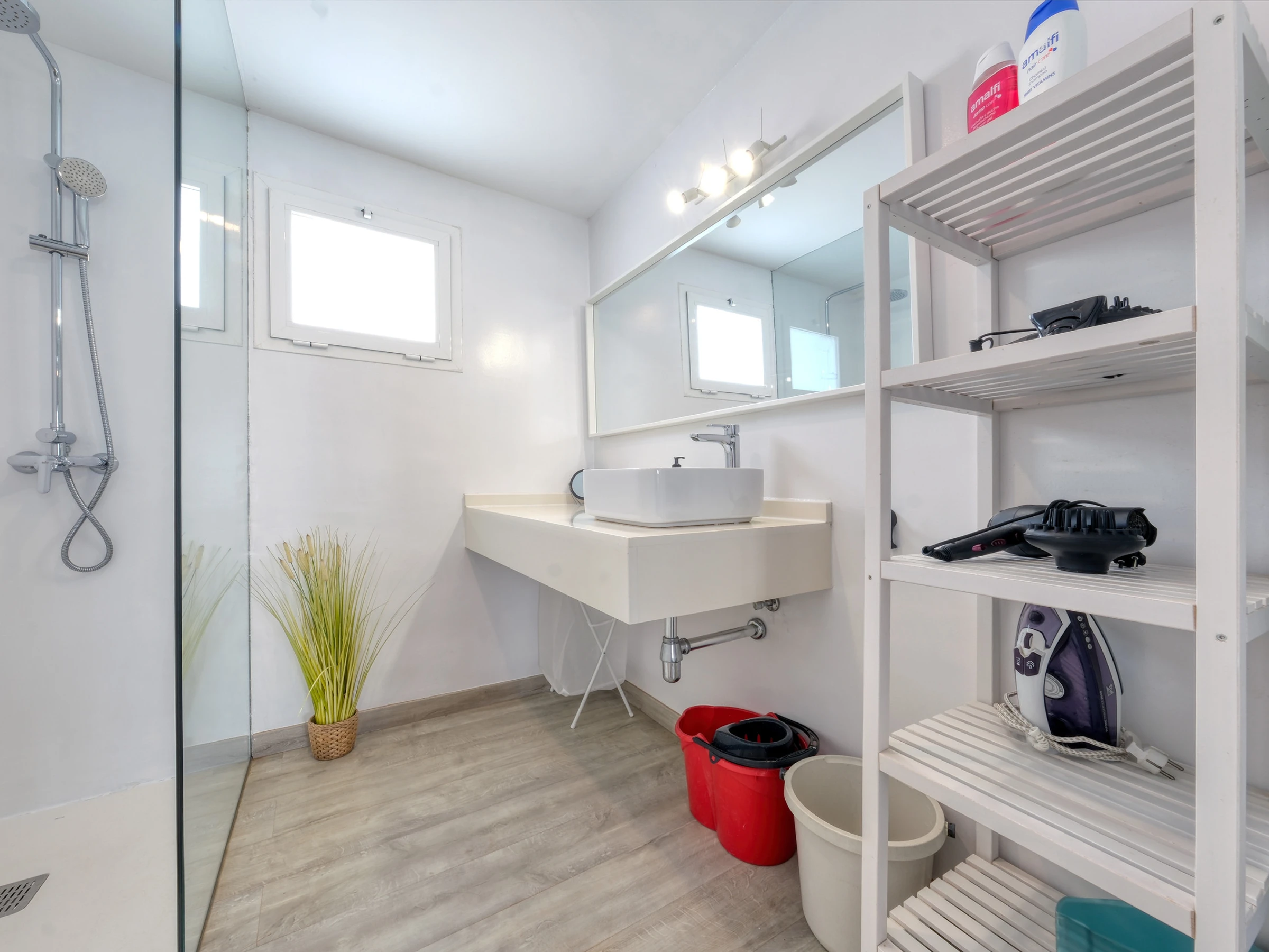 Dispone además de dos baños completos con plato de ducha. Para mayor comodidad, incluye lavadora, plancha, secador de pelo y ventiladores en cada dormitorio.