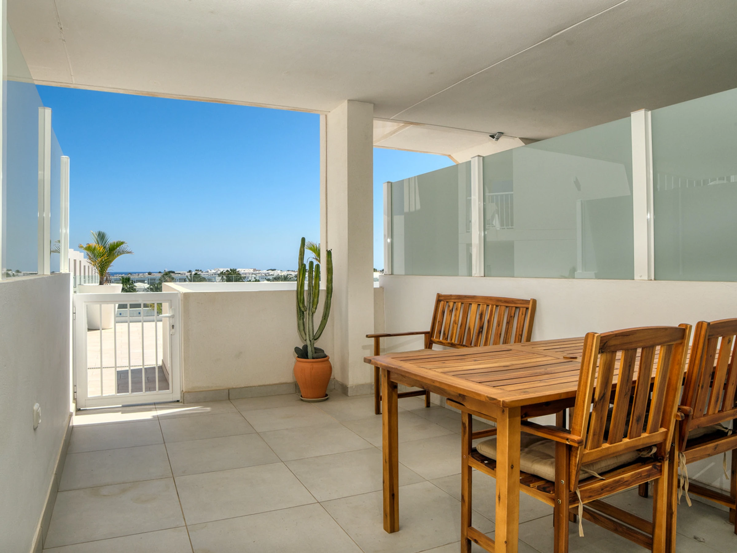 Nueva y moderna propiedad de alquiler vacacional de un dormitorio en un complejo con piscina. Vistas espectaculares del mar y una zona de descanso para disfrutar del espacio al aire libre. Se encuentra a 15 minutos de Playa de las Cucharas y muy cerca de todos los servicios, como supermercados, bares, restaurantes y tiendas.