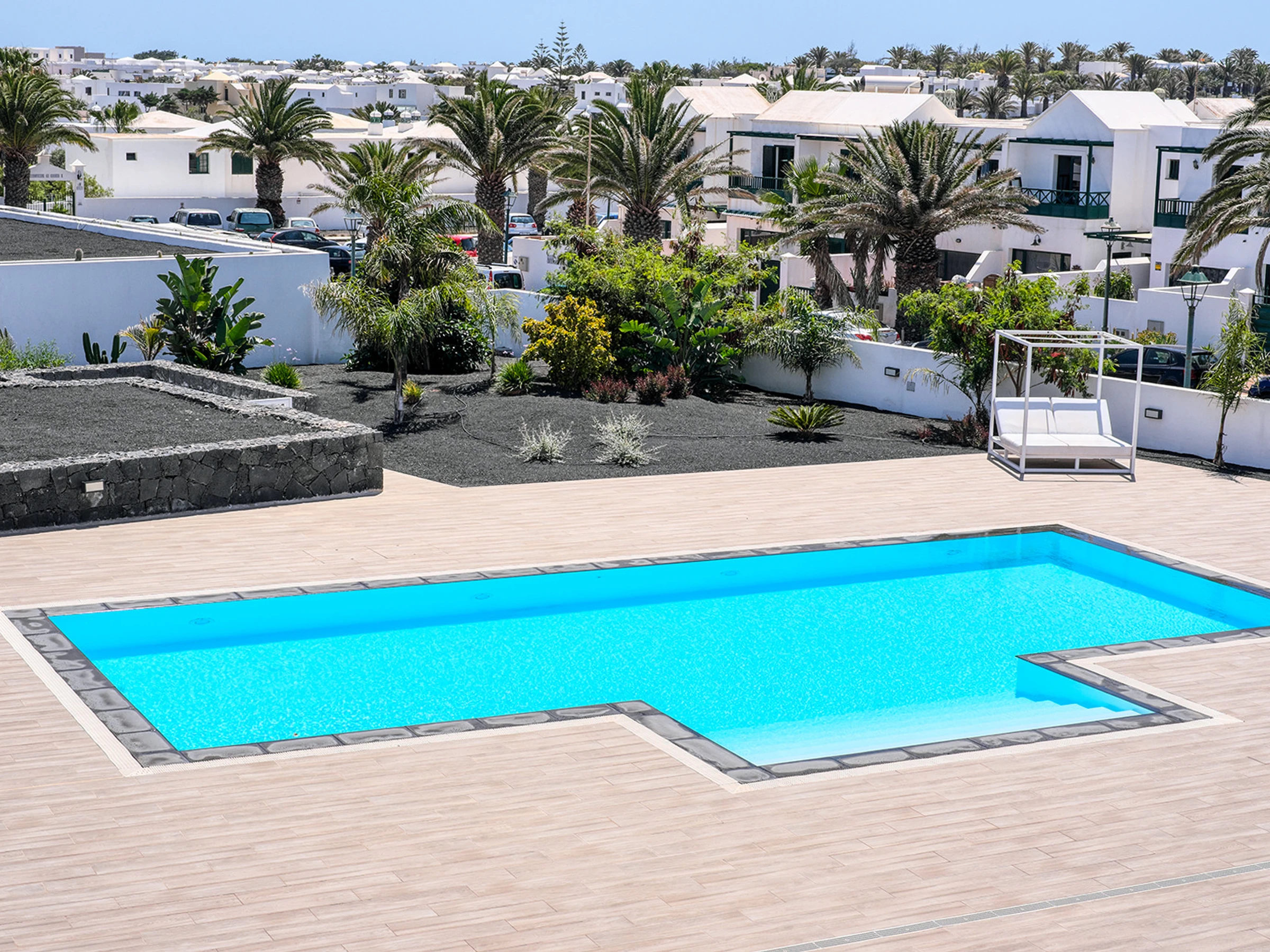 Apartamento nuevo en un complejo moderno y lujoso en Costa Teguise. Consta de un dormitorio con una cama doble y un sofá-cama en la sala de estar. Baño con ducha y lavadora. Se proporcionan ropa de cama y toallas de baño y piscina.