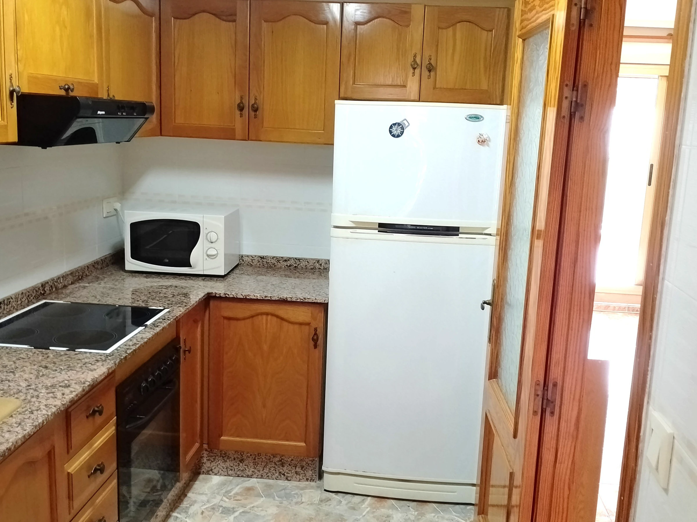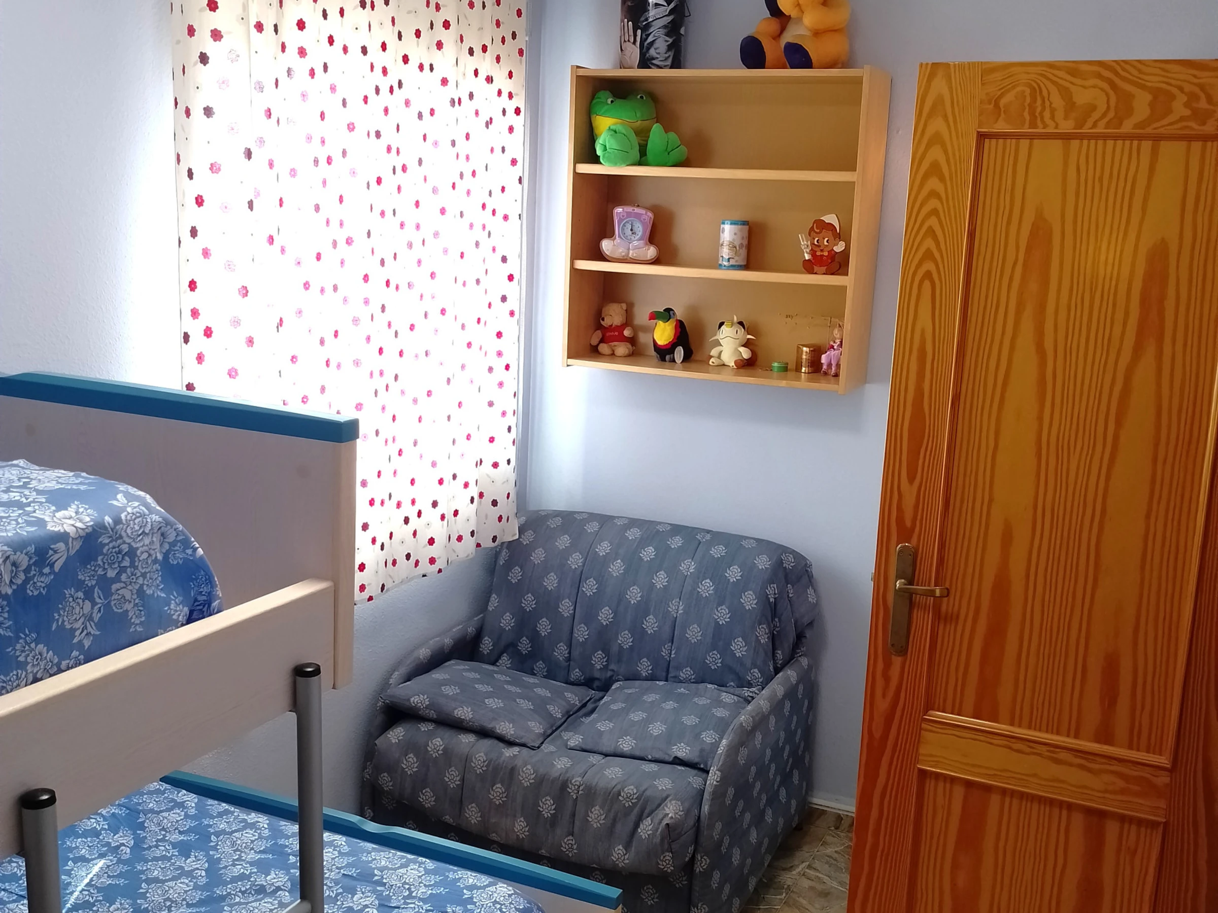 El apartamento cuenta con dos dormitorios que pueden acomodar hasta 4 personas cómodamente: una habitación con cama doble y otra con literas, ideal para grupos o familias con niños. La cocina totalmente equipada incluye electrodomésticos como nevera, lavadora, horno, microondas, cafetera y menaje, permitiendo preparar comidas deliciosas durante tu estancia.