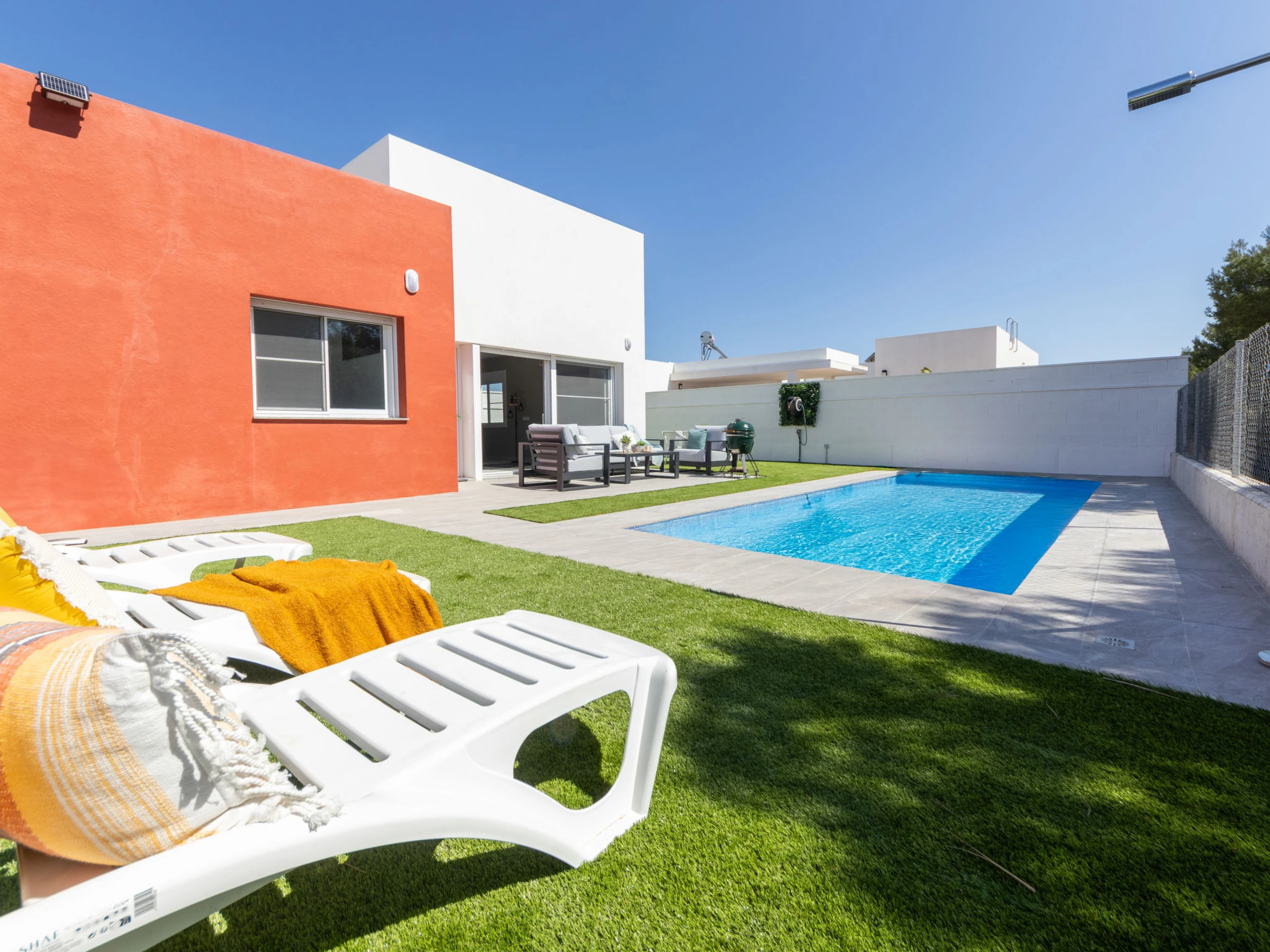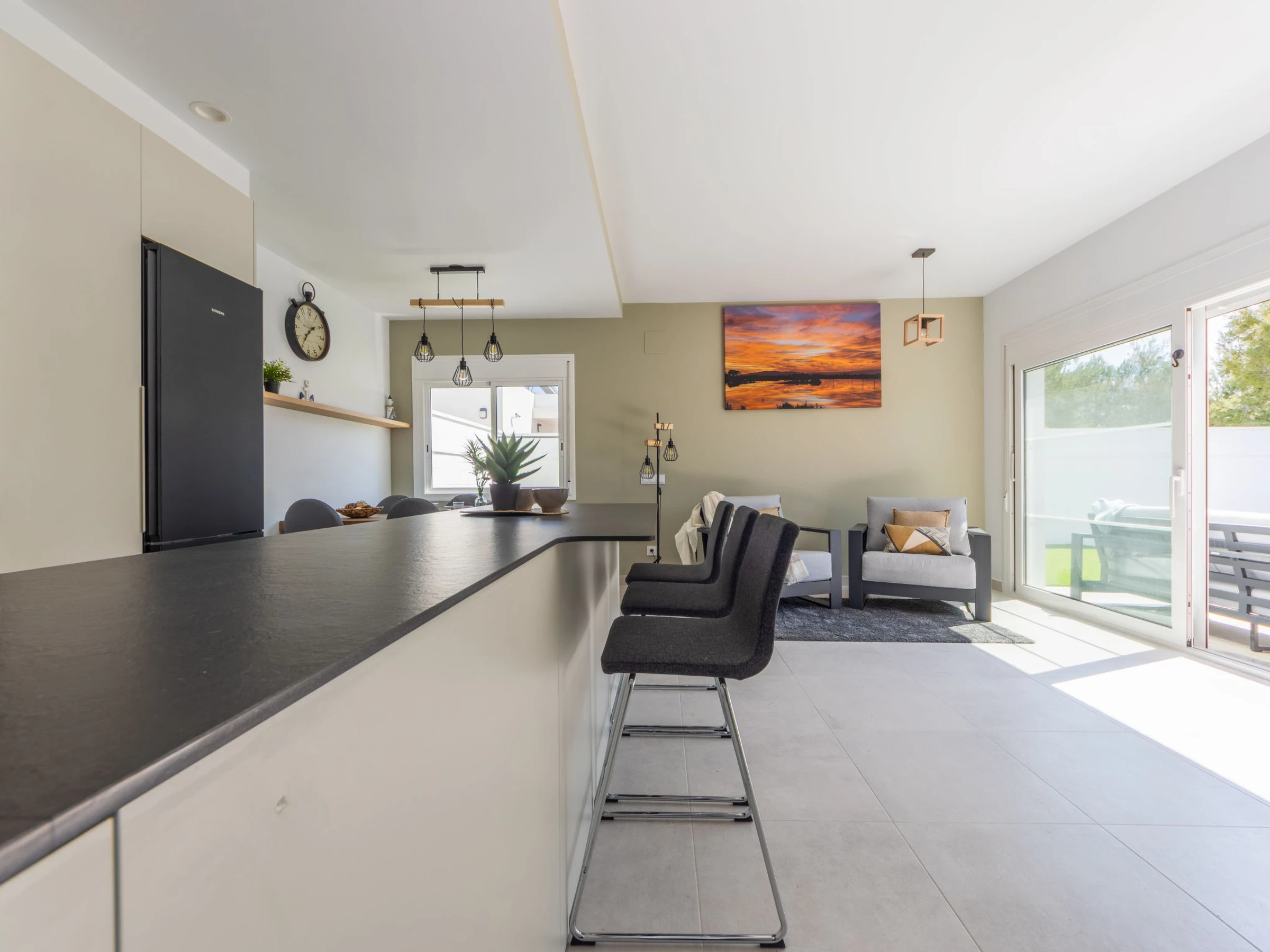 "Alba", casa 4 estancias 98 m2, en la planta baja. Espacioso y luminoso, con mobiliario moderno y agradable: salón-comedor con mesa de comedor, TV digital, aire acondicionado y bomba de calor, caliente. Salida a la terraza, a la piscina. 1 dorm. doble con 1 cama de matrimonio (135 cm, 190 cm de longitud). 1 dorm. doble con 1 cama de matrimonio (135 cm, 190 cm de longitud). 1 dorm. doble con 2 camas (90 cm, 190 cm de longitud). Cocina abierta (horno, lavavajillas, 3 placas de vitrocerámica, tostadora, microondas, congelador, cafetera eléctrica) con barra americana. Salida a la terraza, a la piscina. 2 ducha/WC. Aire acondicionado, aire caliente. Muebles de terraza, barbacoa, tumbonas, porche. Vista a la piscina y al paisaje. El alojamiento dispone de: lavadora, plancha, mosquitera, secador de pelo. Internet (Wifi, gratis). Plaza de aparcamiento junto a la casa. Adecuado para familias. Permitido máximo 2 mascotas / perros. [hidden]