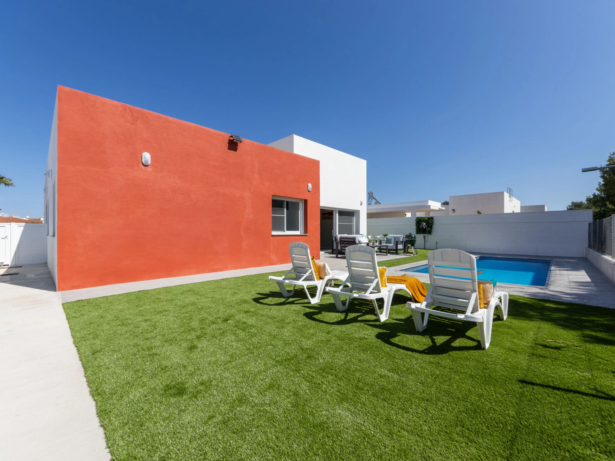 Riumar a 10 km de Deltebre: Casa "Alba", moderna, agradable, adosada por un lado. Lugar tranquilo, soleado, a 700 m del mar, a 700 m de la playa. Privado: terreno (vallada), piscina rectangular (8 x 3 m, 160 cm de profundidad, Disponible por temporada: [hidden] - [hidden] con escalera interior. Ducha exterior, porche, terraza, muebles de jardín, barbacoa. En el inmueble: Wifi, aire acondicionado, lavadora. Aparcamiento junto a la casa. Supermercado 500 m, restaurante, bar 300 m, panadería 600 m, parada autobús "Riumar" 400 m, estación de tren "Aldea- Amposta" 25 km. Atracciones en los alrededores: Parc Natural del Delta 800 m, Tortosa 35 km, Playa el Trabucador 29 km, Barcelona 190 km, Port Aventura 70 km. Zona de senderismo Ports Tortosa Beseit 52 km, GR 92 20 km. A tener en cuenta: coche recomendable. Grupos de jóvenes sólo bajo petición.