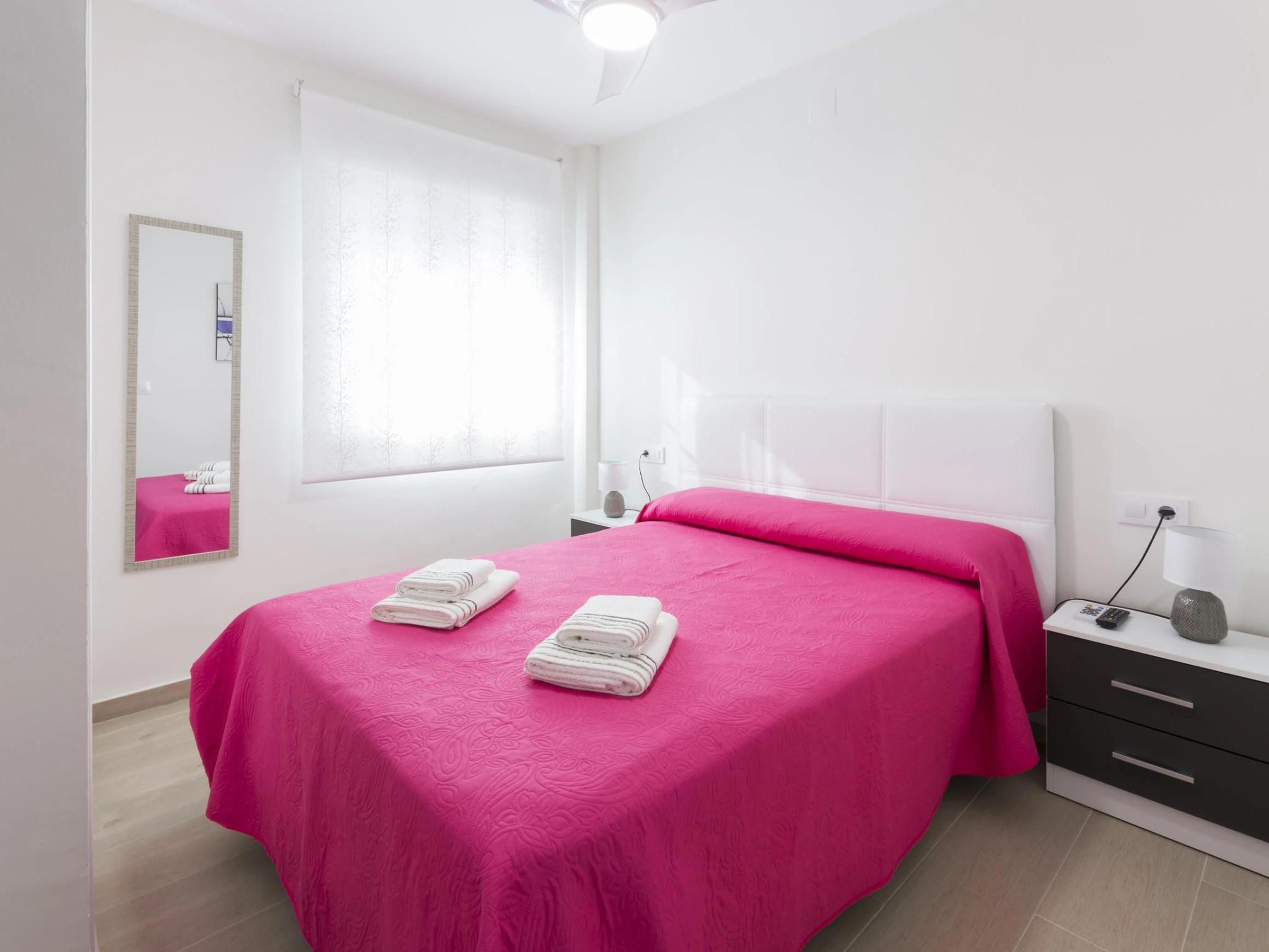 En el interior encontrarán todas las comodidades que puedan imaginar. La bonita sala comedor equipada con AC y Smart TV será el lugar perfecto descansar y relajarse. La cocina, con vitrocerámica, dispone de todos los utensilios necesarios para que cocinen con comodidad. A la hora de dormir disponen de tres dormitorios dobles, dos de ellos con TV. Un baño con ducha completa la estancia. Si lo desean, pueden utilizar los ventiladores, el radiador, la lavadora, la plancha y tabla para planchar que encontrarán en el alojamiento. Si viajan con su bebé, podemos proporcionarles una cuna y una trona.