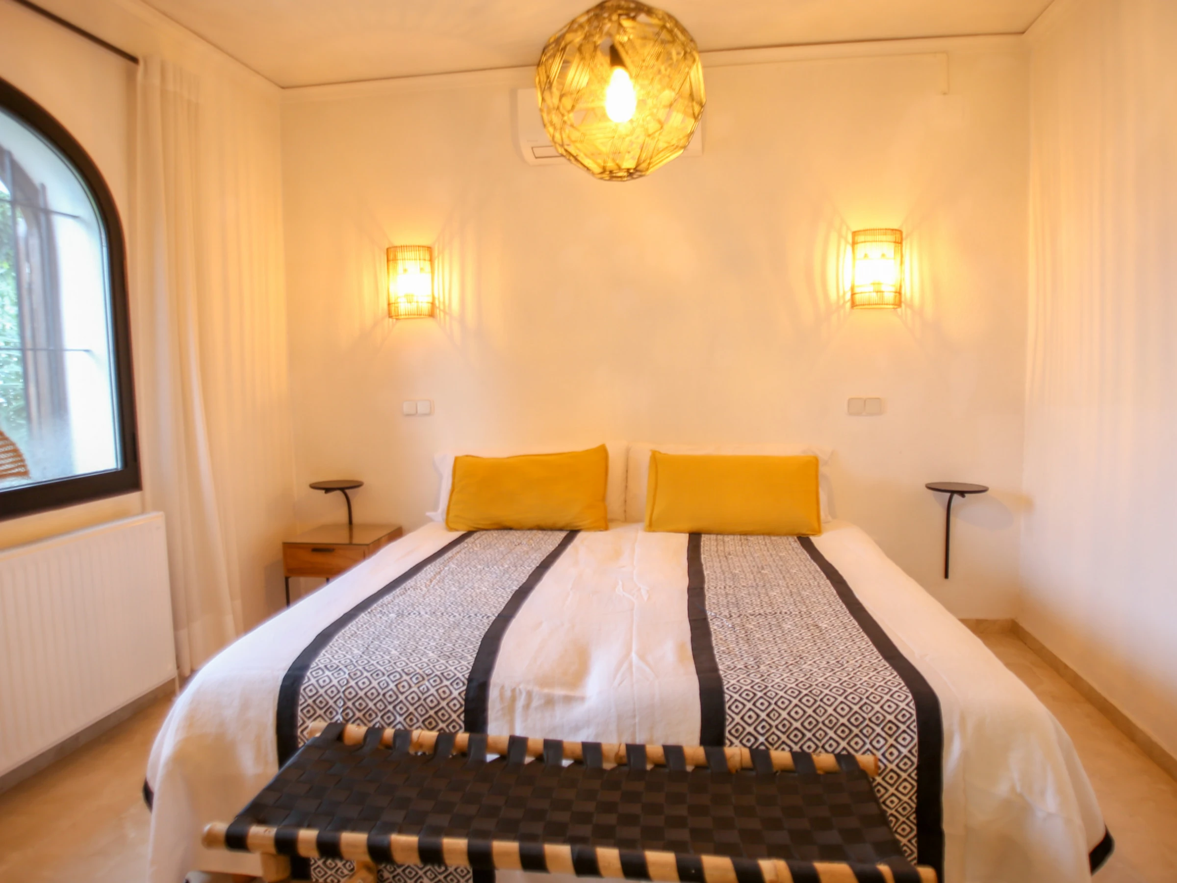 En primer lugar en la casa principal los dos dormitorios disponen de dos camas de 90cm juntas, así como aire acondicionado y cuarto de baño dentro de una de las habitaciones.