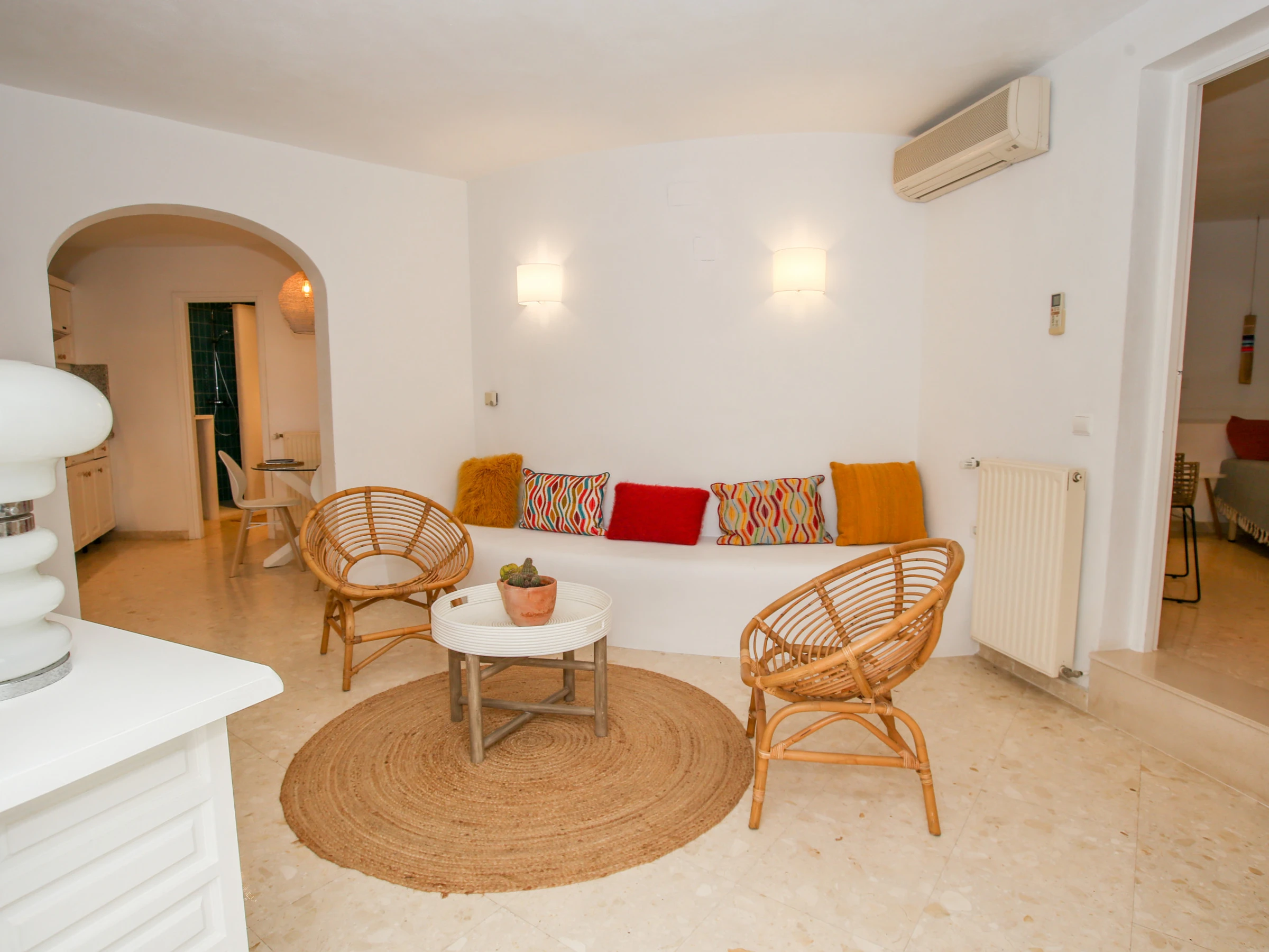 El estudio situado junto a la piscina, dispone de cuarto de baño, salón/comedor, cocina y una amplia habitación. Todo con aire acondicionado y reformado.