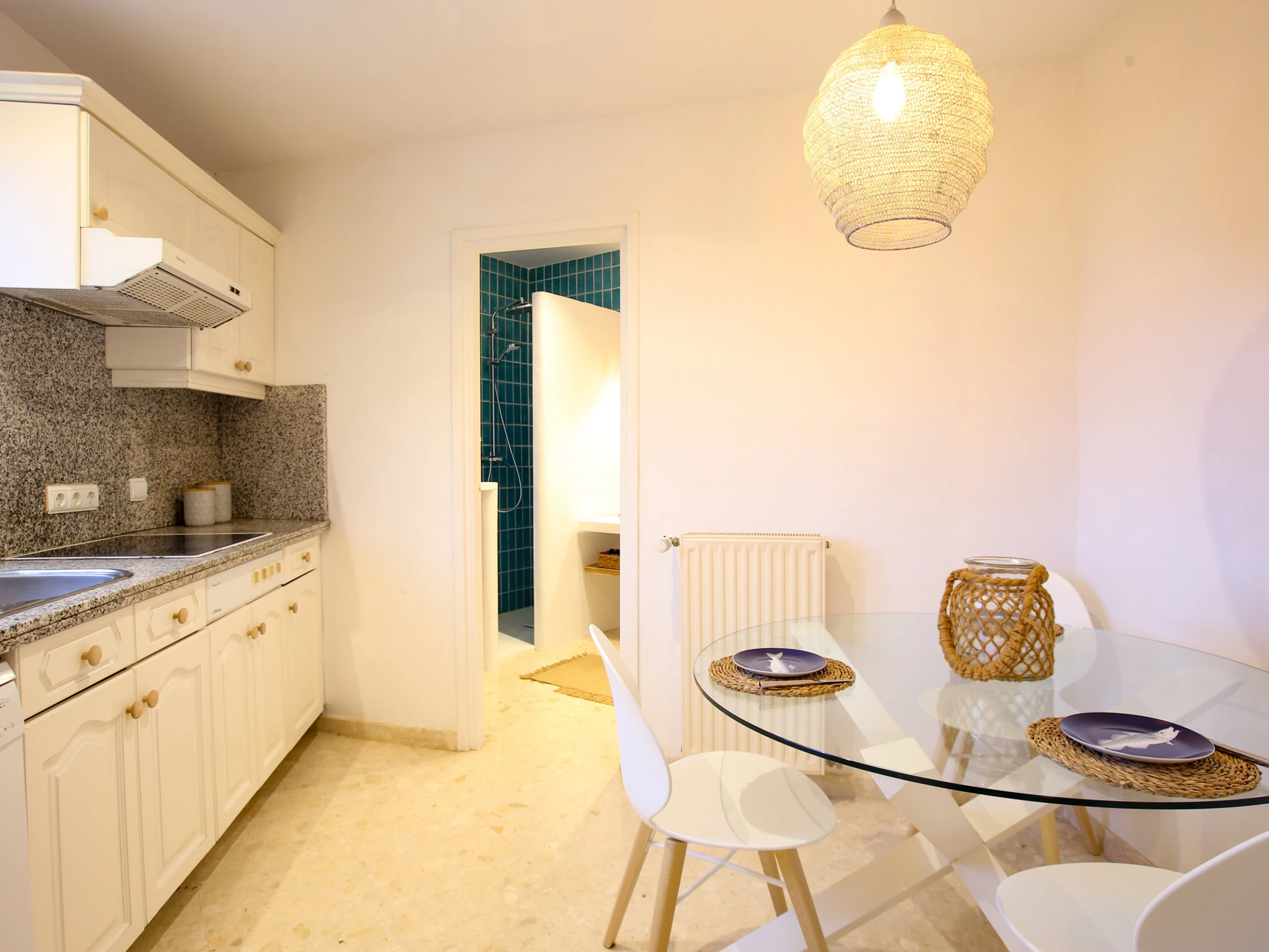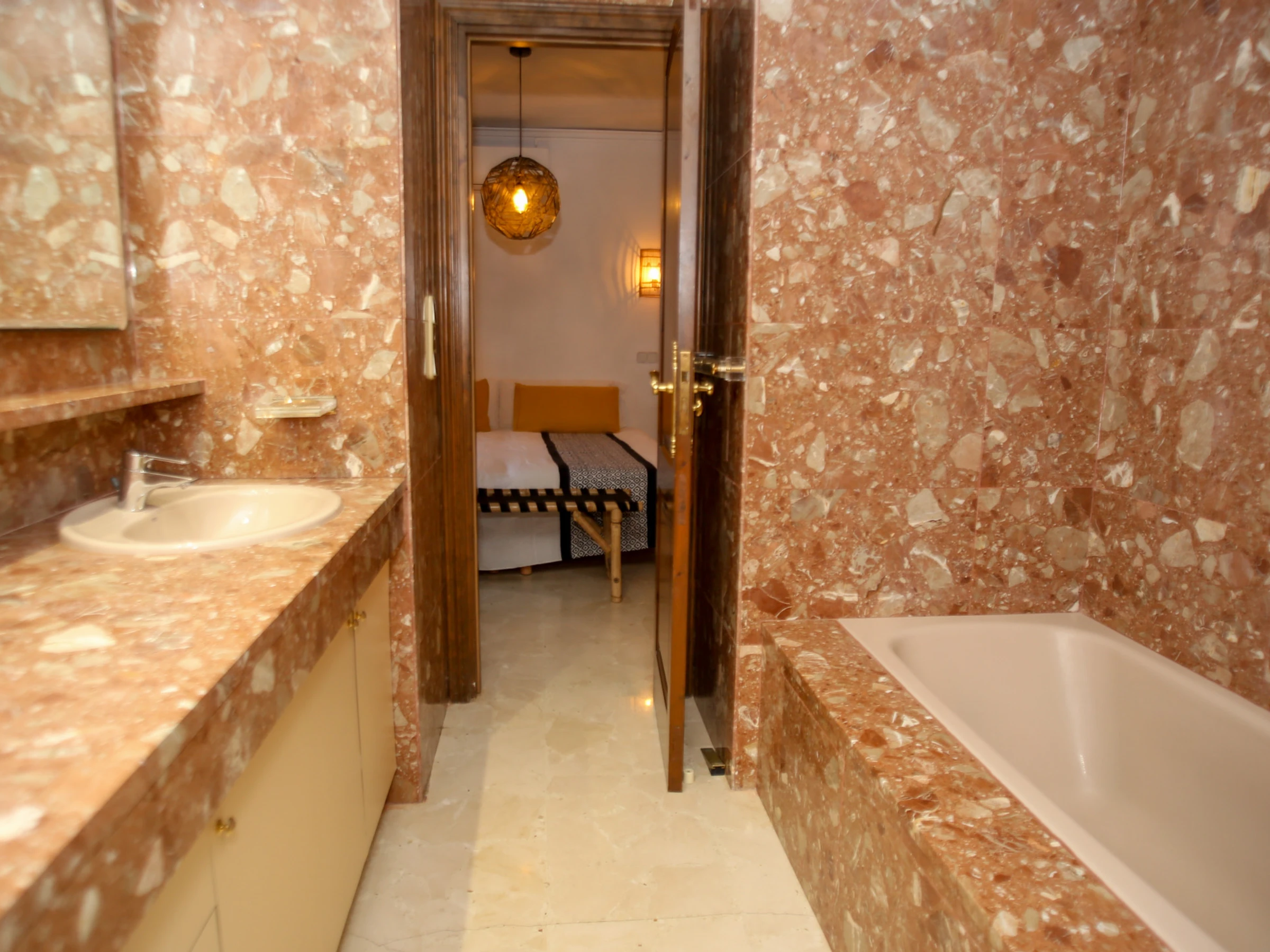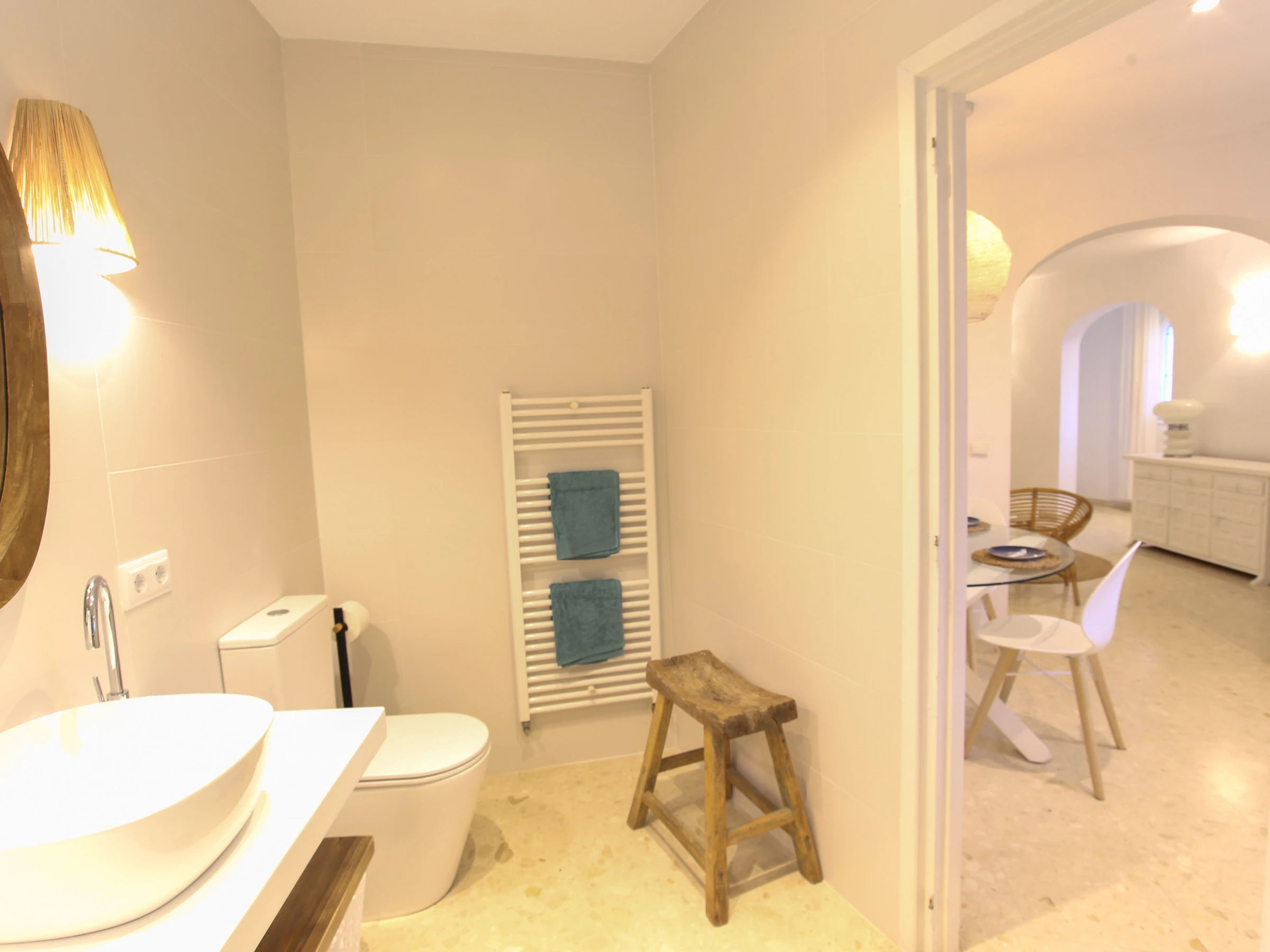 En el pasillo junto a las habitaciones podemos encontrar un cuarto de baño recientemente reformado.