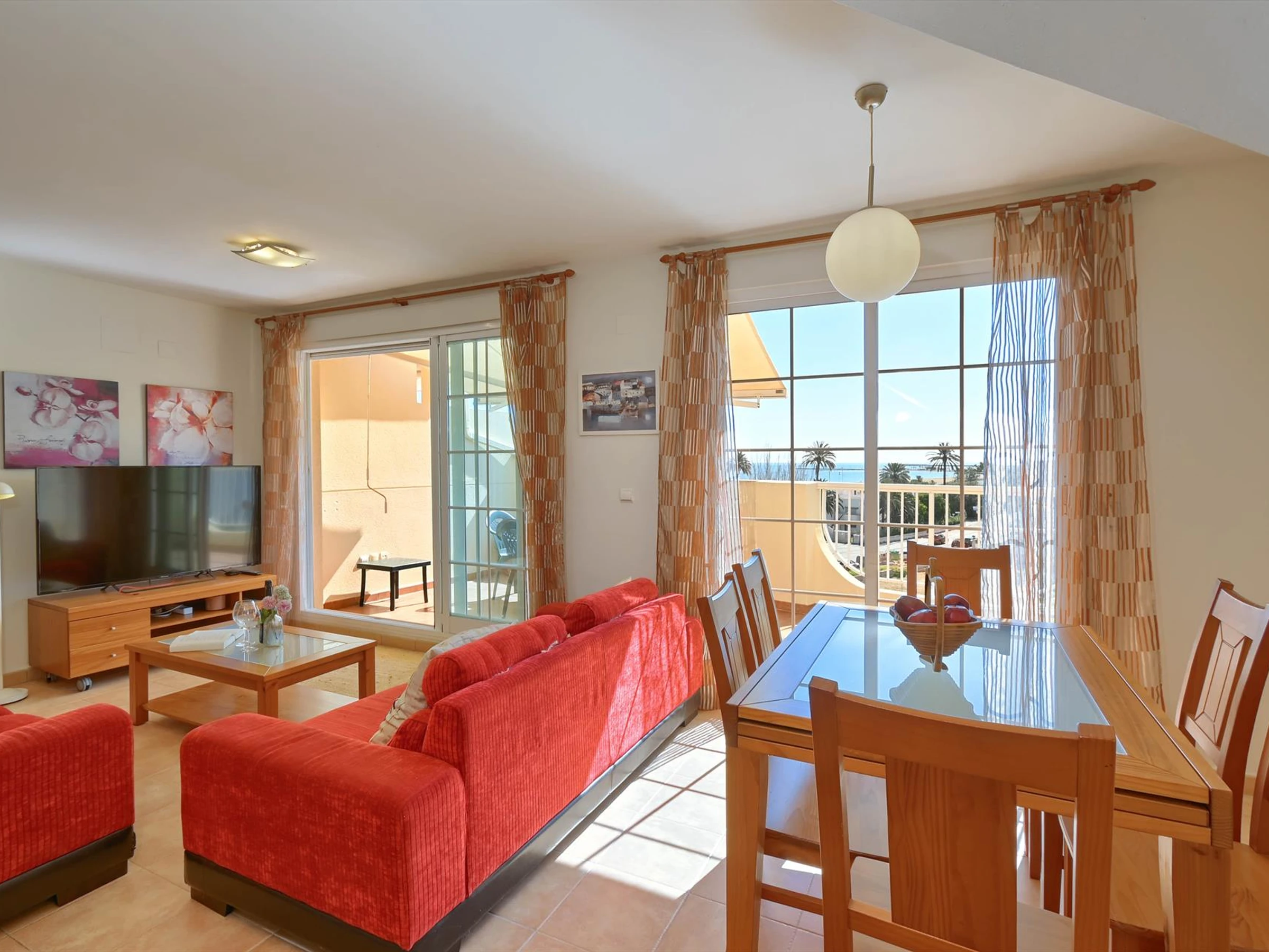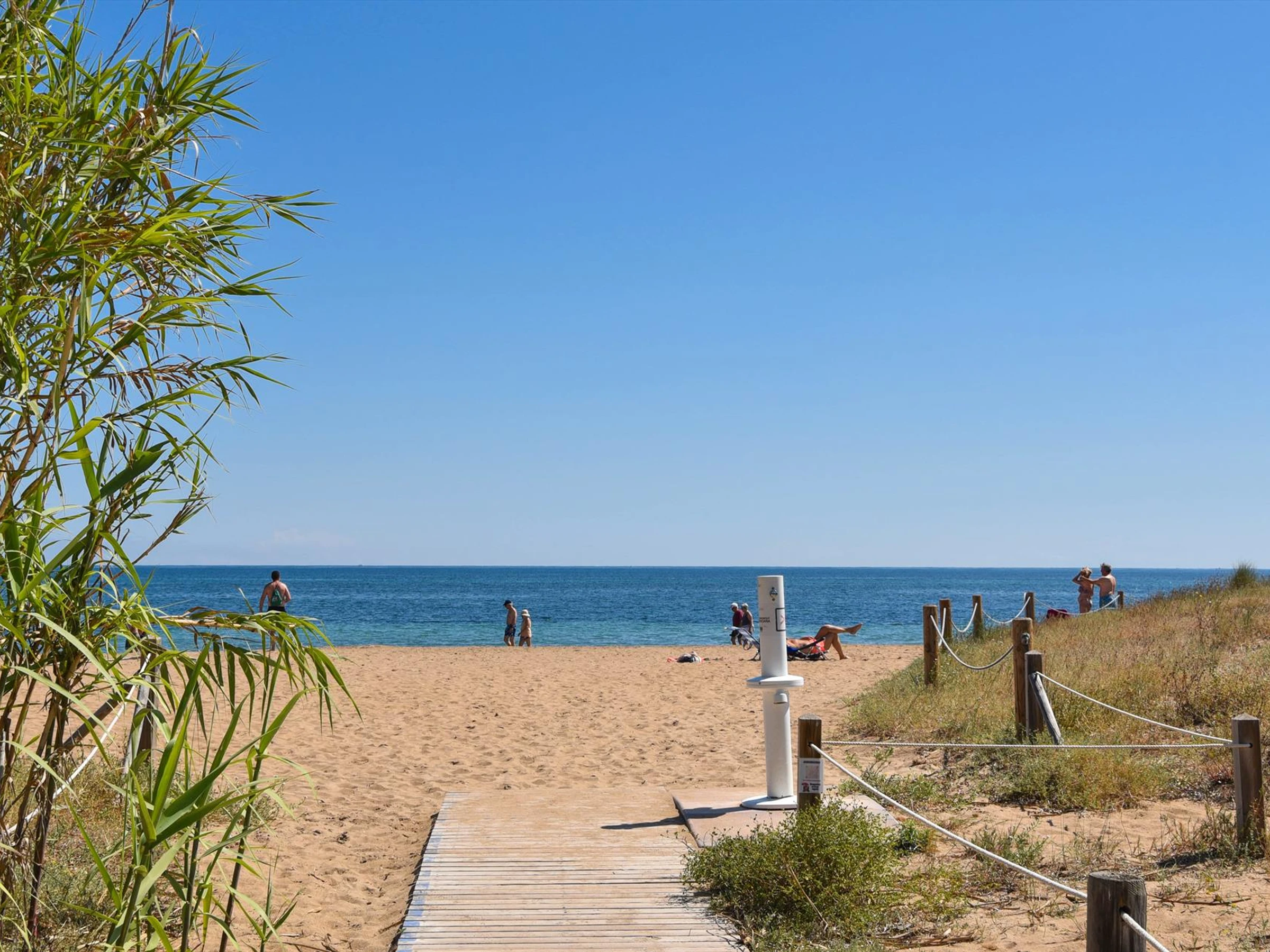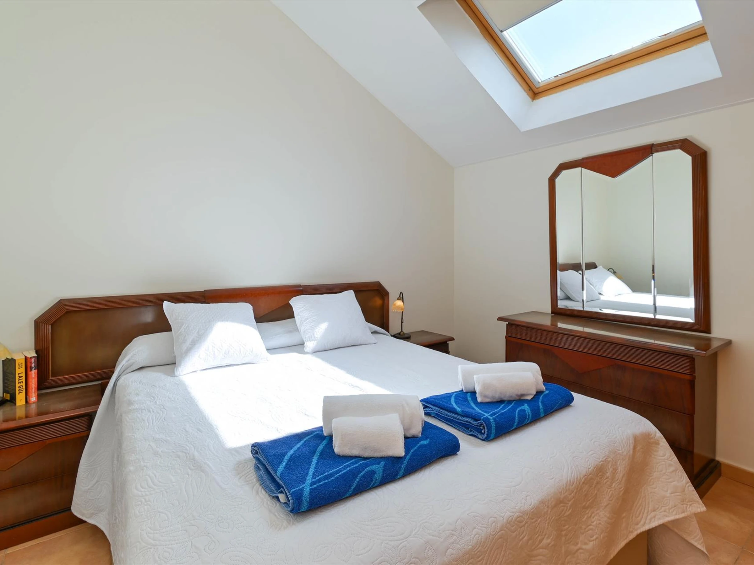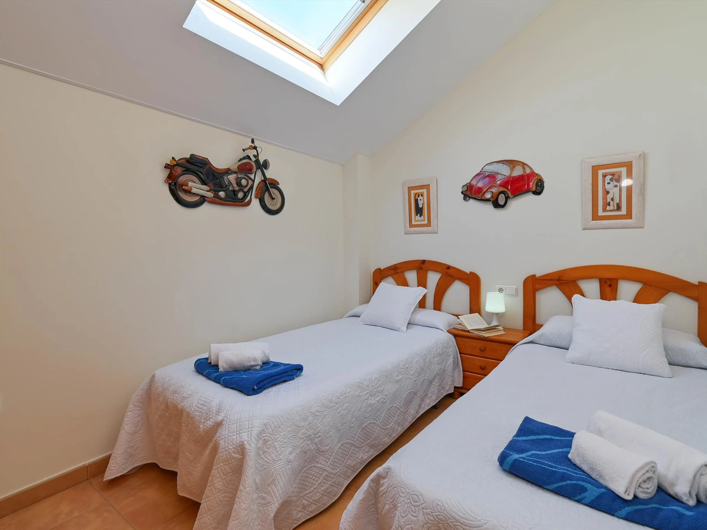 El ático tiene 3 dormitorios y 2 cuartos de baño, distribuidos en 2 plantas. El alojamiento ofrece privacidad y un jardín comunitario con césped y árboles. El confort y la cercanía de la playa, sitios para salir, actividades deportivas, lugares para ir de compras, lugares de interés y cultura hacen de este apartamento un alojamiento apropiado para pasar sus vacaciones en España con su familia o sus amigos.