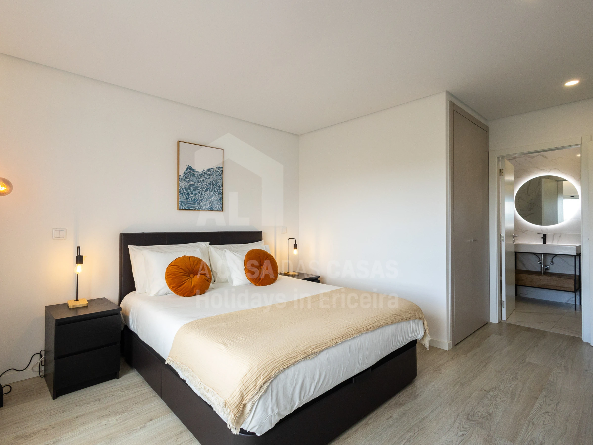 Apartamento con terraza ubicado en Ericeira, con 2 habitaciones y capacidad para 6 personas. Este apartamento de 105 m² se encuentra a unos 1 km de los supermercados y 1,5 km de las playas. Cuenta con una sala con sofá (para 2 personas dormir) y TV, una suite con cama de matrimonio y ducha, una habitación con dos camas individuales (1 de ellas cajón), un baño con ducha y cocina totalmente equipada con frigorífico, microondas, horno, congelador, lavadora, lavavajillas, vajilla, cubiertos, utensilios de cocina, cafetera, tostadora y jarra eléctrica. También dispone de una agradable terraza, plancha, acceso a internet (wifi), secador de pelo y calefacción con radiadores eléctricos.