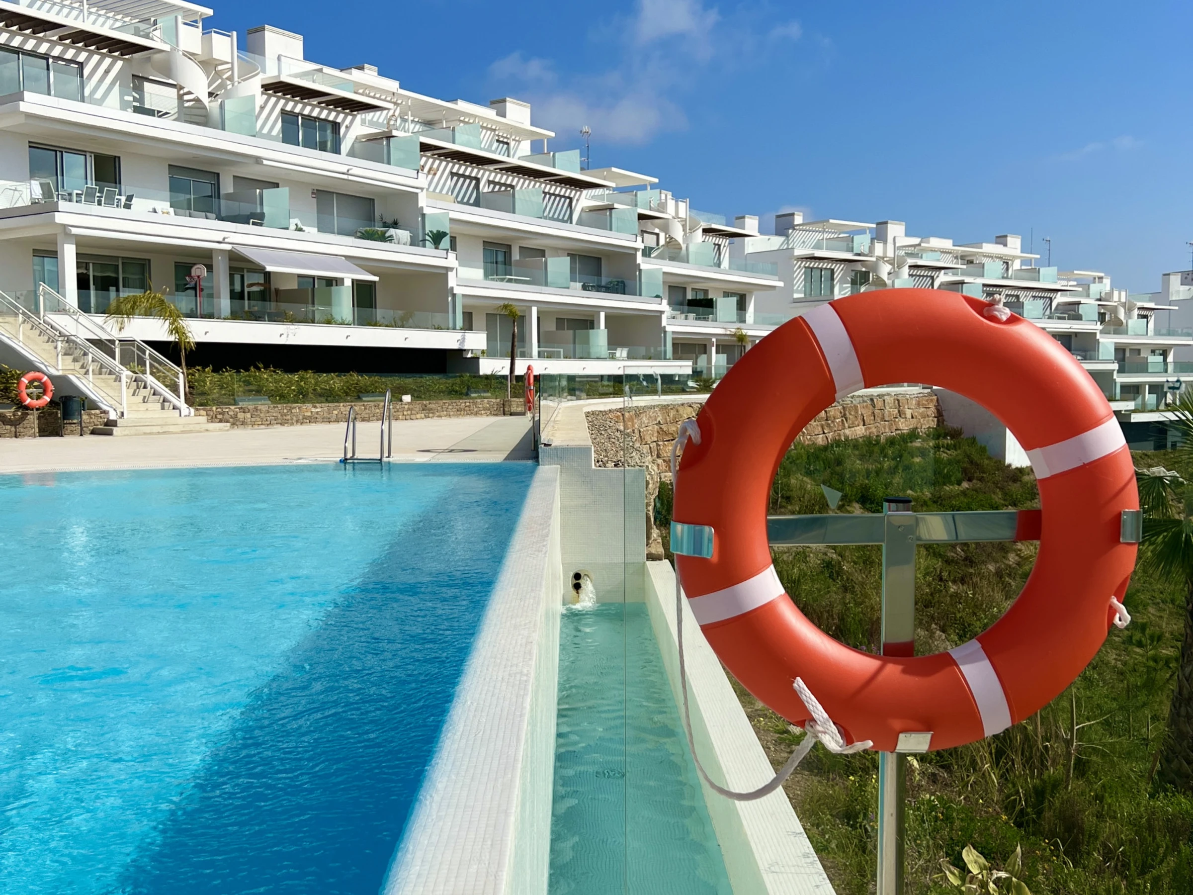 Esta exclusiva residencia, de nueva construcción, tiene un diseño moderno y elegante. Encontrarás una enorme piscina exterior con efecto playa, rodeada de una gran zona soleada para trabajar en tu bronceado, además de preciosos jardines. El apartamento ofrece tres bonitas habitaciones, dos baños, todo con acabados y muebles de alta calidad. Su zona de cocina - comedor - sala de estar completamente abierta le da un aire muy contemporáneo y tiene acceso directo a la primera terraza, con su zona de salón y gran mesa para comer, todo ello con maravillosas vistas a la bahía de Estepona. Arriba, encontrarás la suite principal que cuenta con baño en-suite, vestidor y una segunda terraza privada con tumbonas para disfrutar de cada rayo de sol con total privacidad.