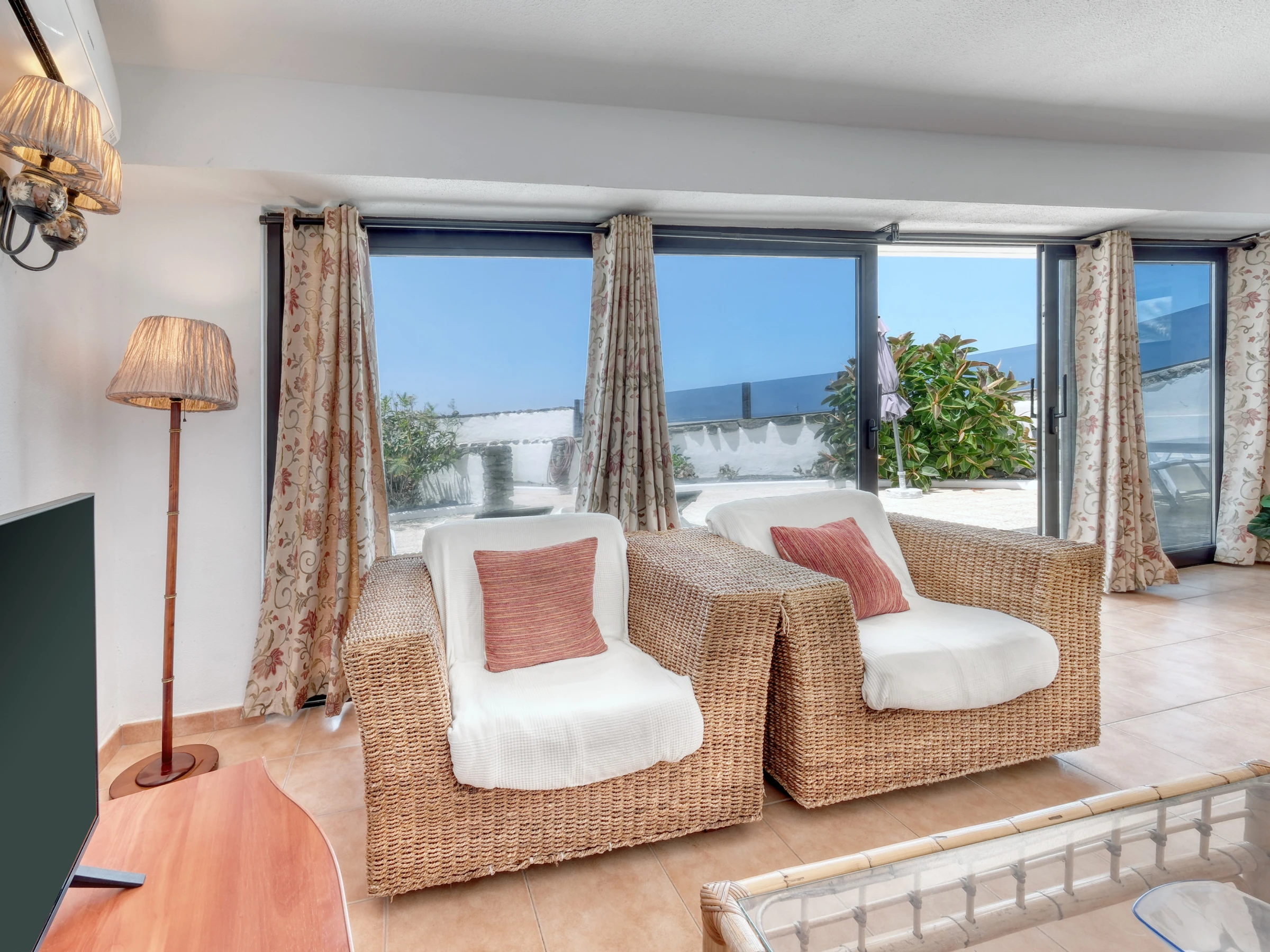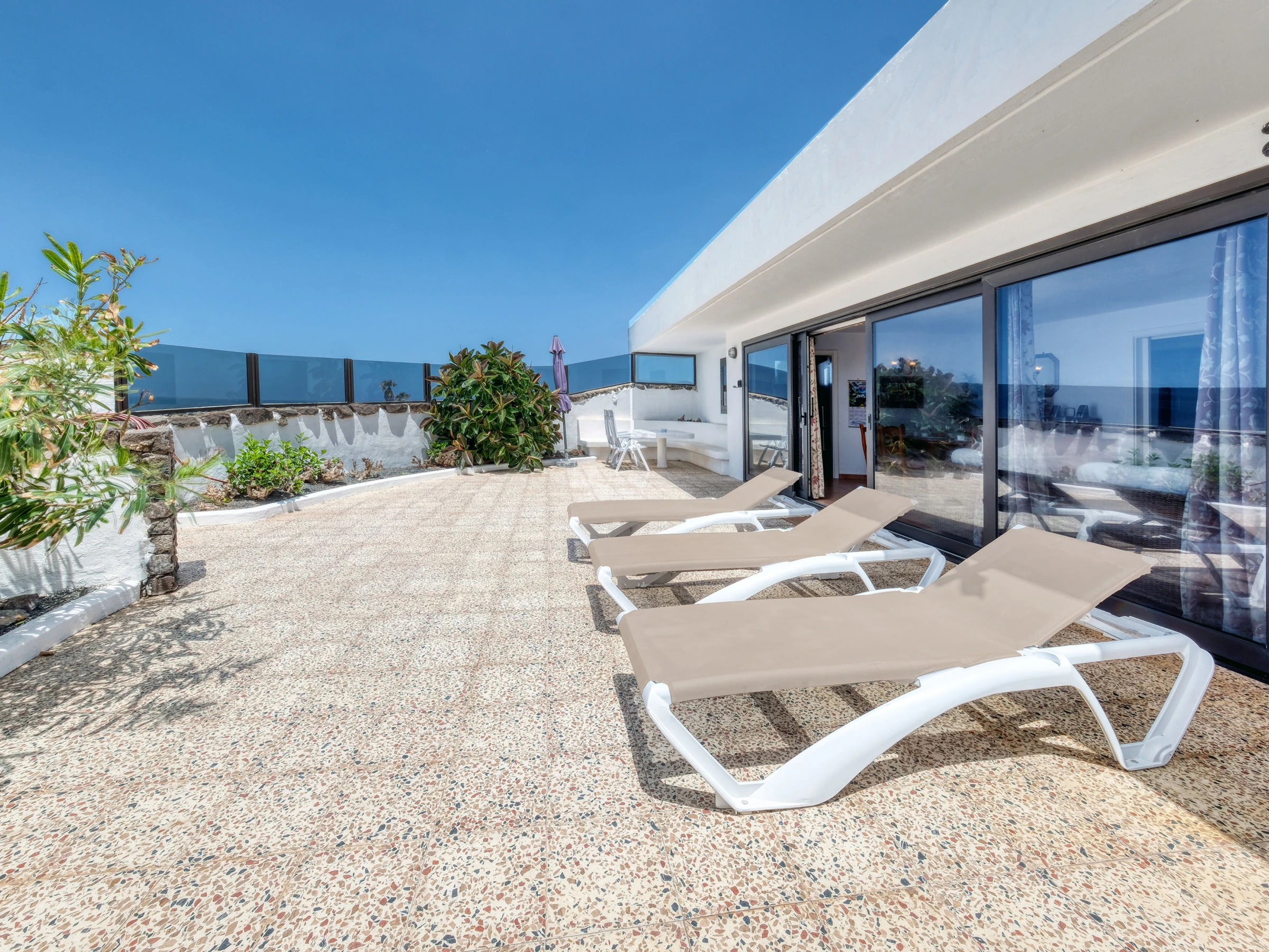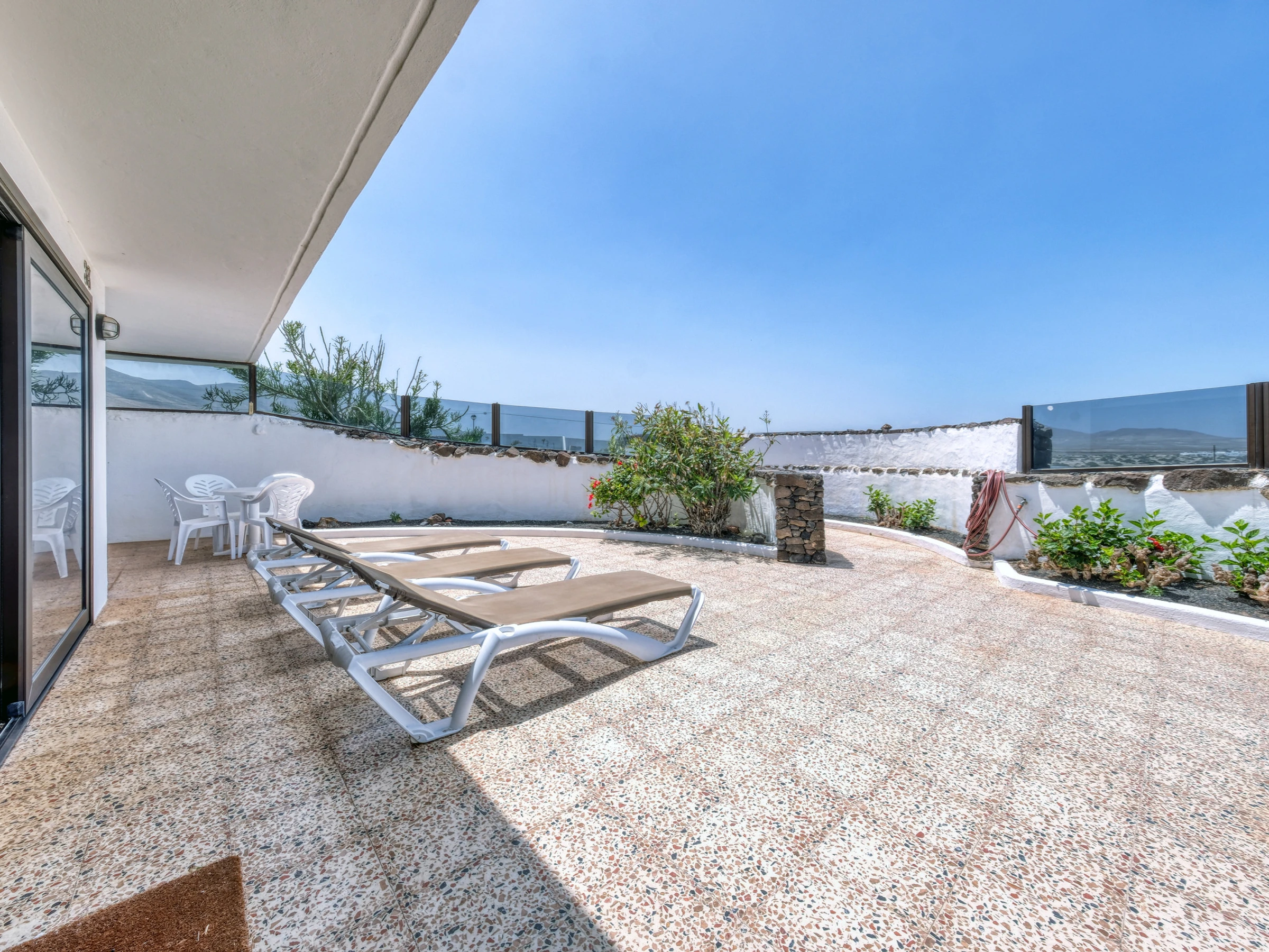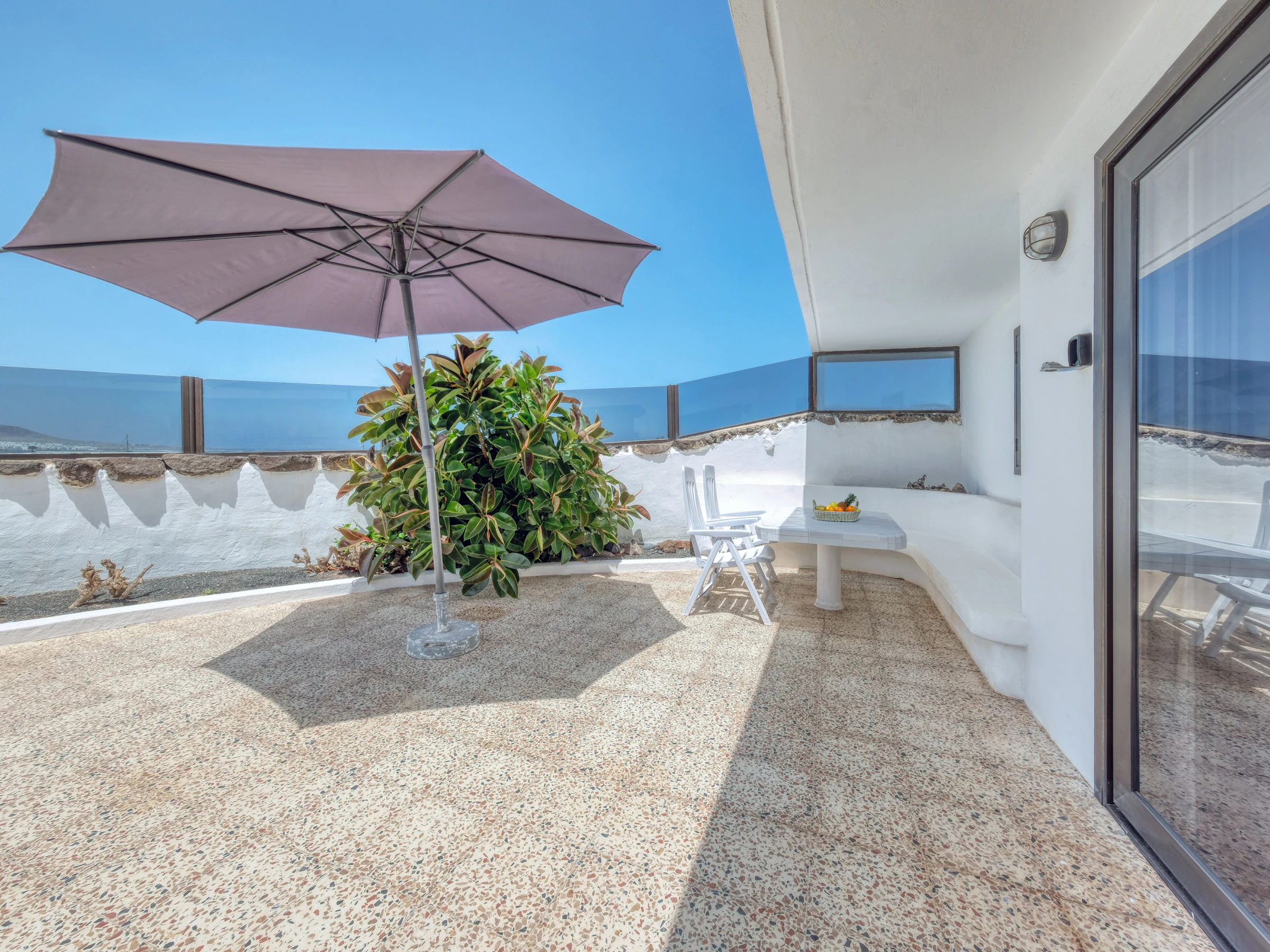 Uno de los grandes atractivos del bungalow es su agradable terraza con vistas al mar, equipada con zona de descanso y hamacas, perfecta para relajarse, disfrutar del clima privilegiado de Lanzarote o contemplar las espectaculares puestas de sol de Famara mientras se escucha el sonido del océano.