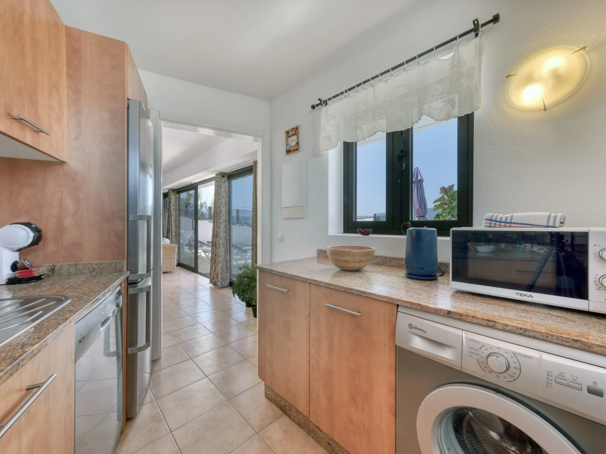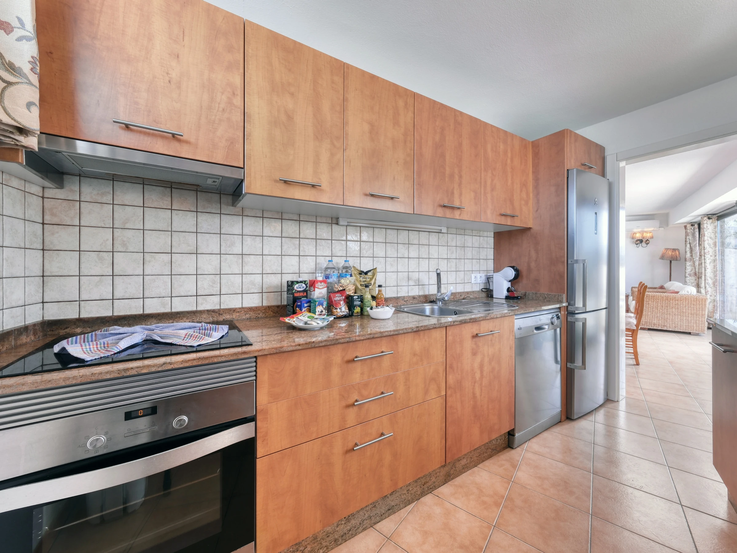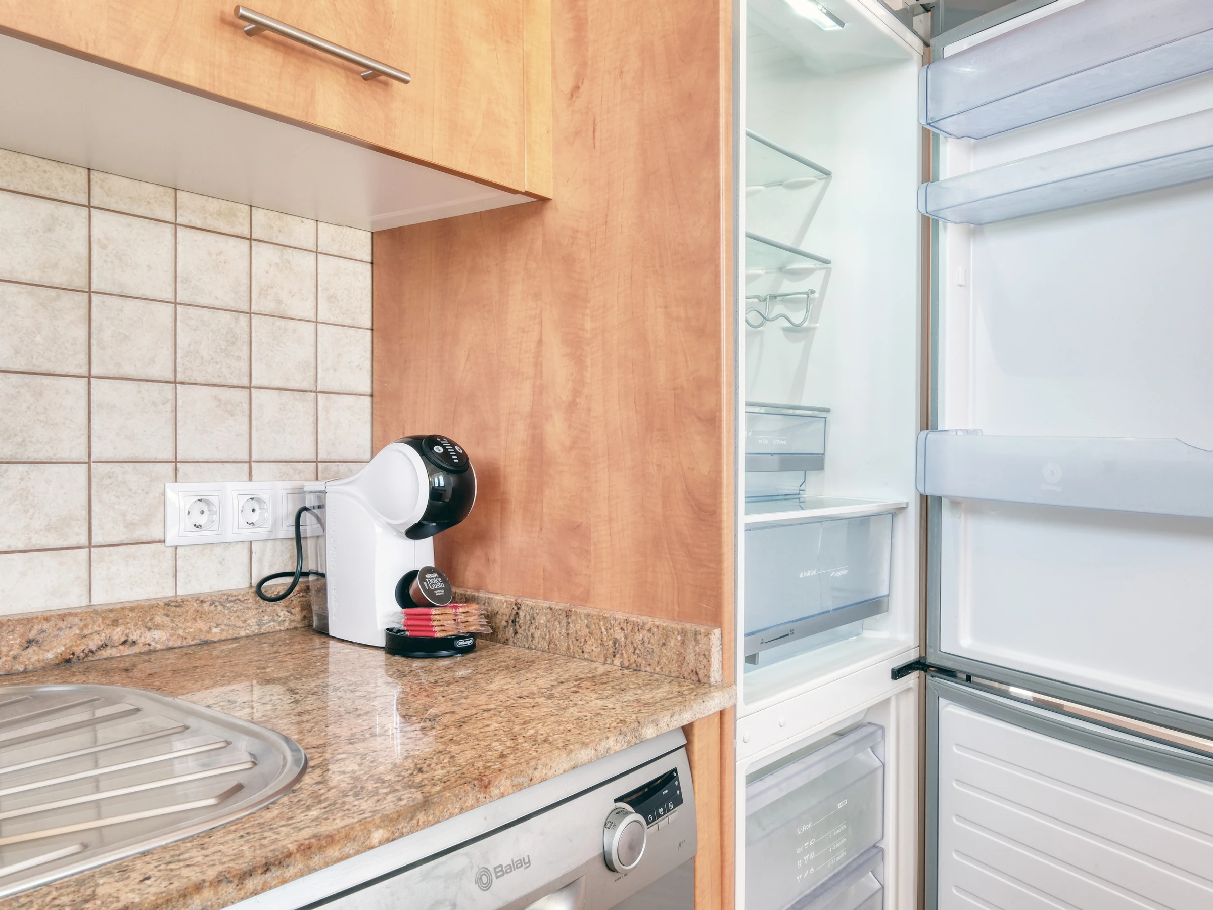La cocina independiente, totalmente reformada, está completamente equipada con electrodomésticos y pequeño menaje para una estancia cómoda y práctica, incluyendo horno, microondas, nevera, cafetera, tostadora, hervidor de agua y todo lo necesario para disfrutar del alojamiento con total autonomía.
