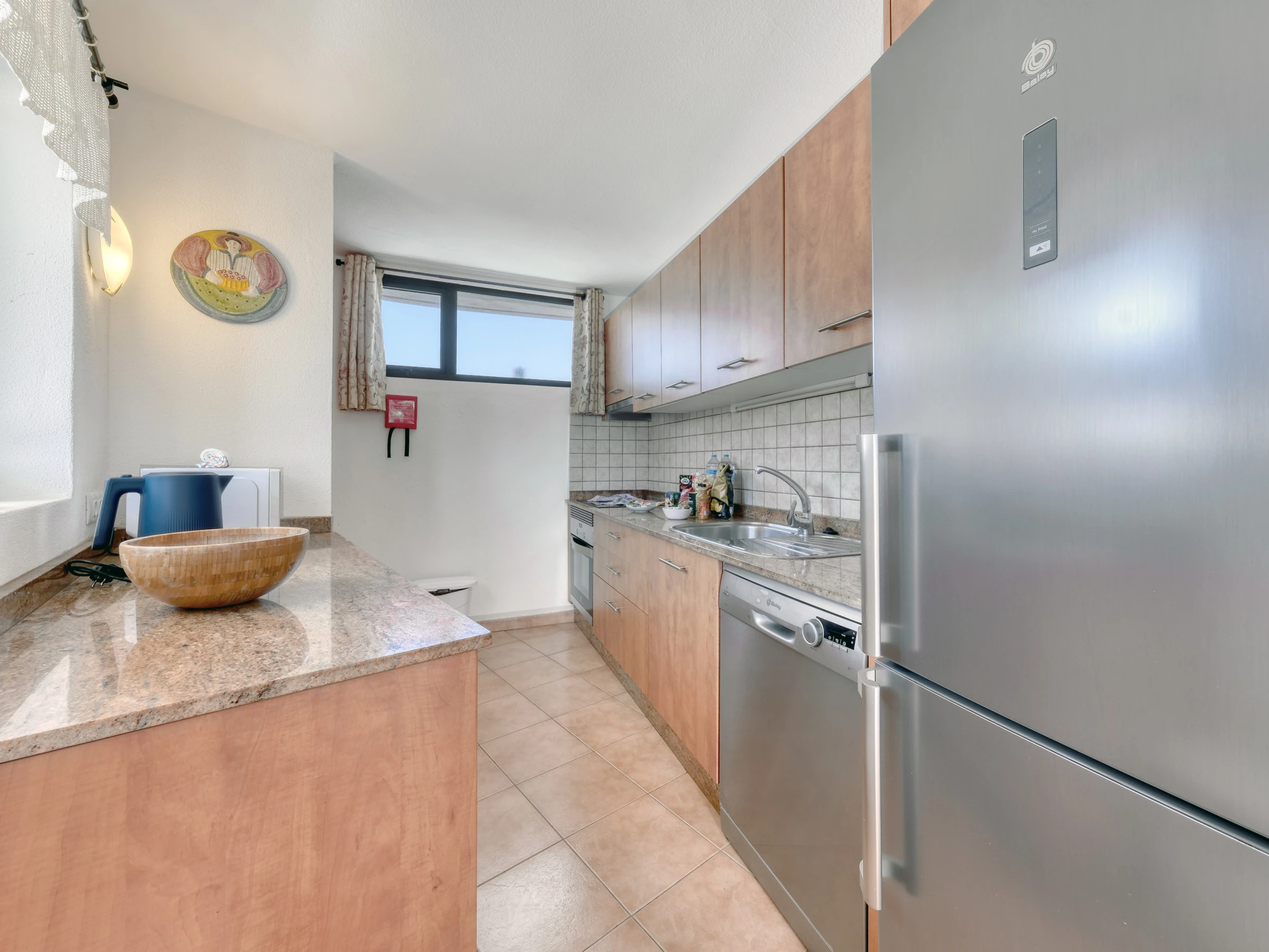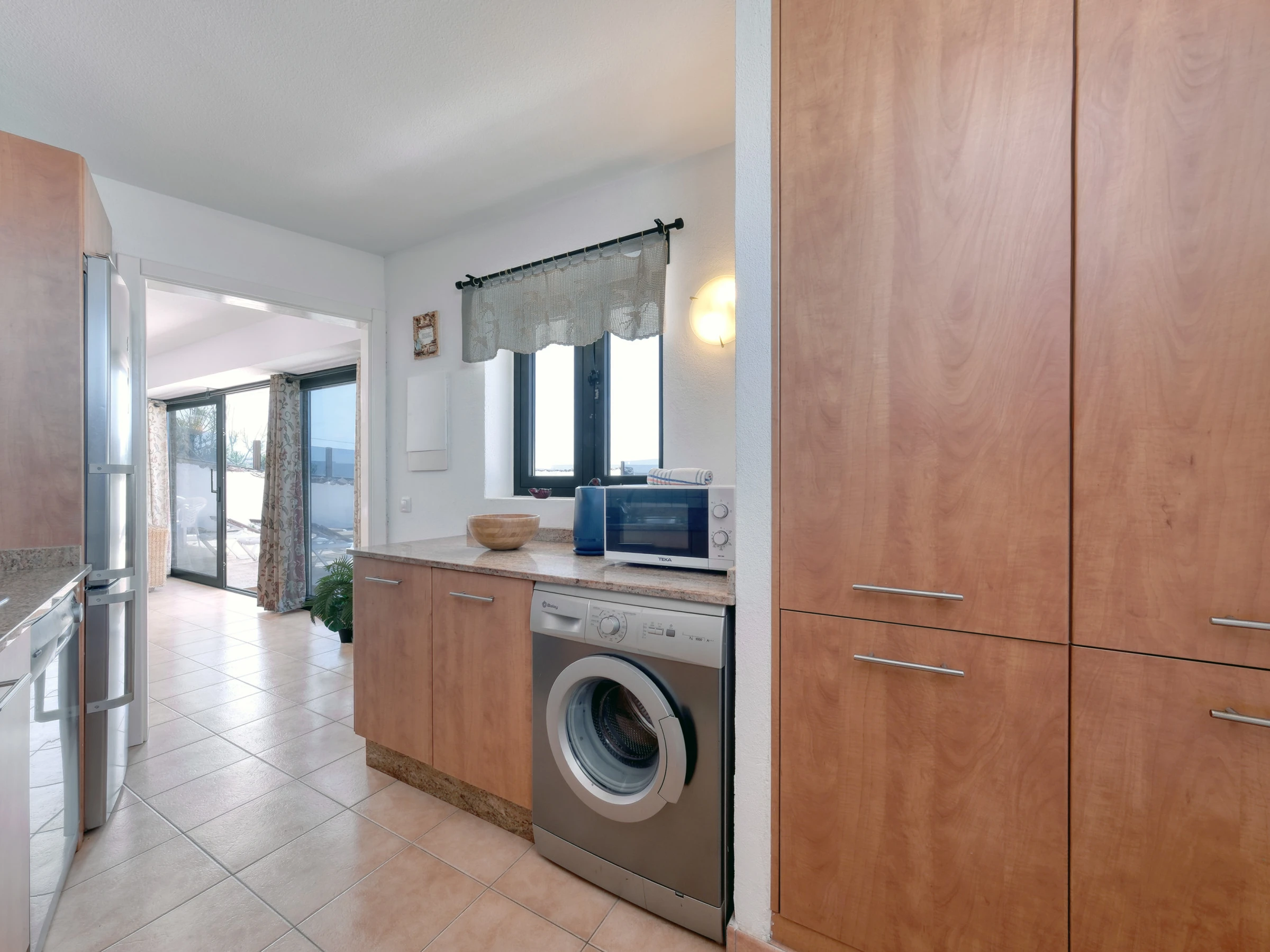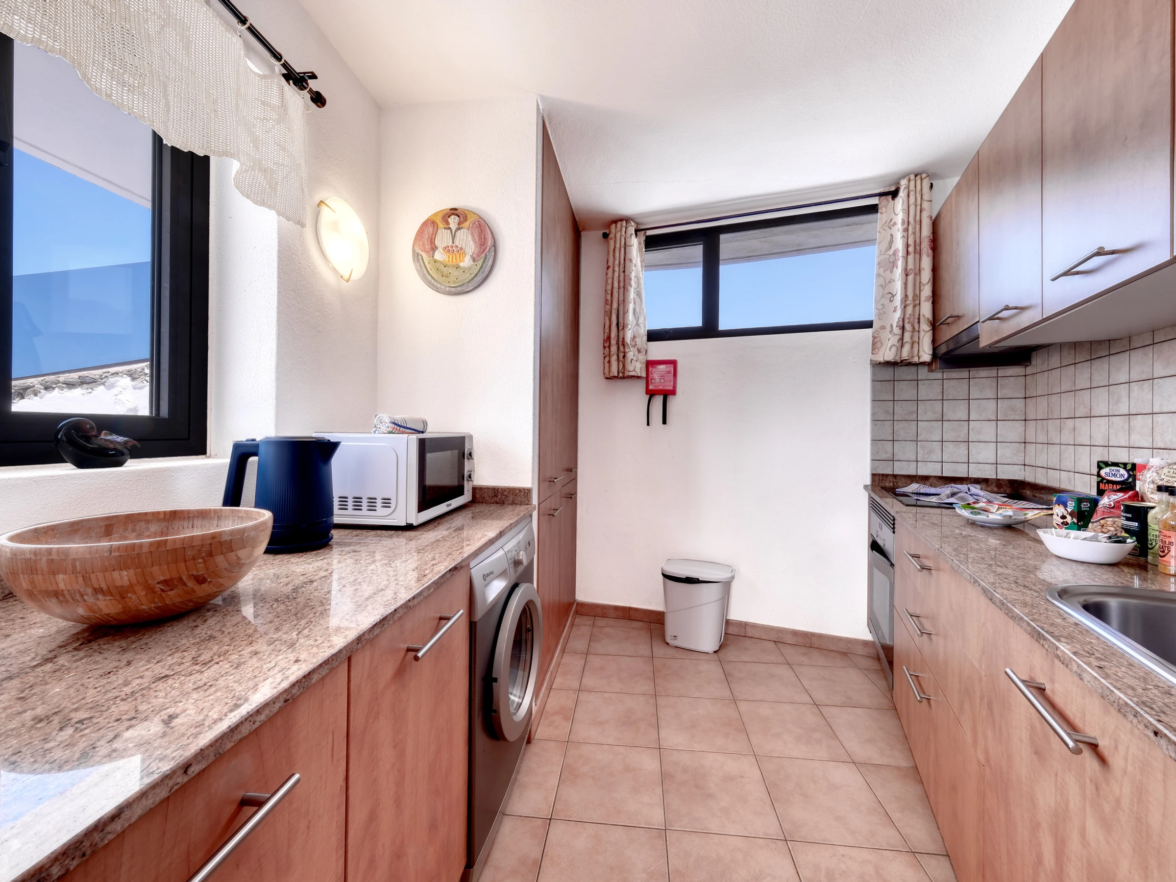 La cocina independiente, totalmente reformada, está completamente equipada con electrodomésticos y pequeño menaje para una estancia cómoda y práctica, incluyendo horno, microondas, nevera, cafetera, tostadora, hervidor de agua y todo lo necesario para disfrutar del alojamiento con total autonomía.