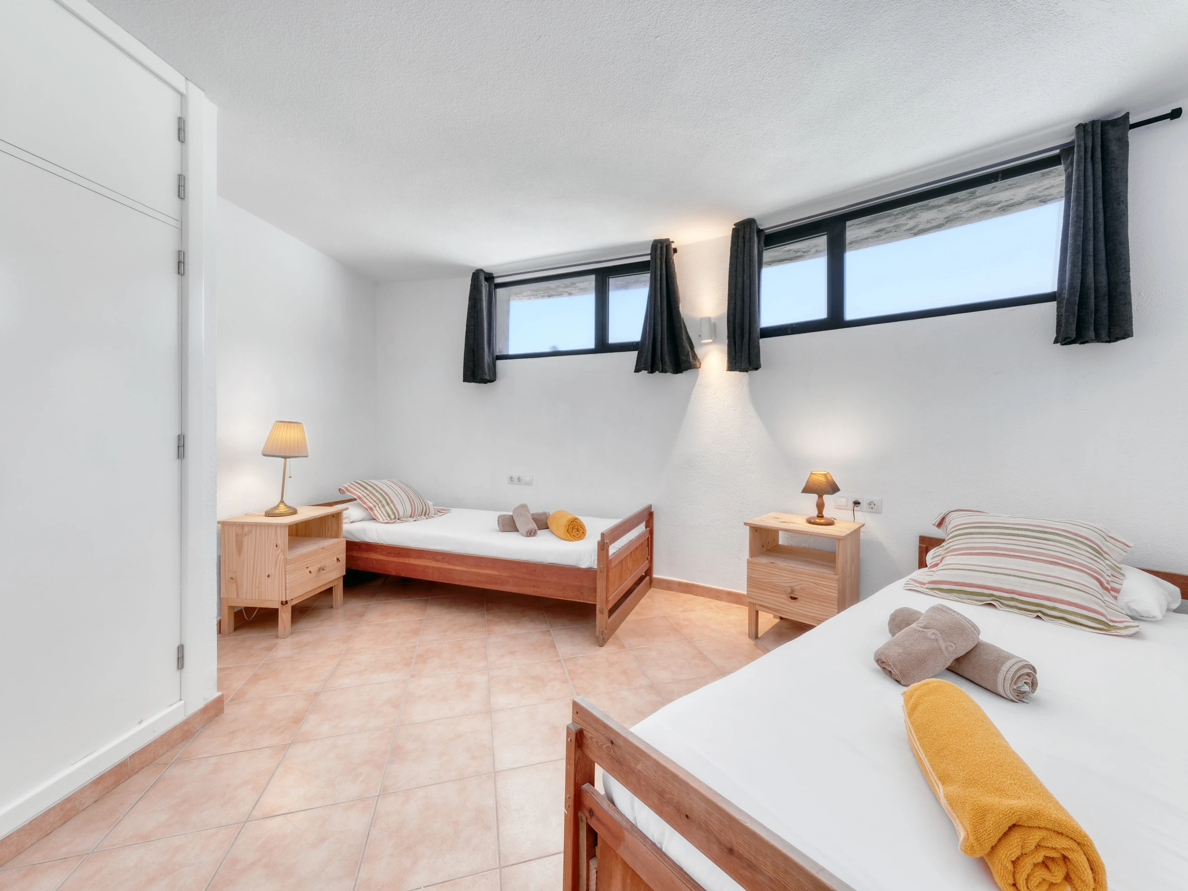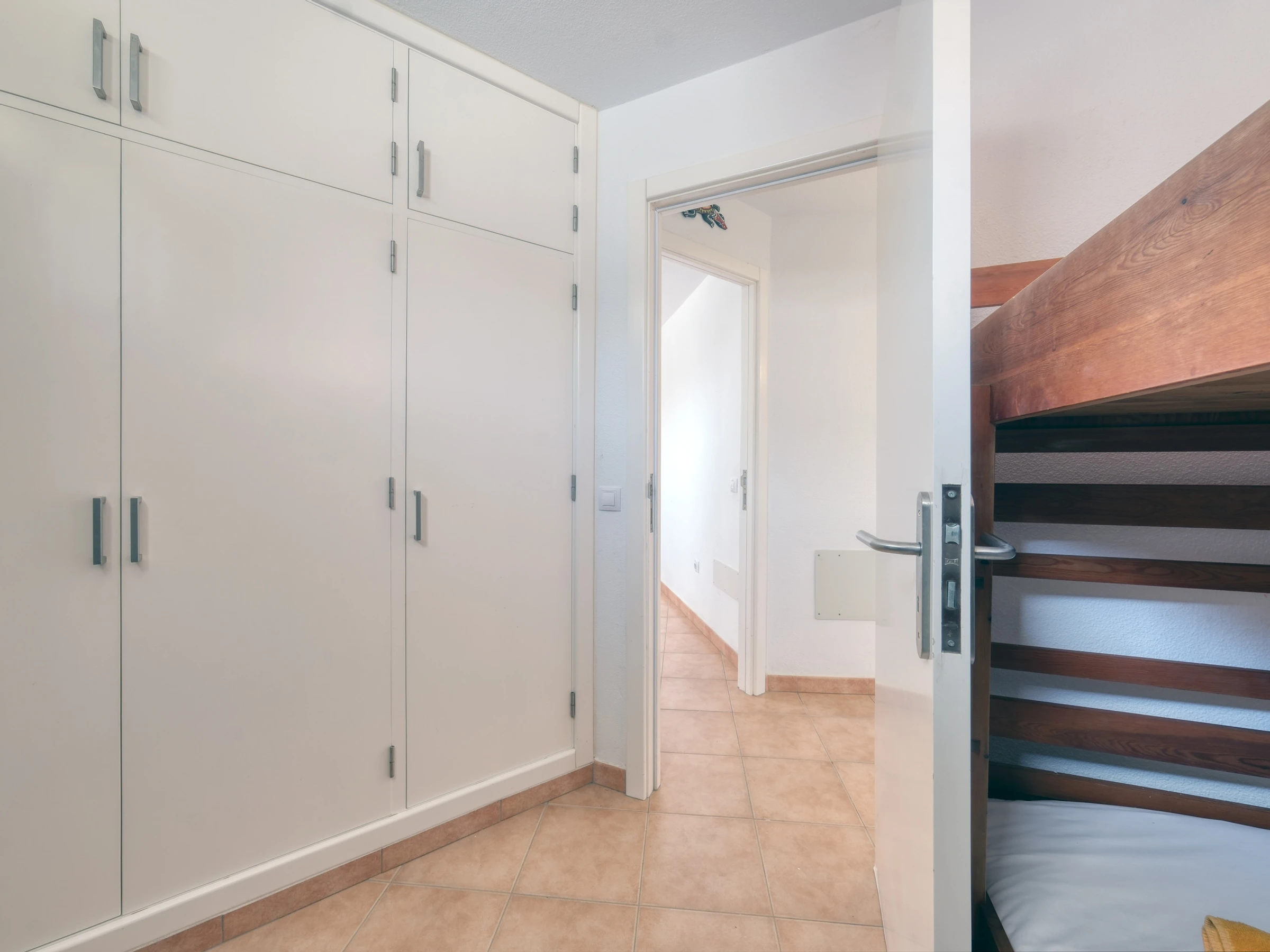 La vivienda cuenta con tres habitaciones cuidadosamente decoradas, pensadas para garantizar descanso y tranquilidad. Una habitación dispone de cama doble, otra cuenta con dos camas individuales y la tercera habitación cuenta con una litera, aumentado la capacidad a 6 personas. Todas ofrecen espacios luminosos y funcionales con armarios y una decoración actual que combina comodidad y sencillez.