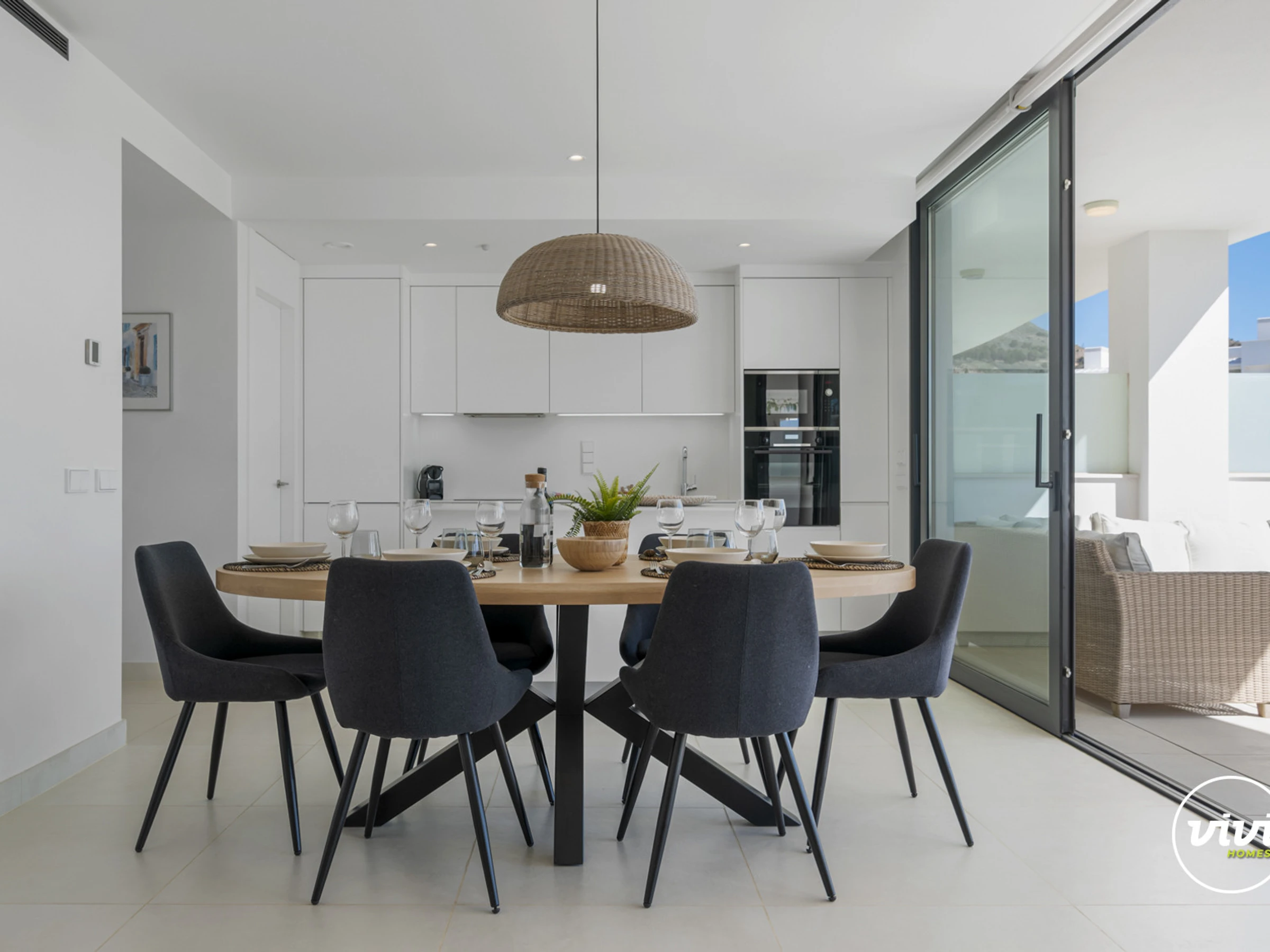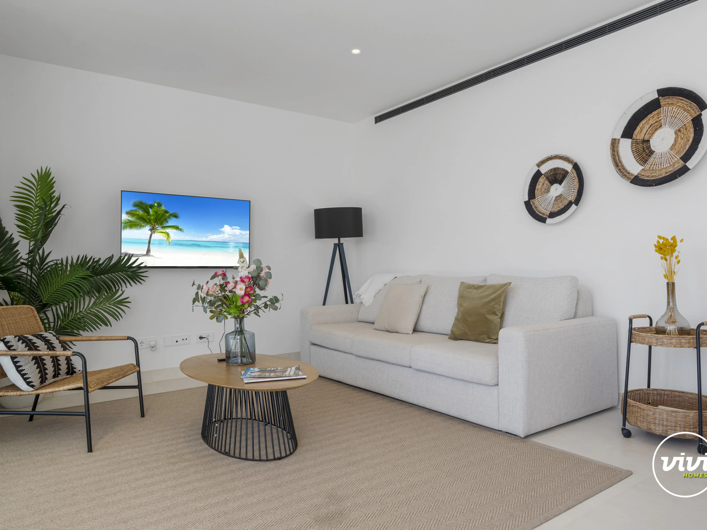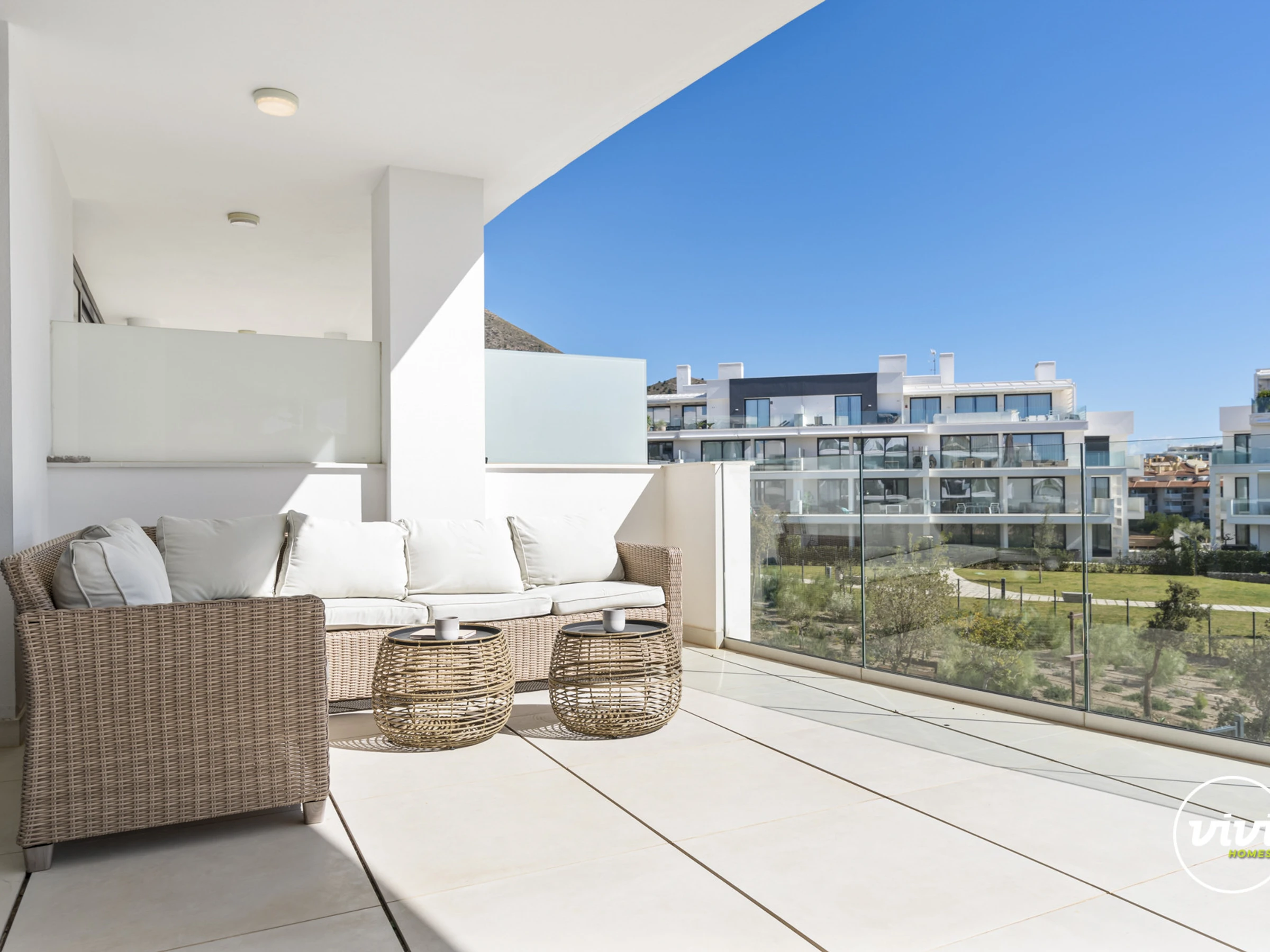 El apartamento tiene grandes ventanas, permitiendo que entre mucha luz natural. La sala de estar es muy moderna y la cocina también, está equipada con todos los utensilios de cocina que necesitas para cocinar tus comidas favoritas. Disfruta de la Costa del Sol con un espresso matutino desde el hermoso balcón cubierto.