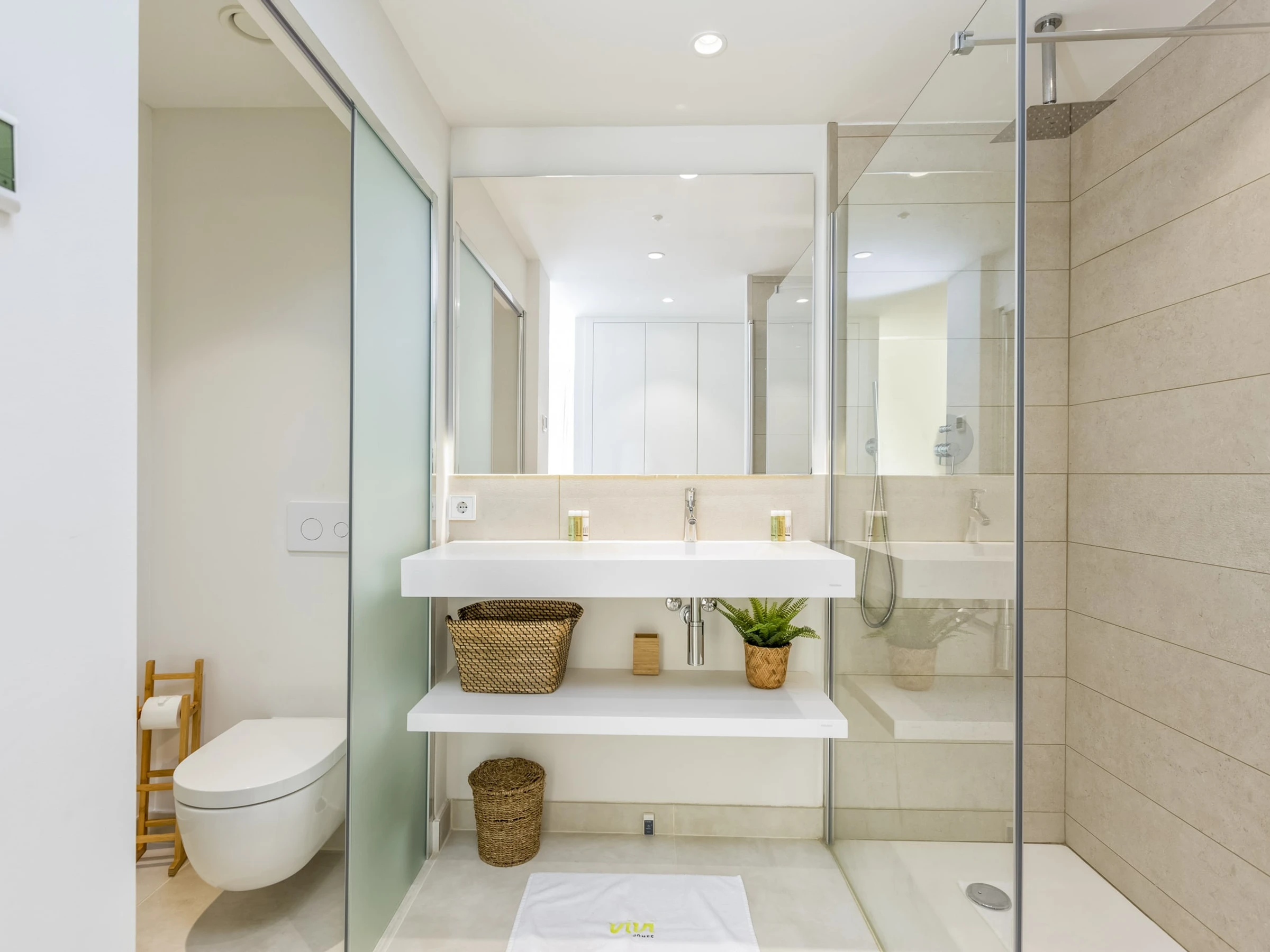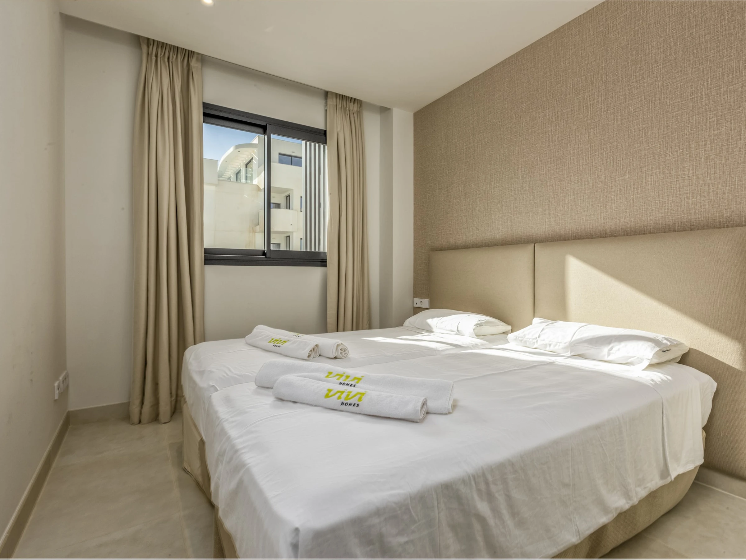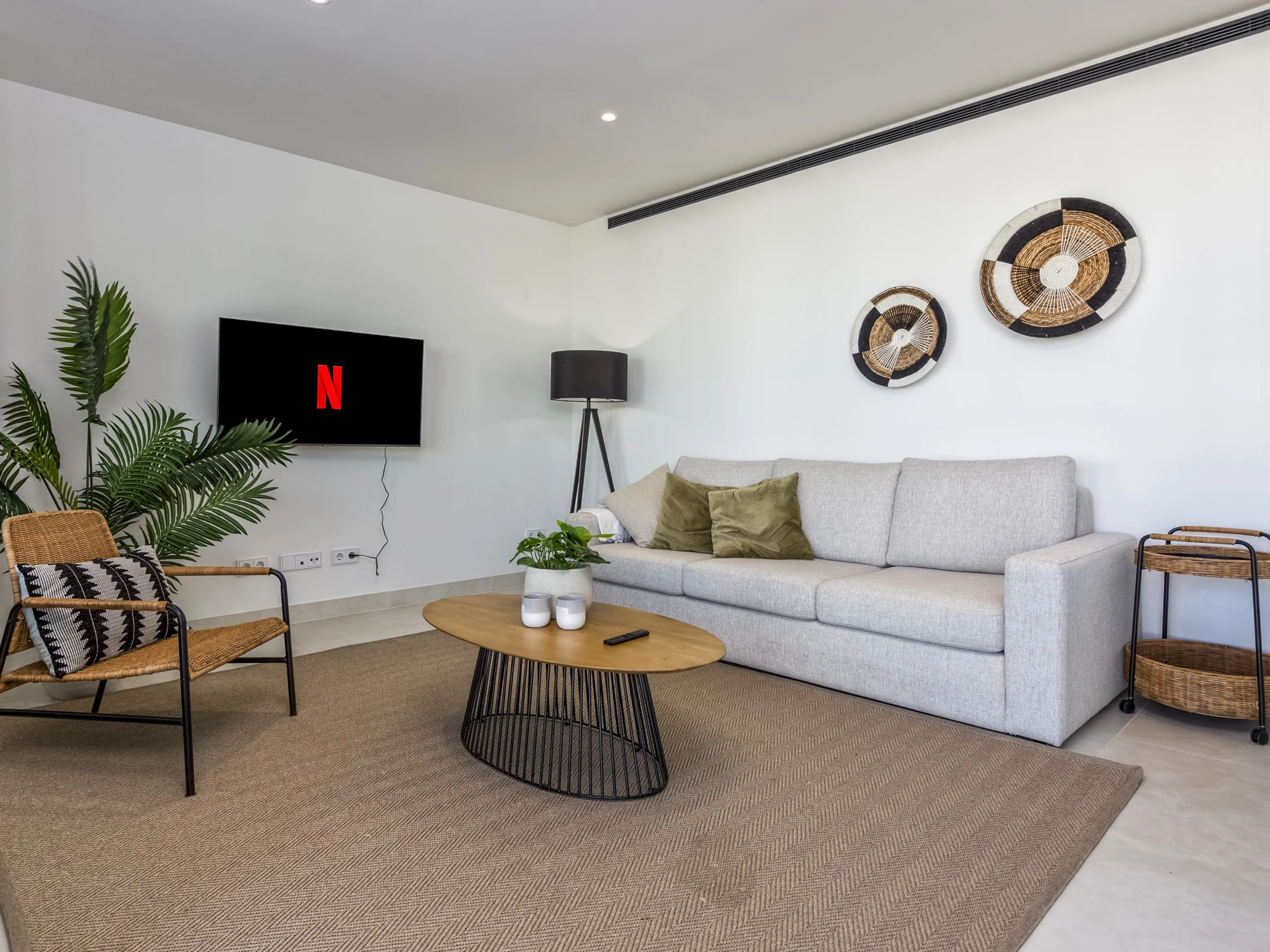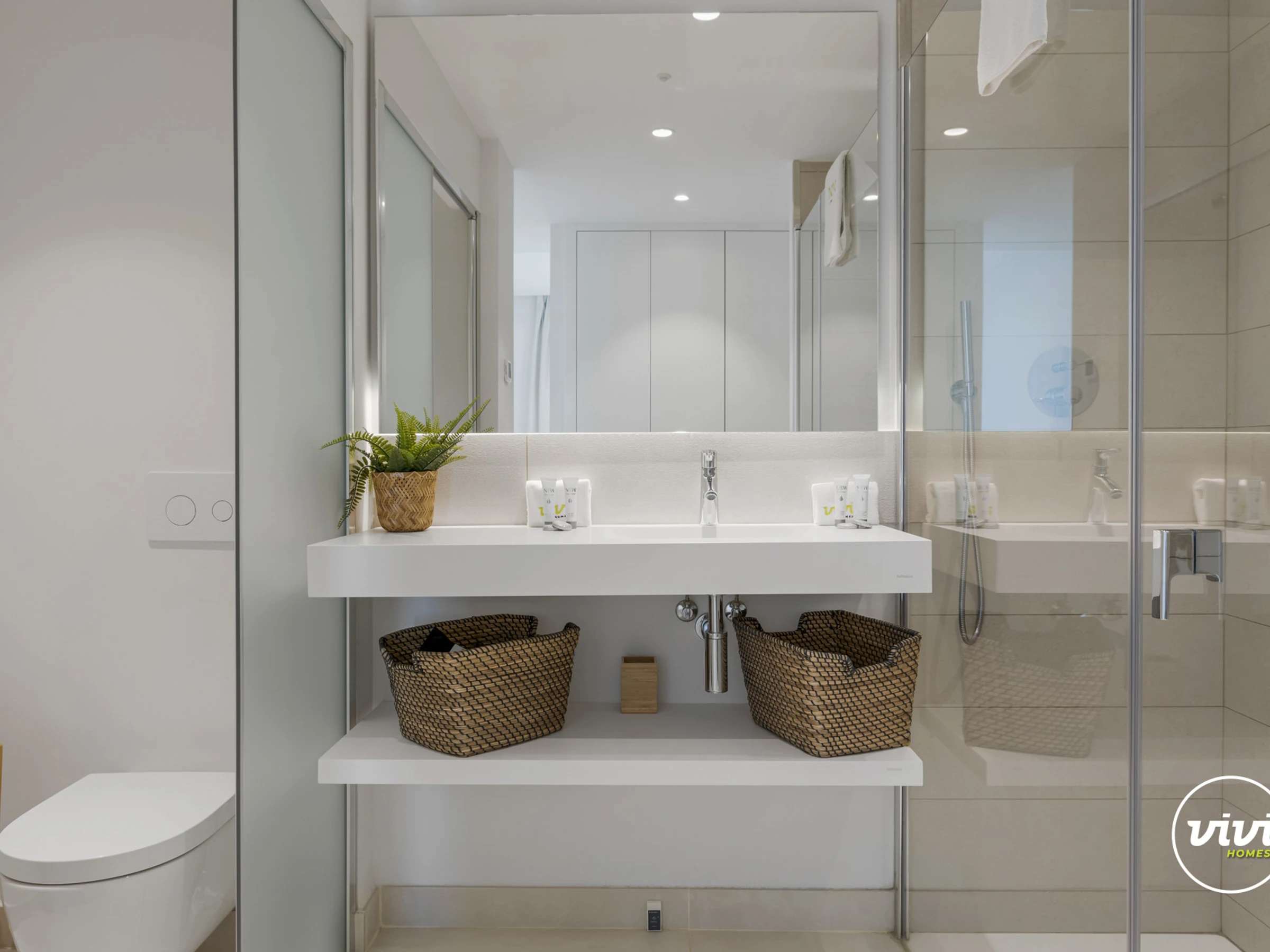 El apartamento tiene grandes ventanas, permitiendo que entre mucha luz natural. La sala de estar es muy moderna y la cocina también, está equipada con todos los utensilios de cocina que necesitas para cocinar tus comidas favoritas. Disfruta de la Costa del Sol con un espresso matutino desde el hermoso balcón cubierto.