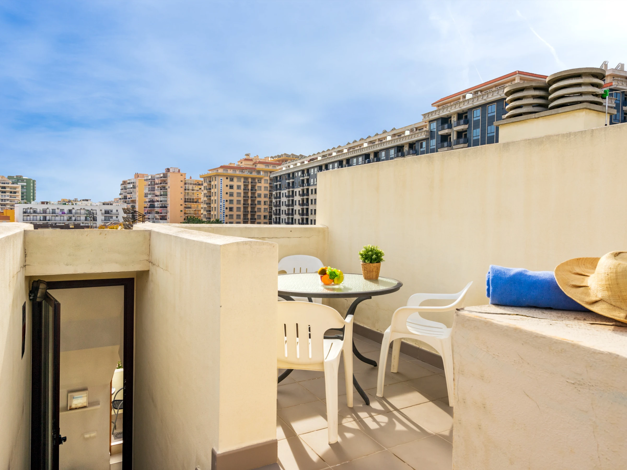 The floor has 2 amazing patios. A cozy balcony gives you a lovely view of Fuengirola, and a magnificent roof terrace that invites you to a wonderful view of the magic mountains and the [hidden] the rooftop terrace you can enjoy the sun from morning to evening.