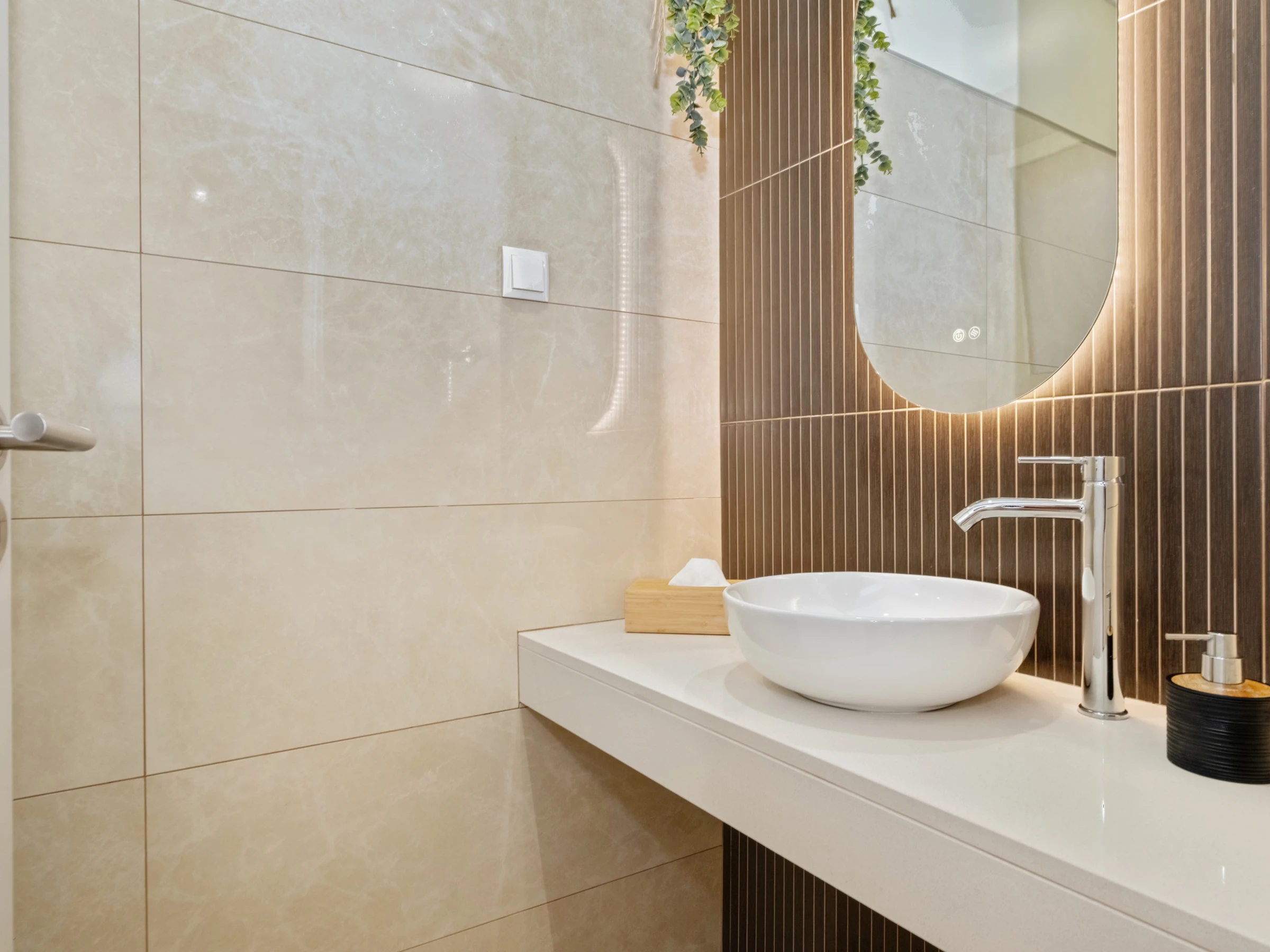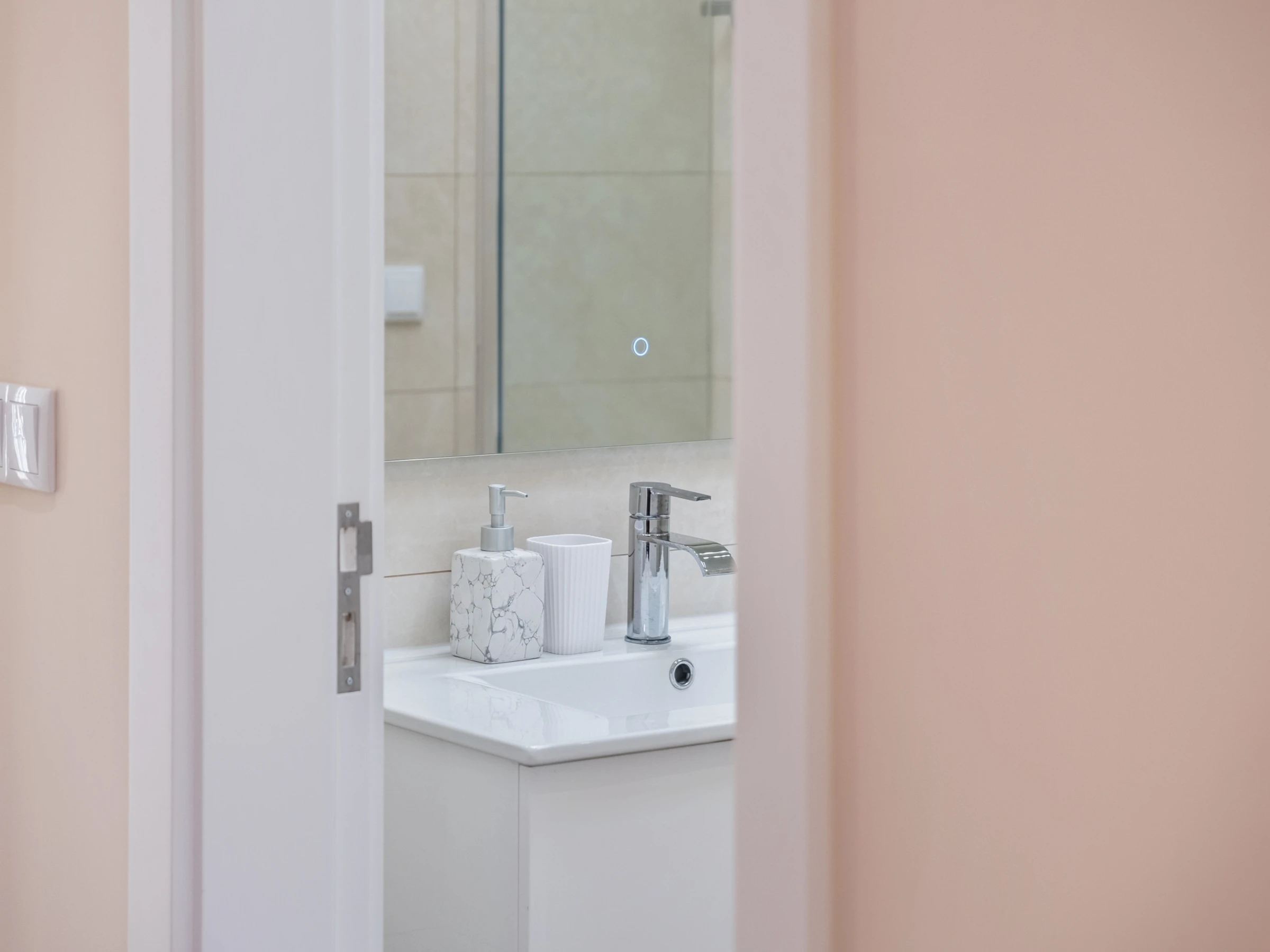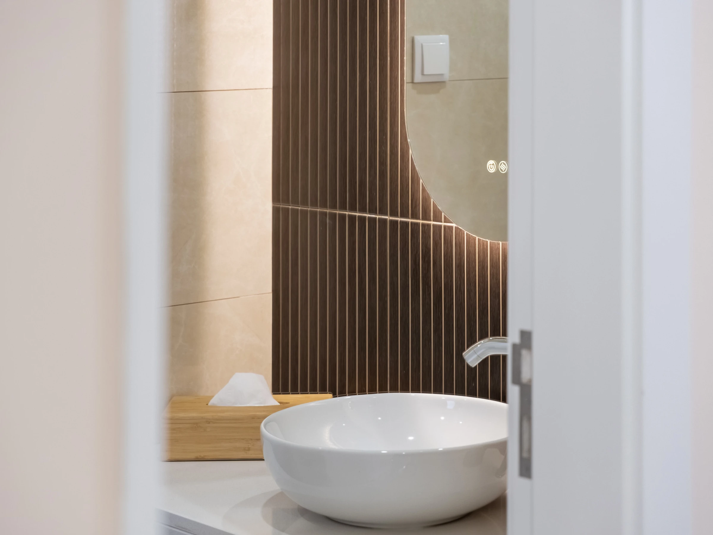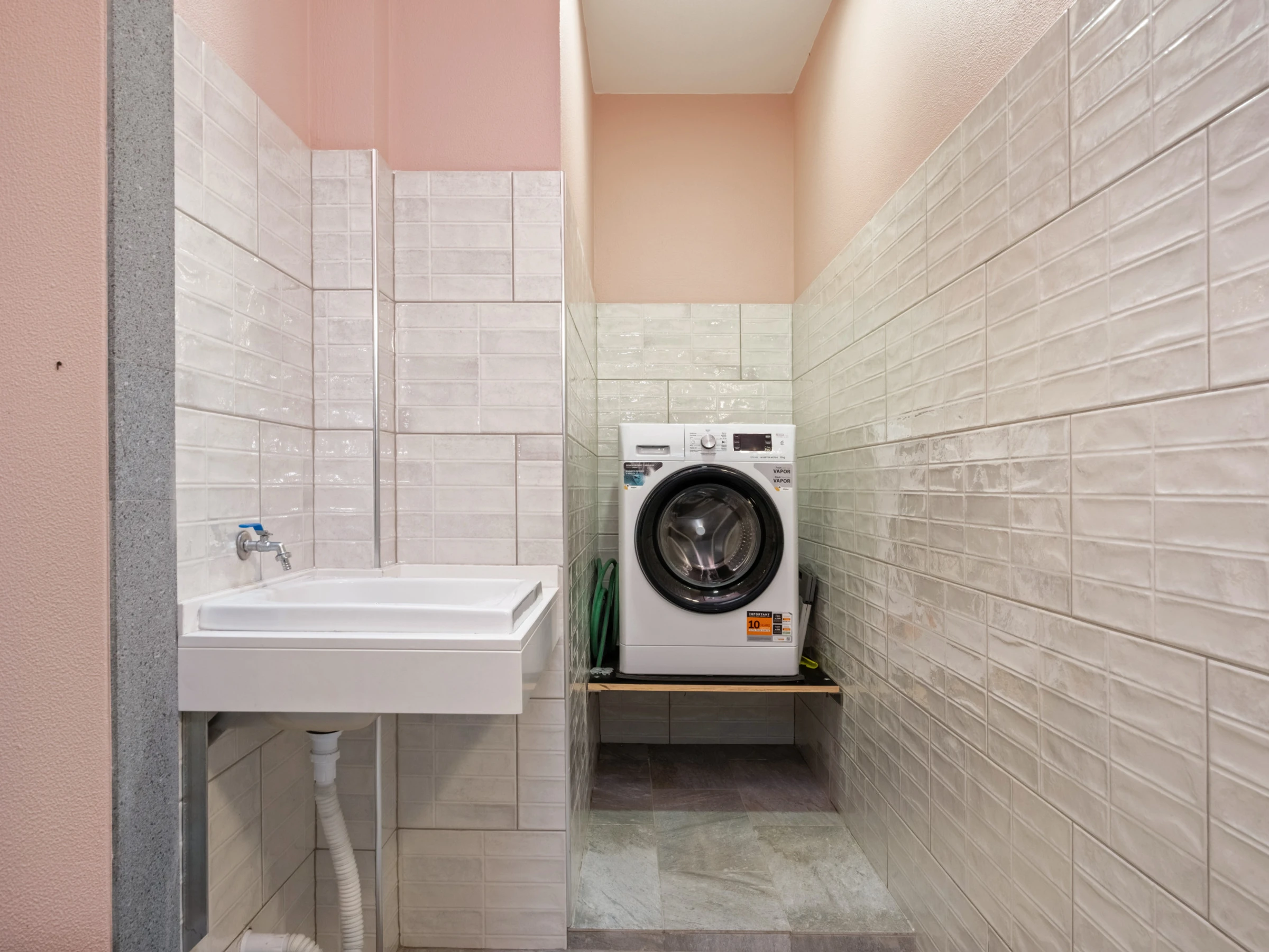 En la planta inferior también se encuentra un baño de servicio, equipado con inodoro y en la zona exterior la lavadora, un valor añadido para quien quiere viajar con equipaje más ligero y disfrutar de mayor comodidad durante la estancia.