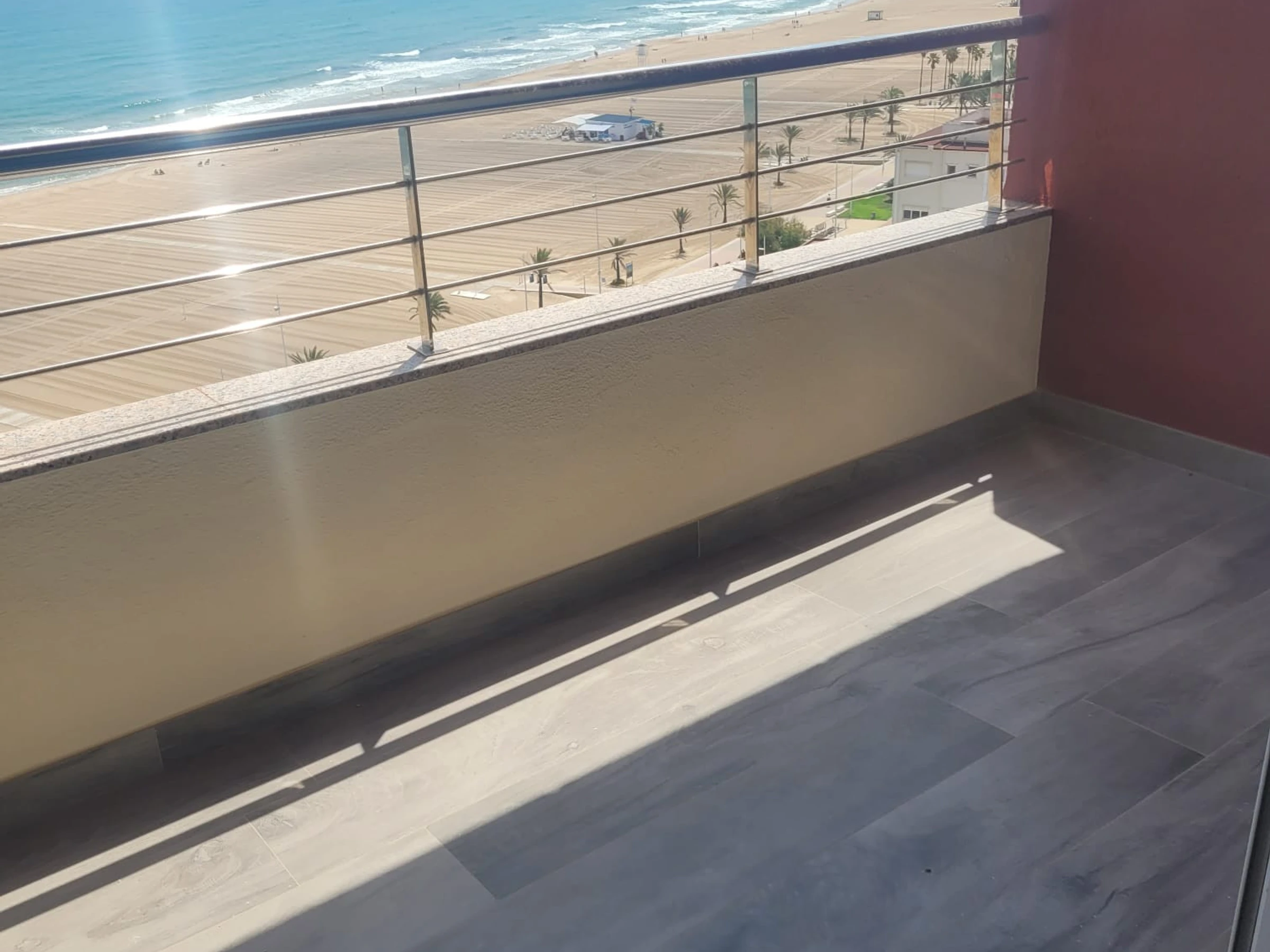 Maravilloso apartamento en primera línea de la Playa de Gandia. Treceava planta con fabulosas vistas desde la terraza de orientación Este frontal al mar. Ofrece un dormitorio doble (dos camas 90x190) con armario empotrado, un baño reformado con plato de ducha, práctica y moderna cocina con lavavajillas. Salón-comedor con salida a una acogedora terraza, desde la cual vemos el paseo marítimo Neptuno, la playa y en un día claro la siluetea de la isla de Ibiza. Equipado con WIFI internet, lavadora, TV y microondas. Ventiladores de techo en salón y dormitorio. Capacidad 3/4 personas. Cambio de sábanas quincenal.