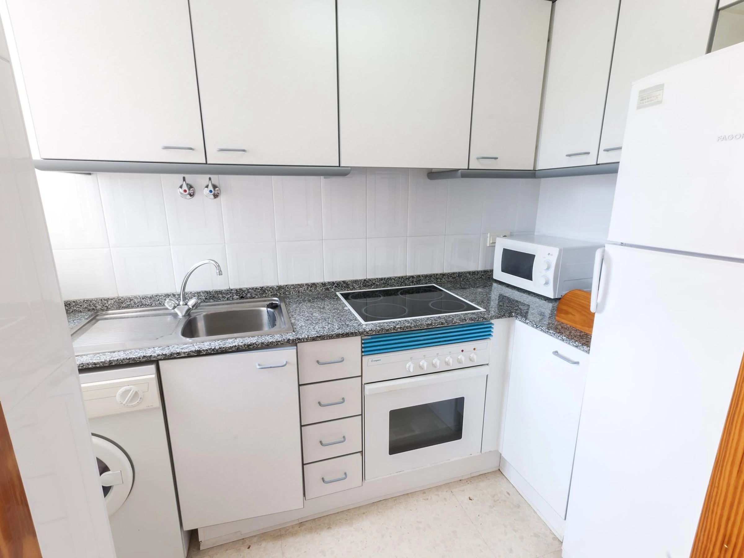 El apartamento de 46 m2 se encuentra en la octava planta de un edificio con ascensor. Desde la terraza accedemos al luminoso y cómodo salón en cuyo sofá descansaremos un rato mientras vemos la tele. Junto al mismo la zona de comedor con capacidad para 4 personas. La cocina es independiente, incluye vitrocerámica, y los utensilios básicos para cocinar durante las vacaciones. El único dormitorio dispone de 2 camas individuales y armario, mientras que para nuestro tercer invitado, prepararemos el sofá-cama de la sala. La casa se completa con un baño con bañera. Si viajas con un bebé, una cuna y una trona están a tu disposición. En el apartamento también encontrarás, lavadora, plancha y tabla de planchar.