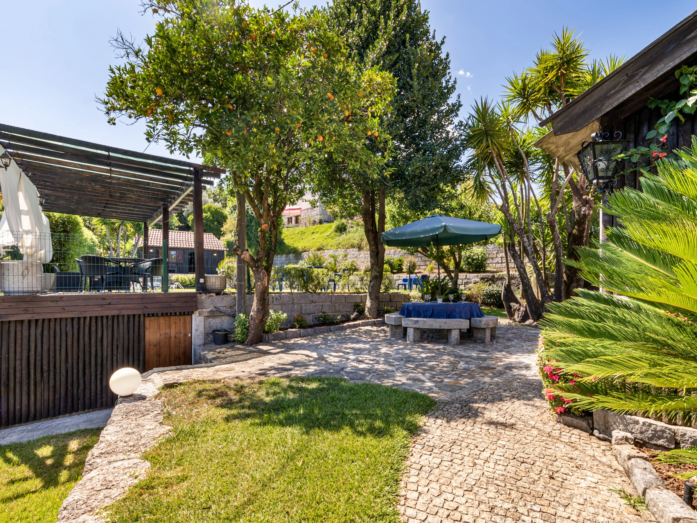 El jardín que rodea la propiedad es compartido con otros huéspedes y ofrece un ambiente sereno y tranquilo, ideal para momentos de relajación y conexión con la naturaleza. Y para los días soleados, nuestra piscina con tumbonas es perfecta para refrescarse y disfrutar del clima local.