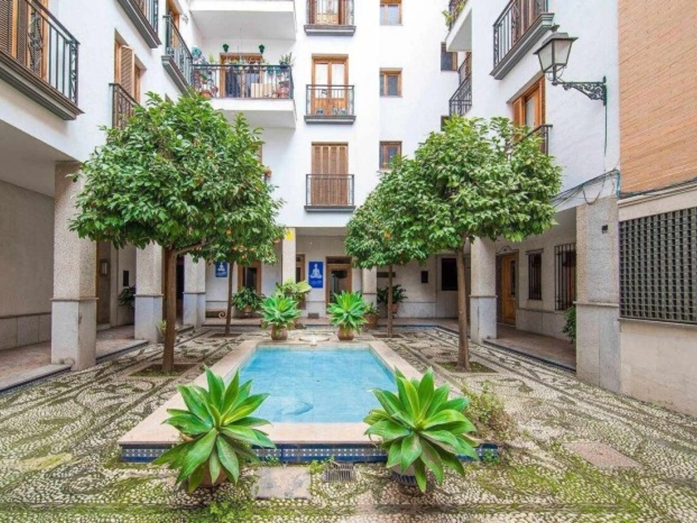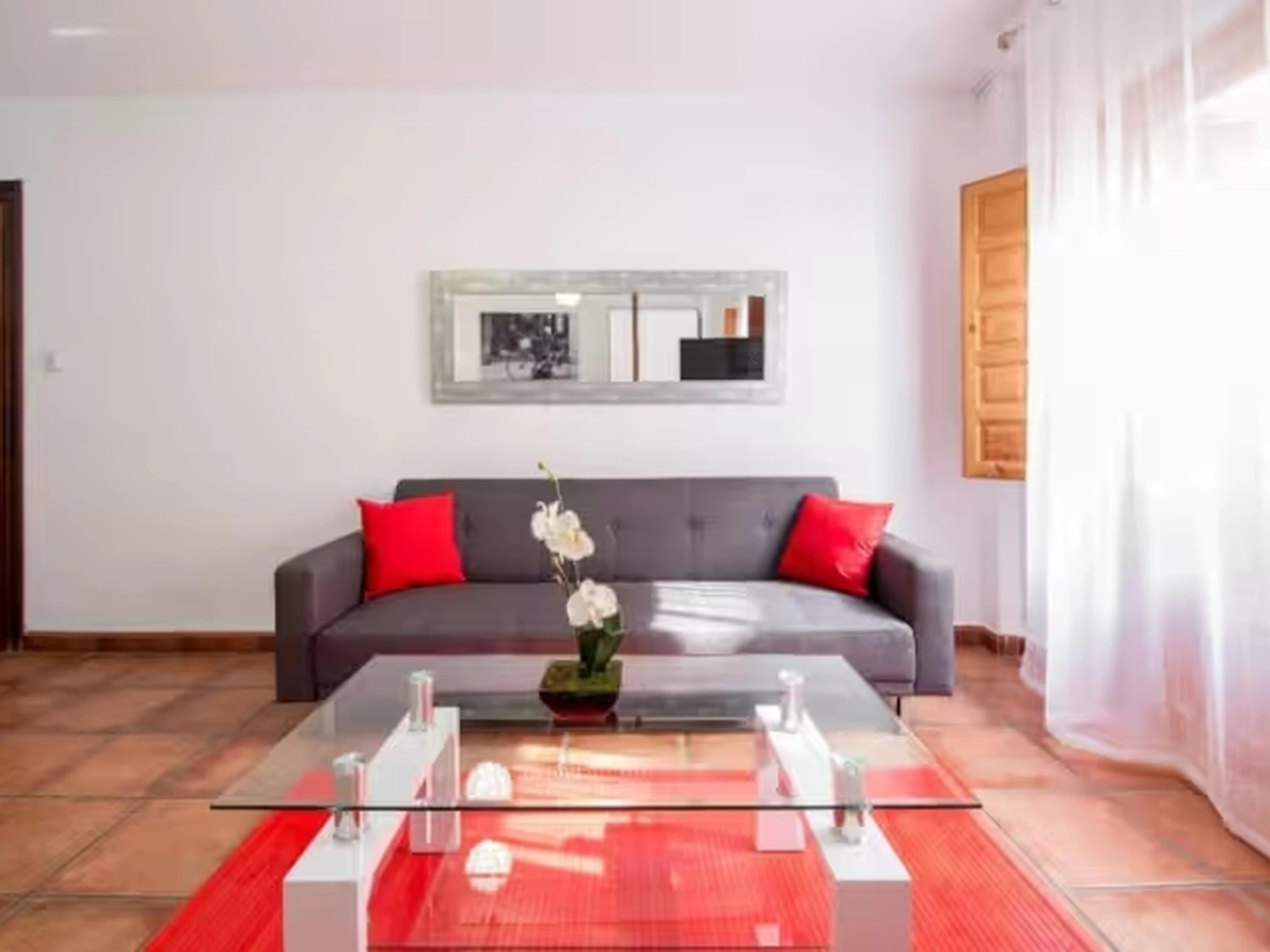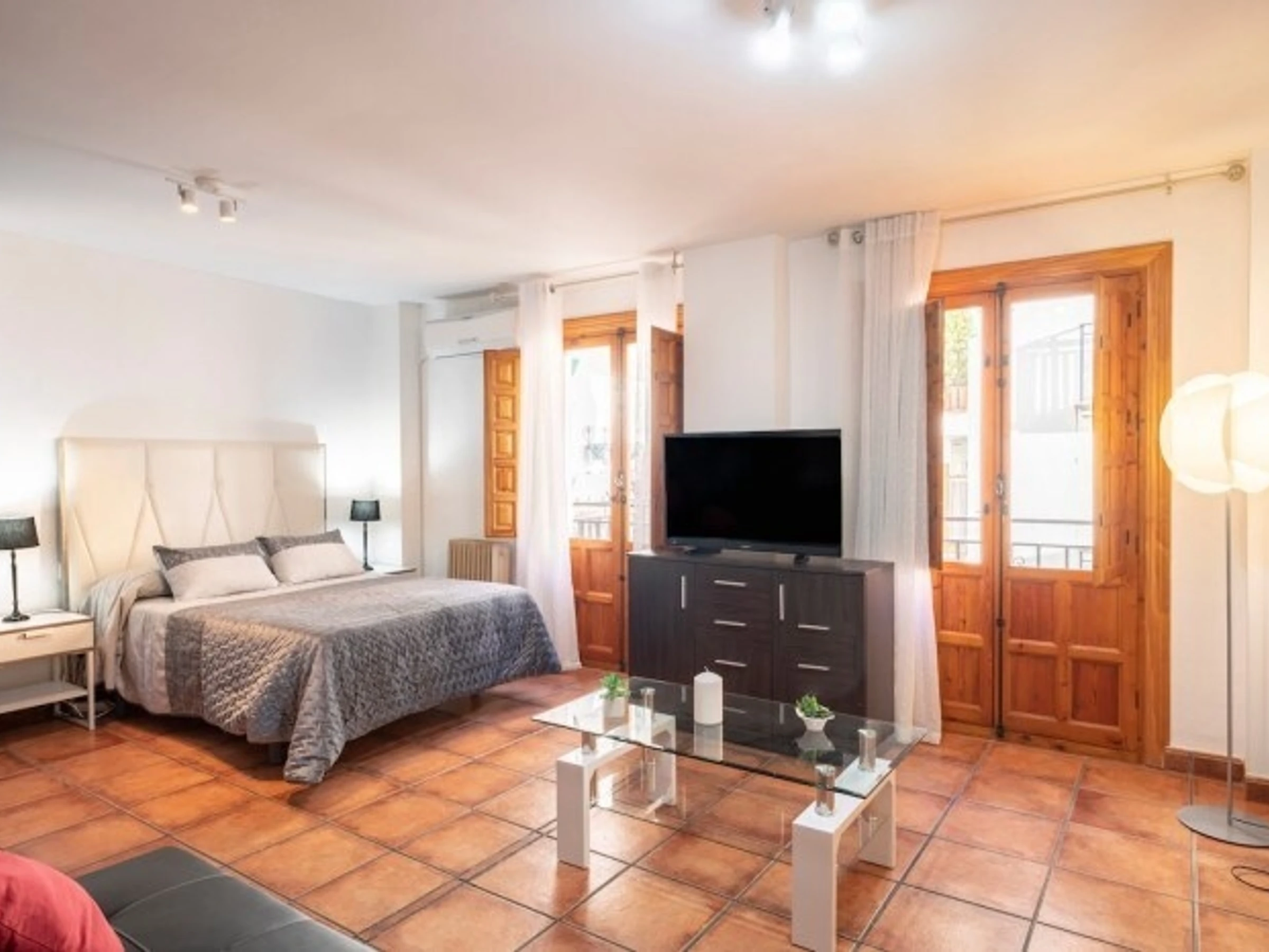 Ubicado en el corazón de Granada, a los pies de la Alhambra y en el histórico barrio del Realejo, donde se mezclan las raíces musulmanas, este precioso apartamento combina una decoración fresca y actual con el encanto de la Granada más tradicional. El apartamento es exterior, amplio y muy luminoso, puede alojar hasta 6 adultos y dispone de dos camas dobles muy cómodas con colchón viscoelástico, zona de estar, cocina, y 2 baño. Además, está equipado con aire acondicionado y calefacción, WIFI de alta velocidad, televisión, y lavadora. El edificio está dotado de ascensor y cuenta con un patio interior de estilo árabe. La zona es muy silenciosa y tranquila, a pesar de estar en pleno centro de la ciudad!