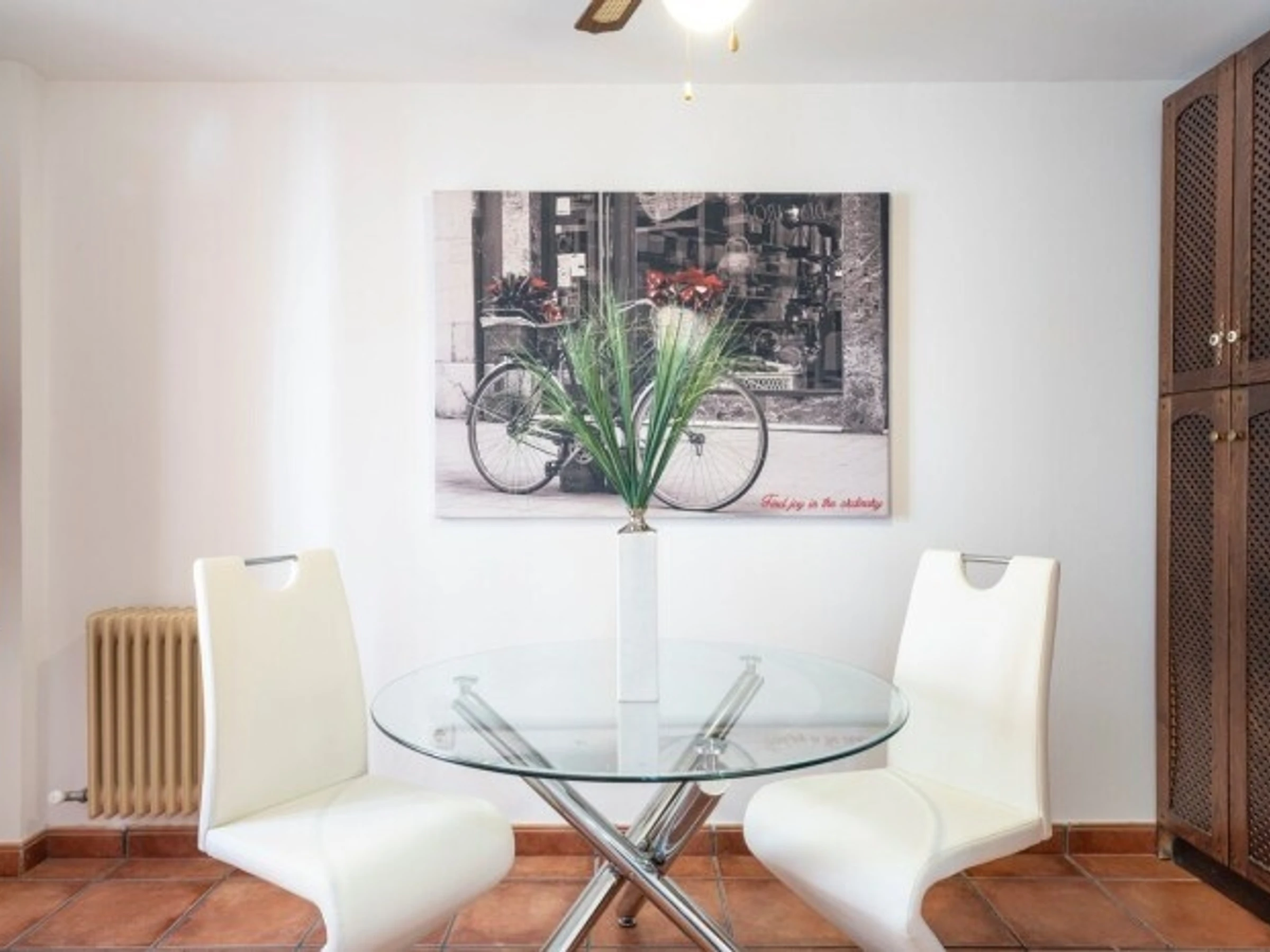 - Jabón básico (de manos)- Papelera baño- Papel higiénico- Almacenamiento de ropa- Comedor- Almohadas y mantas adicionales- Utensilios de cocina- Agua potable para el grifo- Sala de estar- Hervidor de agua caliente- Paño de cocina- Ventilador de techo- Limpieza durante la estancia- Portero- Camino llano hacia la puerta principal- Silla de ruedas accesible- Armario almacenaje ropa de cama con candado
