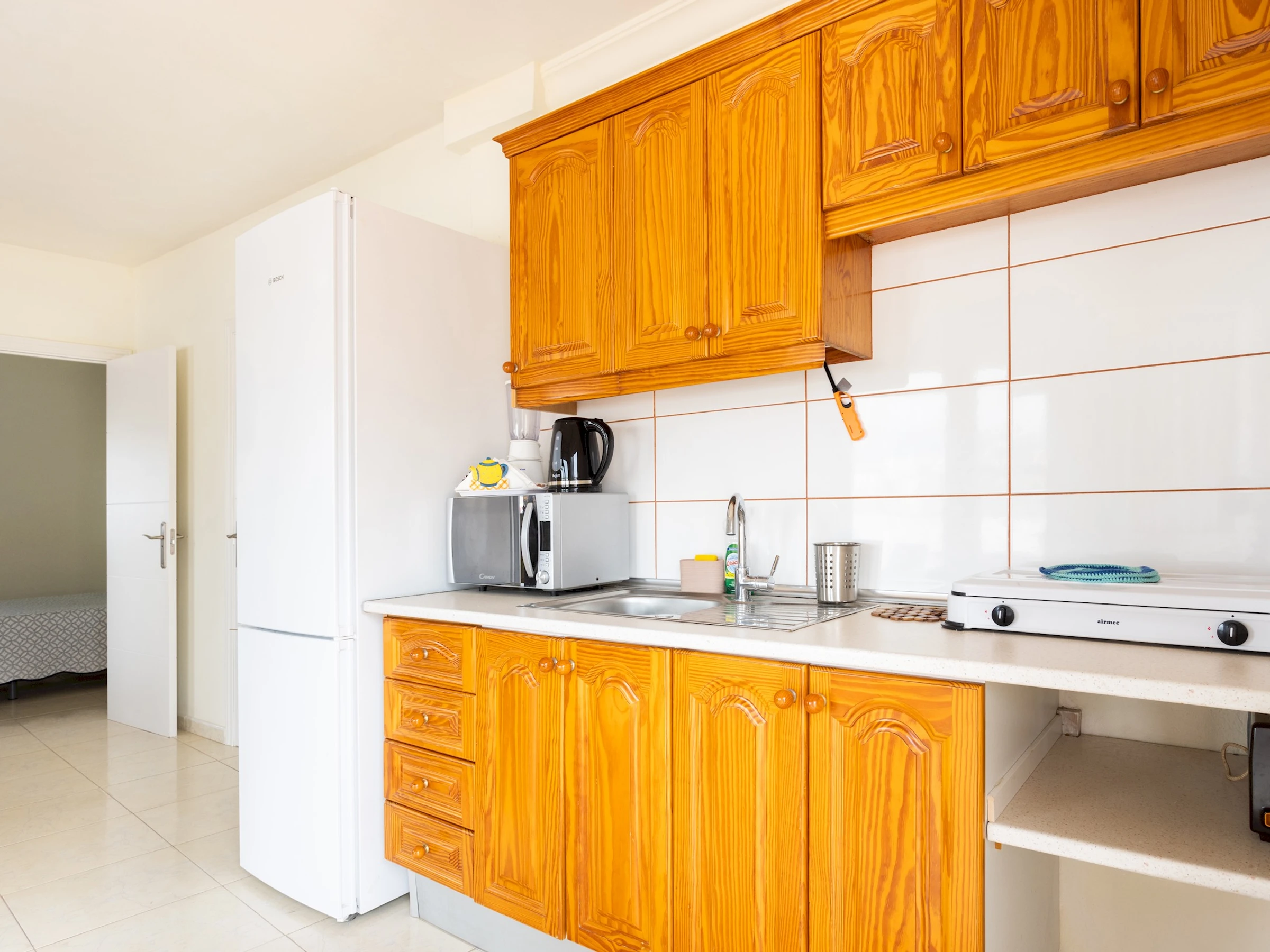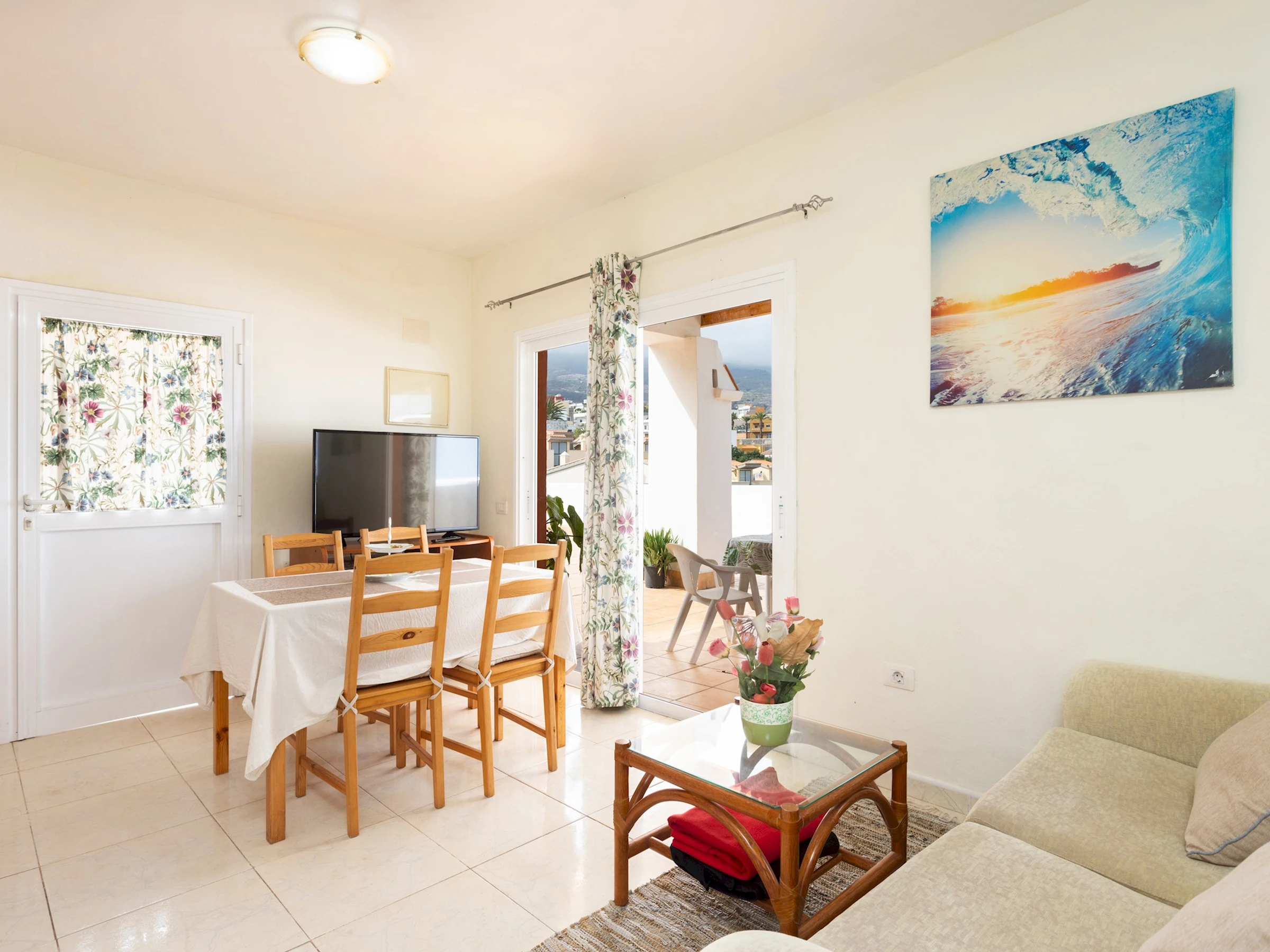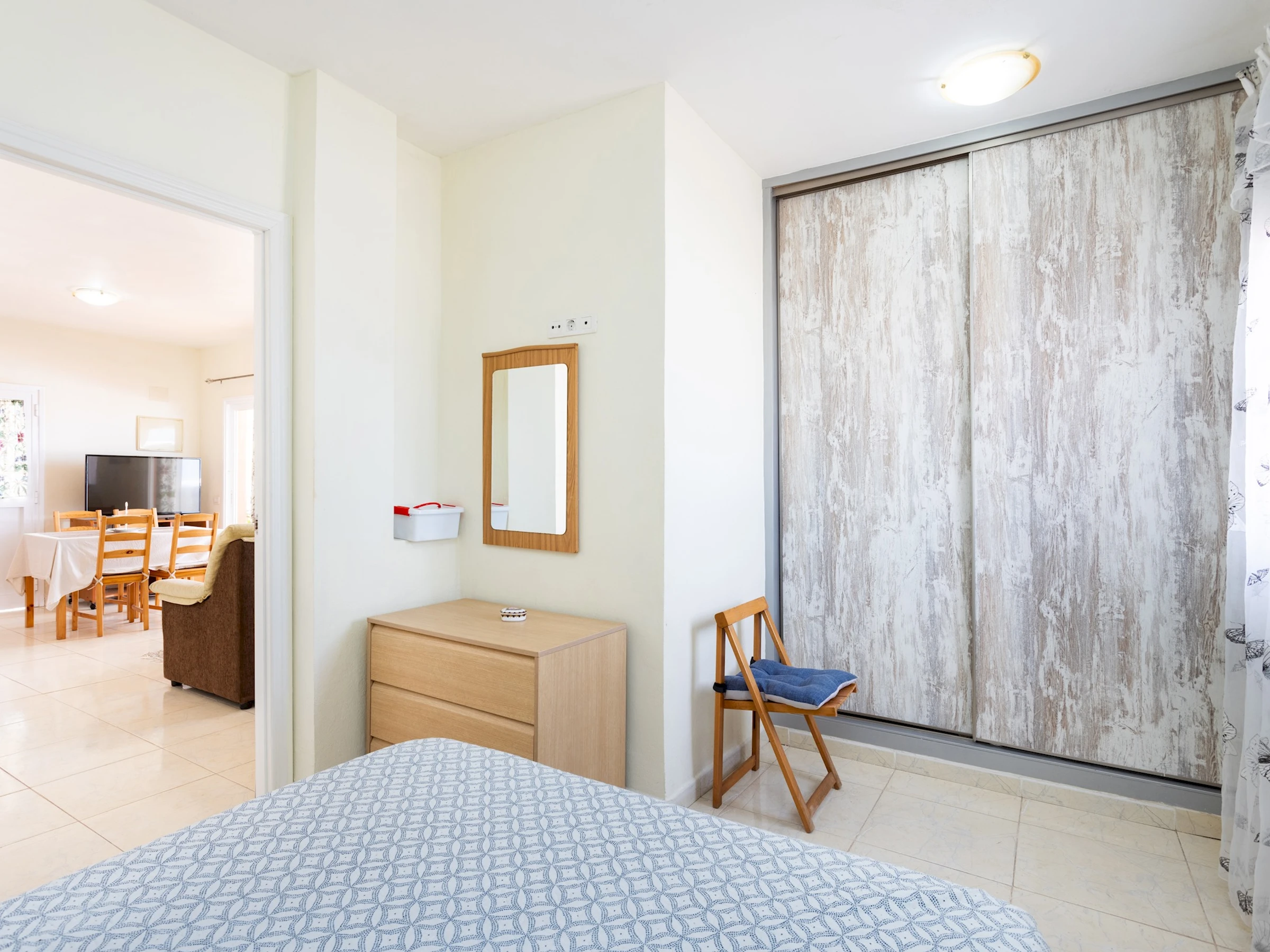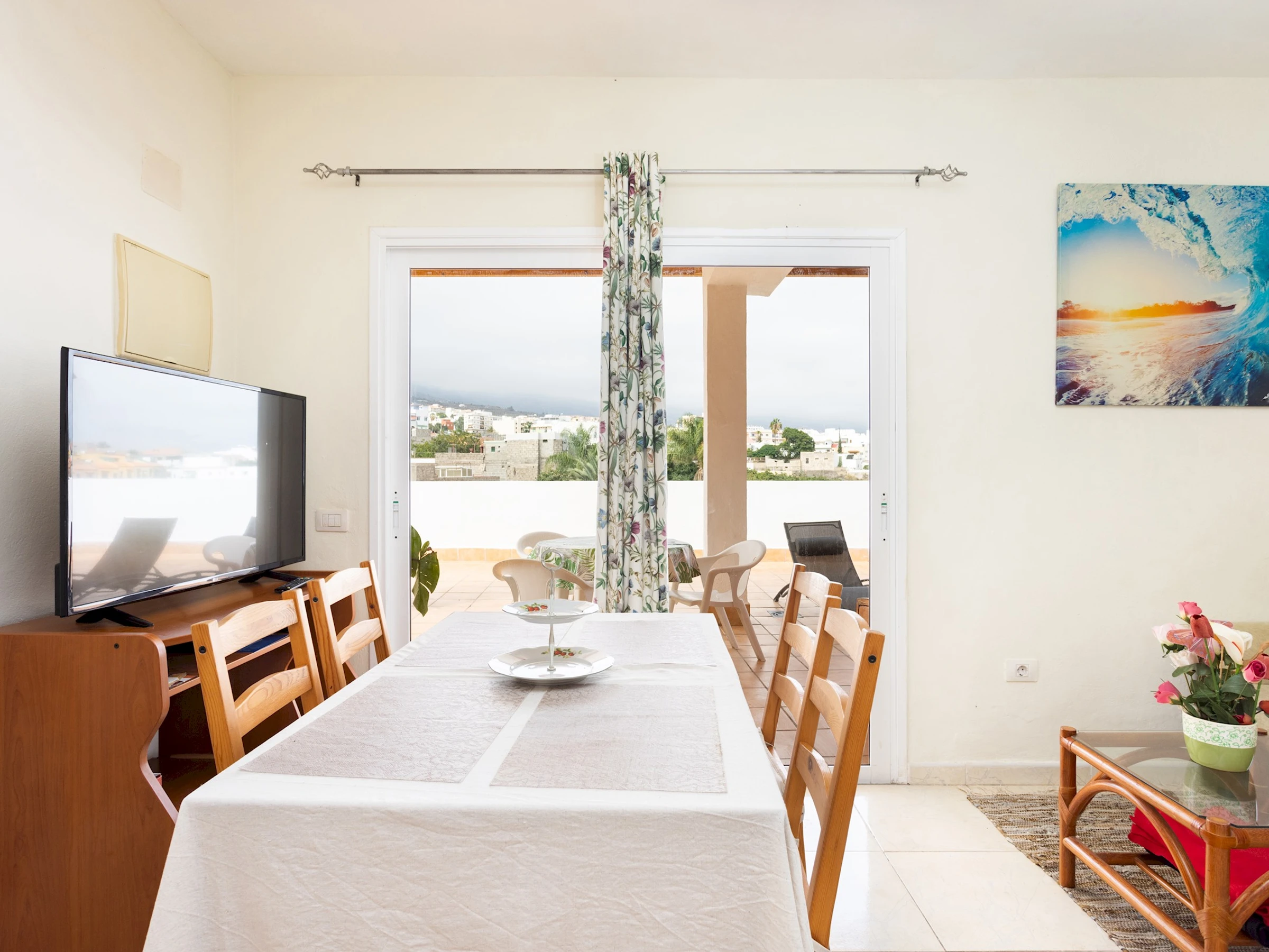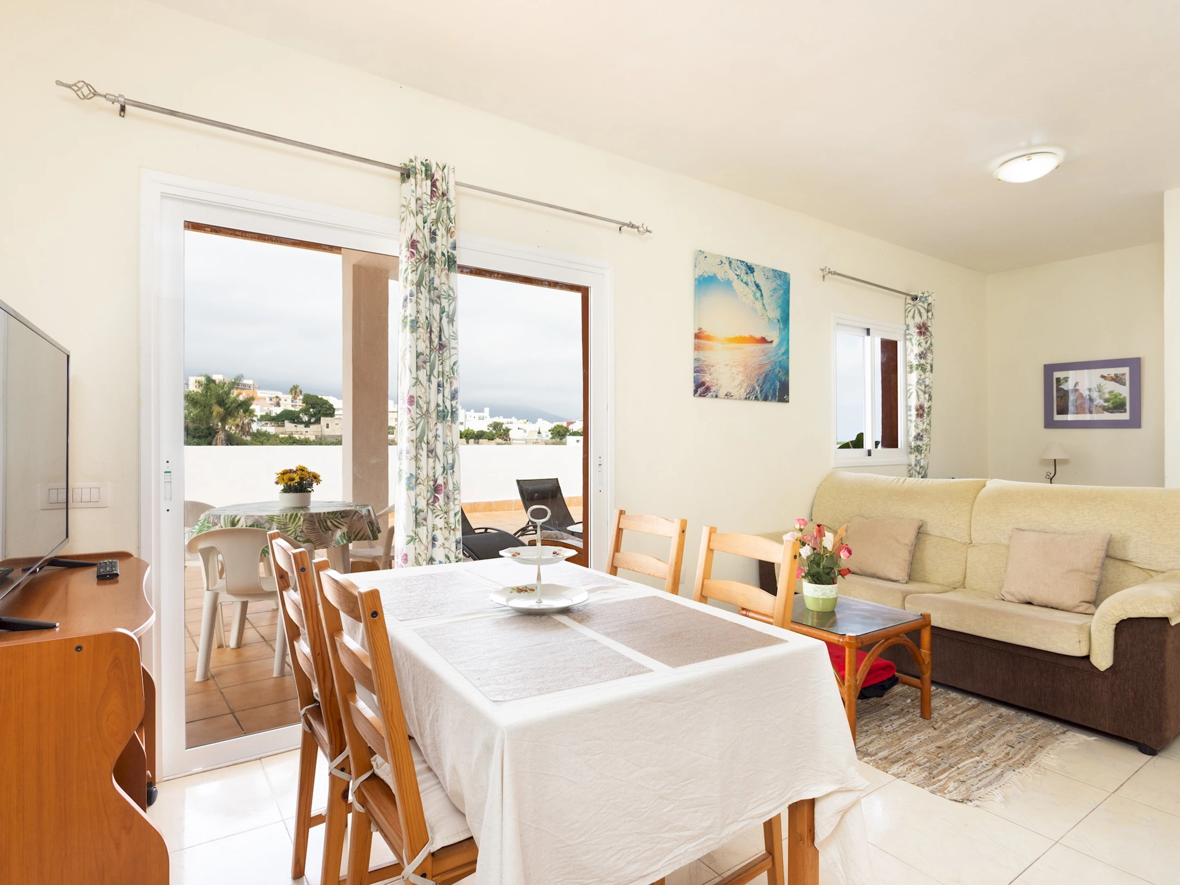 Este encantador apartamento ha sido diseñado para ofrecer una estancia cómoda y práctica. Al entrar, se accede a un salón-comedor de estilo abierto que se integra con la cocina, equipada con todo lo necesario para largas o cortas estancias. En la zona de estar, un confortable sofá y una gran Smart TV invitan a relajarse después de un día explorando la isla.