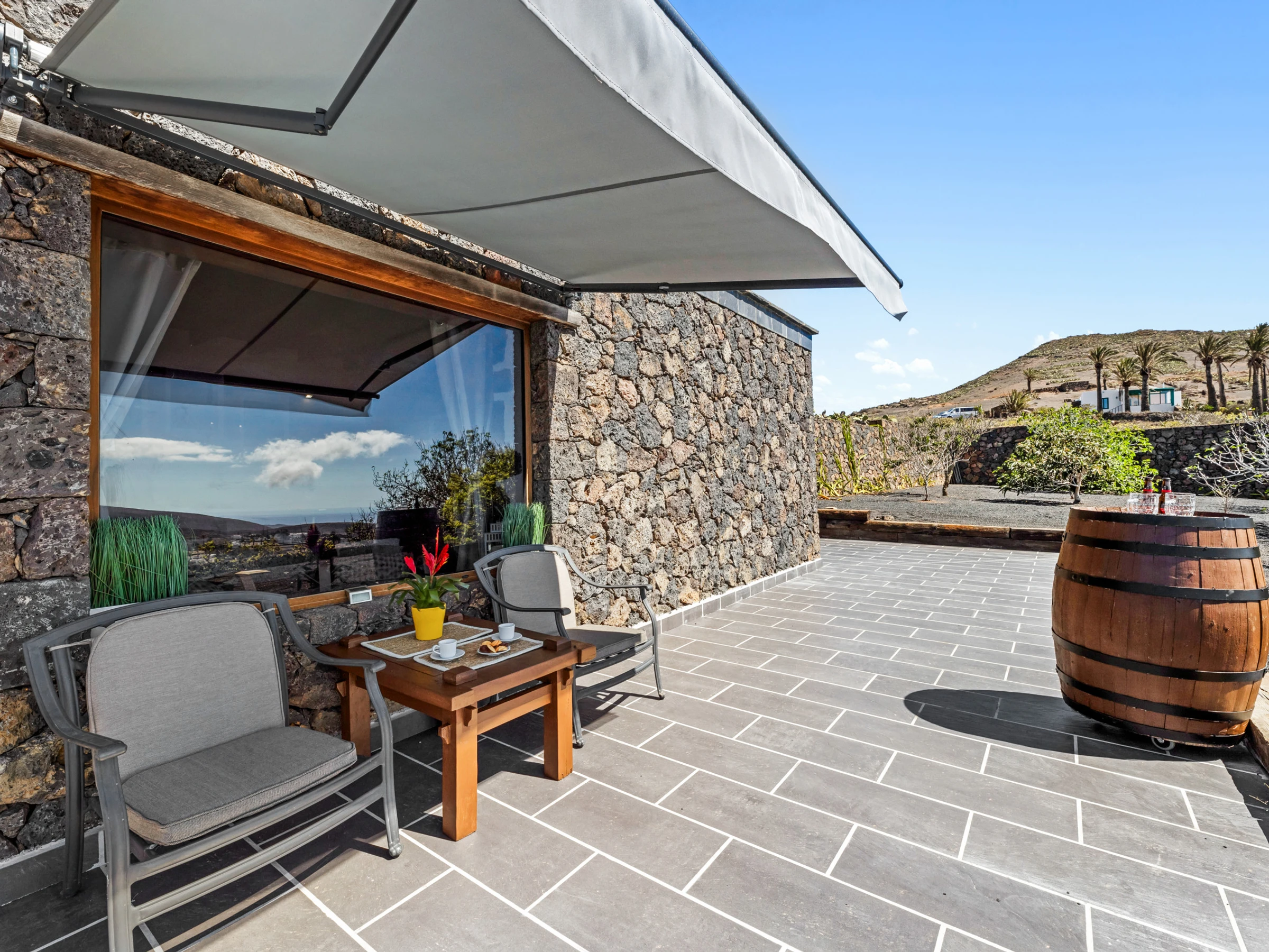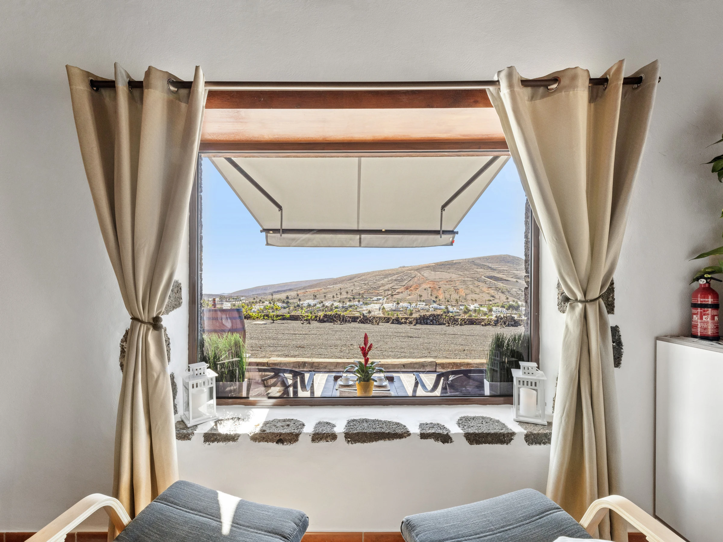 En Finca La Molina, las vistas son las protagonistas. Desde su privilegiada ubicación, podrás disfrutar de una panorámica que te dejará sin palabras: el azul intenso del mar se funde con el cielo en el horizonte, mientras que a tus pies se extiende el verde valle de Haría, un espectáculo de color y naturaleza que te llenará de paz y serenidad.