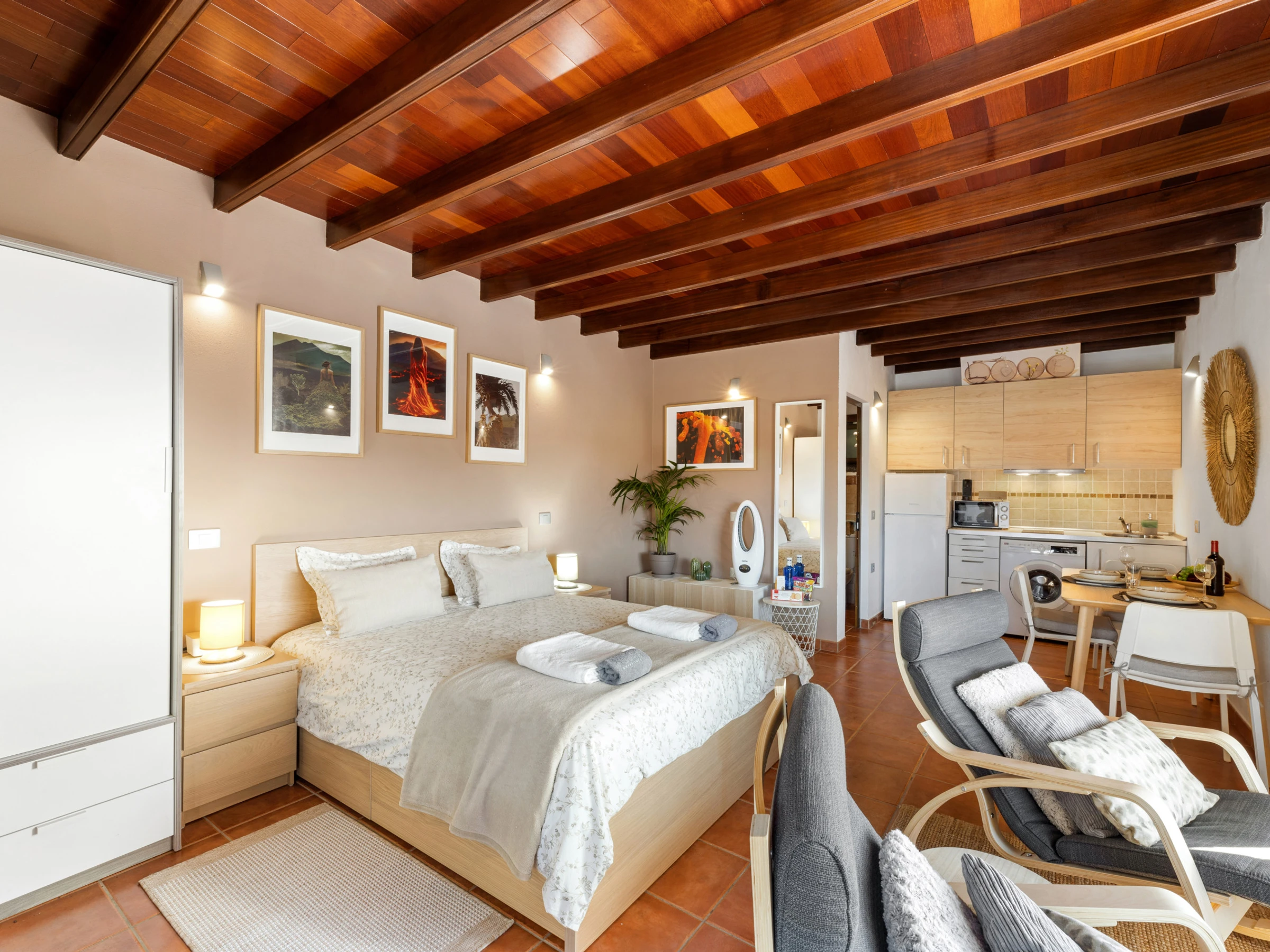Imagina despertar con el sol acariciando tu rostro y el silencio como compañero. Abre los ojos y desde tu terraza contempla la belleza del pueblo de Haría, con sus casas blancas enclavadas en un valle de palmeras, un auténtico oasis en medio del paisaje volcánico de Lanzarote.