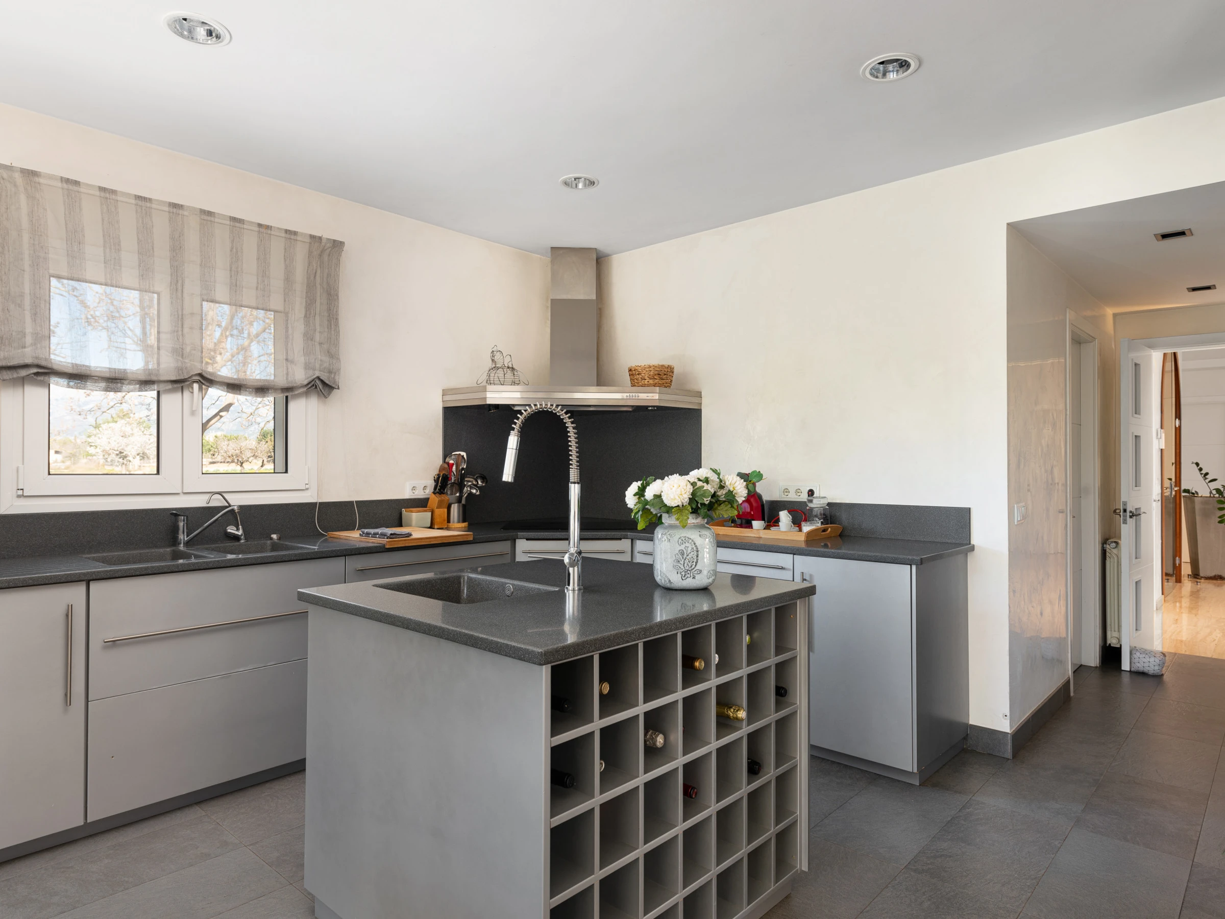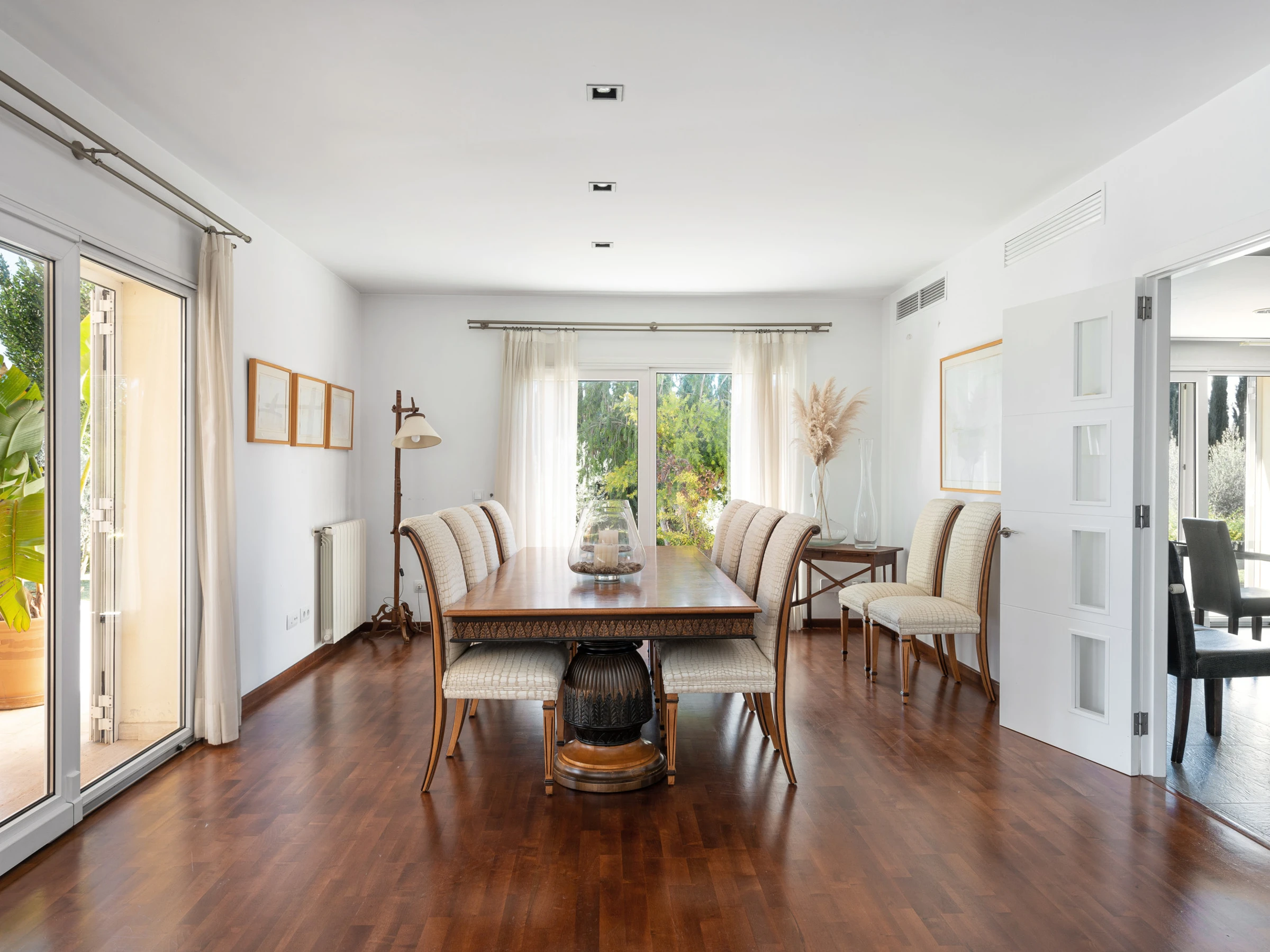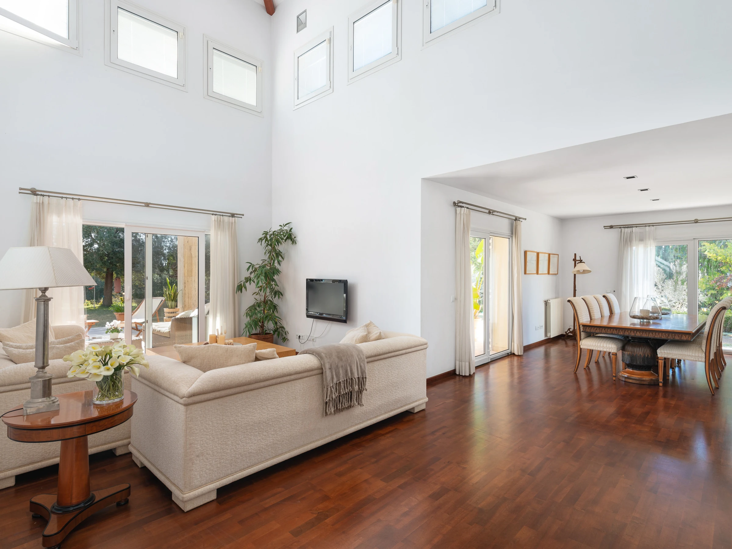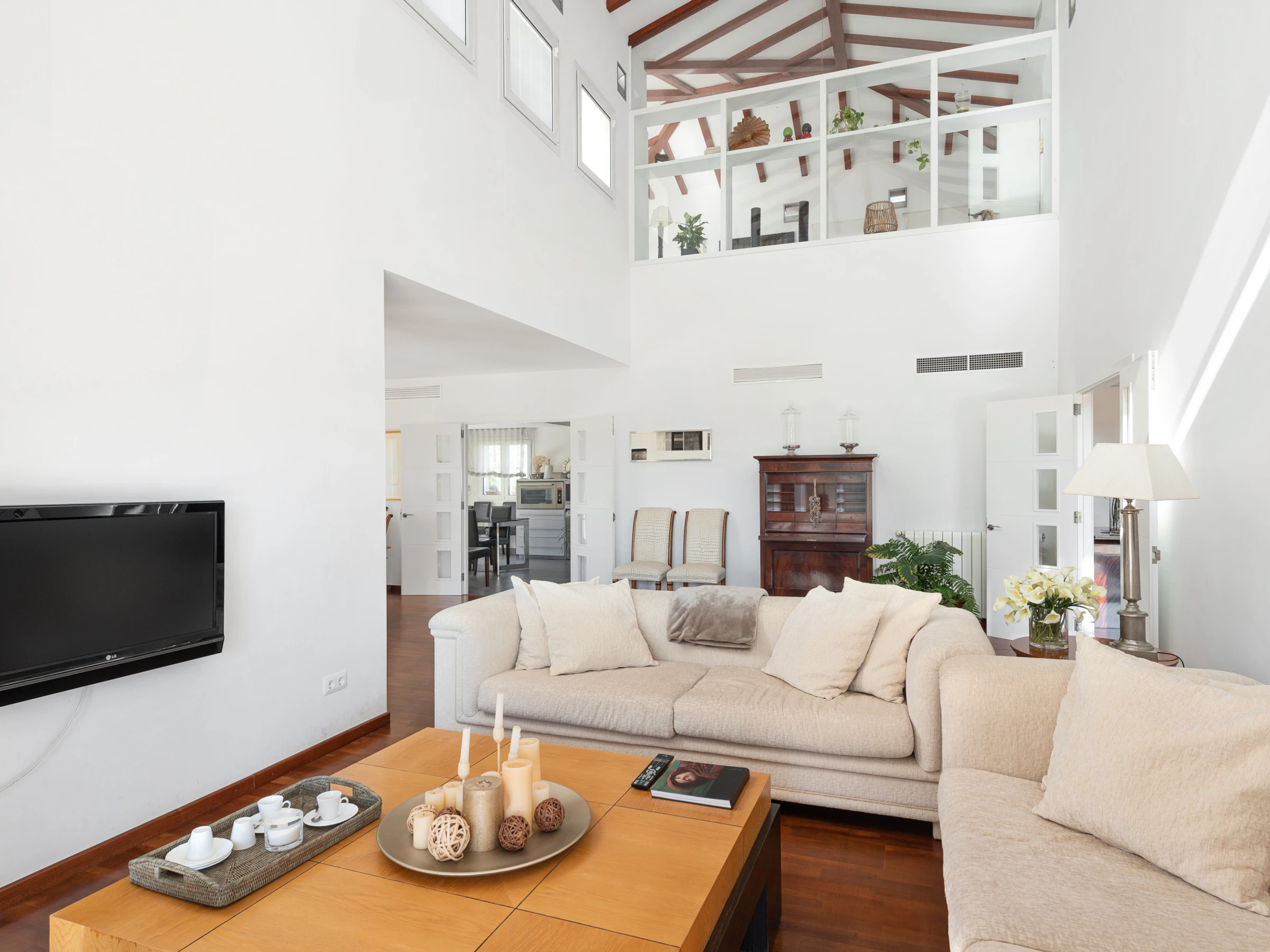 Con 300 m² distribuidos en 4 confortables habitaciones dobles y 4 baños (2 con bañera y 2 con ducha), esta villa te ofrece todo lo necesario para una estancia cómoda y relajante. La cocina, completamente equipada y con una moderna isla central, se abre a un acogedor salón y comedor pensados para compartir buenos momentos.