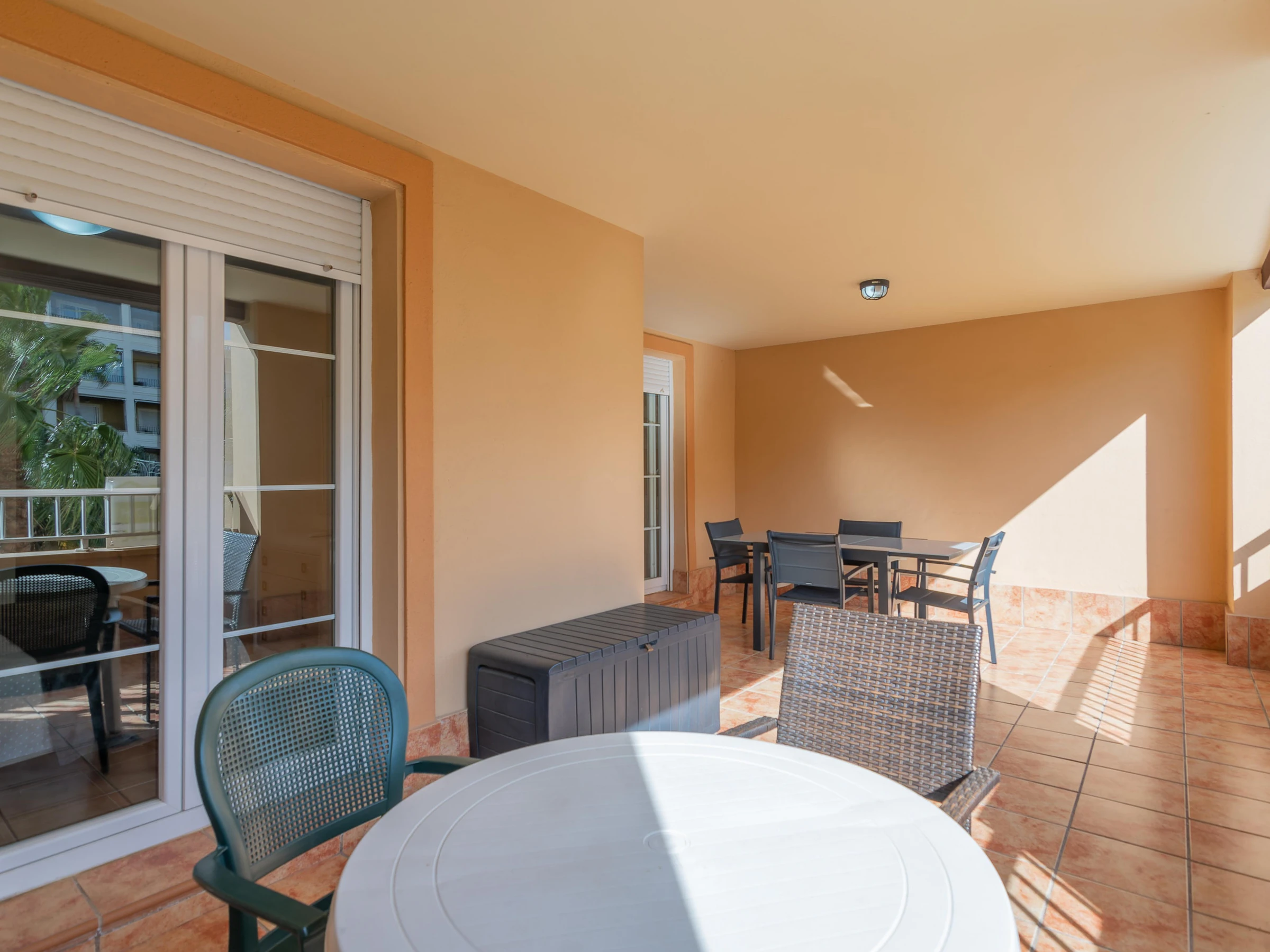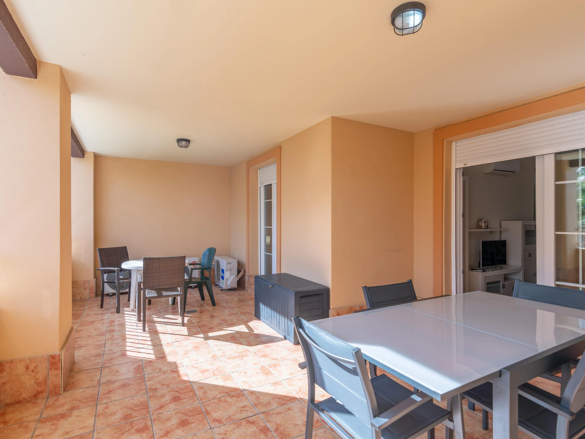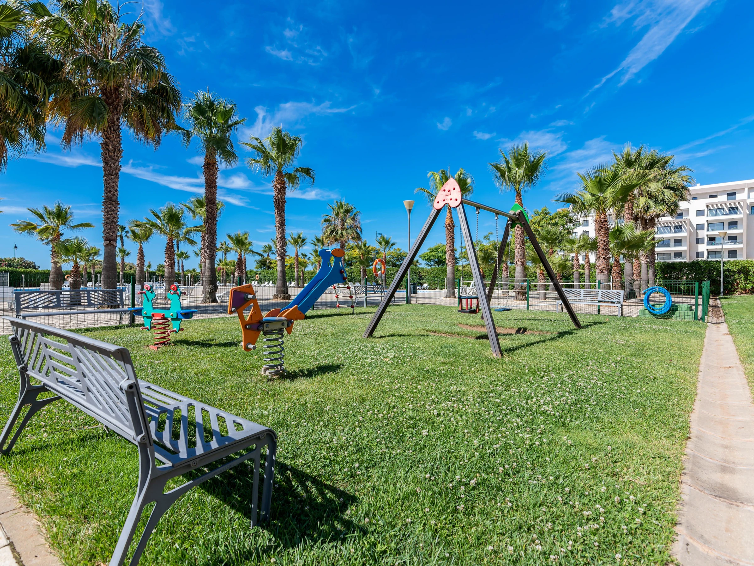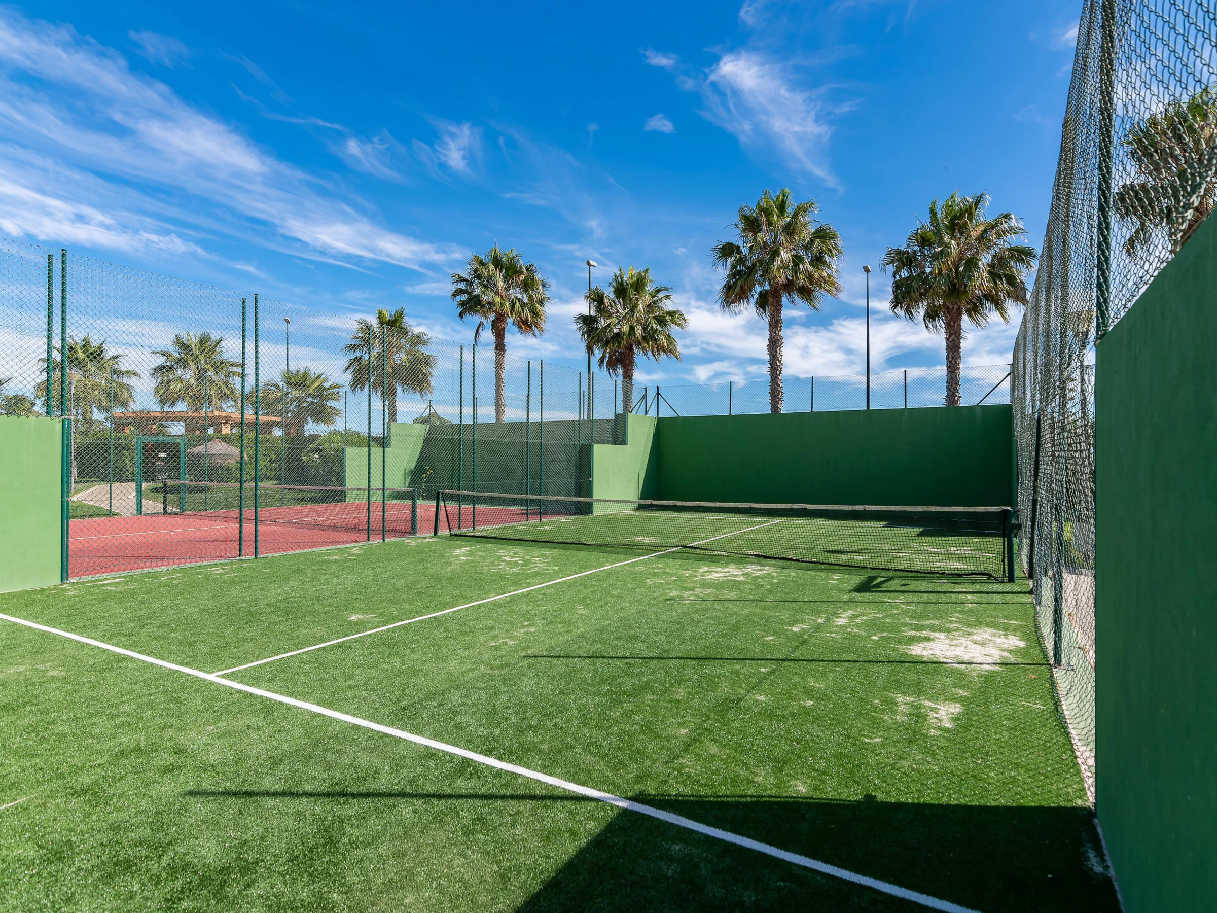 Dispone de ascensor, mobiliario jardín, parcela vallada, 26 m² de terraza, plancha, acceso internet (wifi), secador, zona infantil, pista de tenis, pista de padel, calefacción bomba de calor, aire acondicionado solo en salón, piscina comunitaria+infantil, parking aire libre en mismo edificio, 1 Televisor.