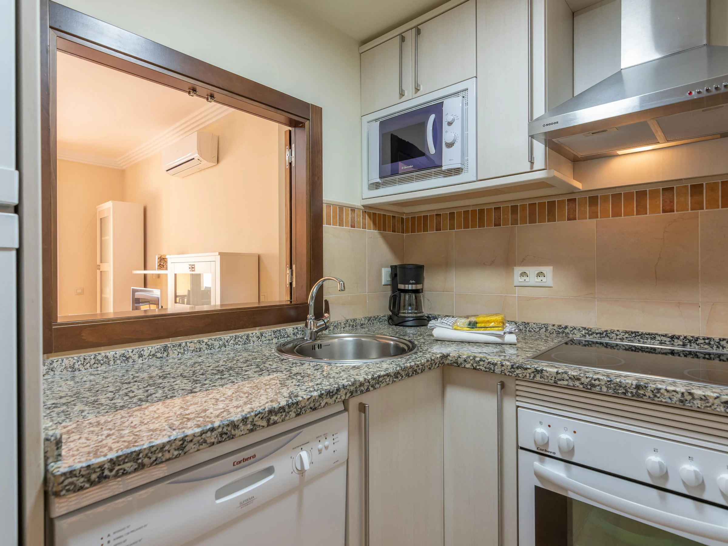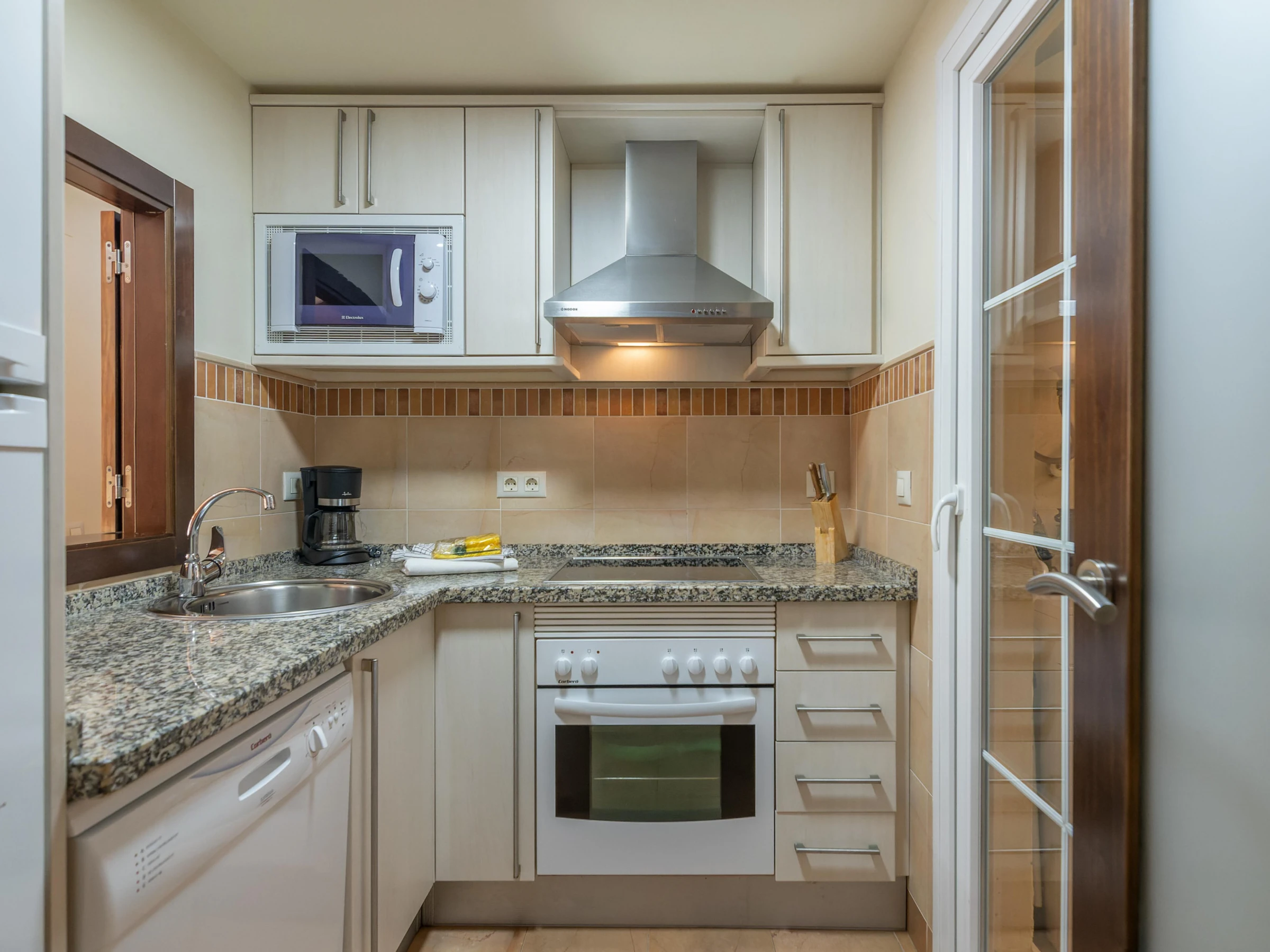 La cocina independiente, de vitrocerámica, está equipada con nevera, microondas, horno, congelador, lavadora, lavavajillas, vajilla/cubertería, utensilios/cocina, cafetera y tostadora.